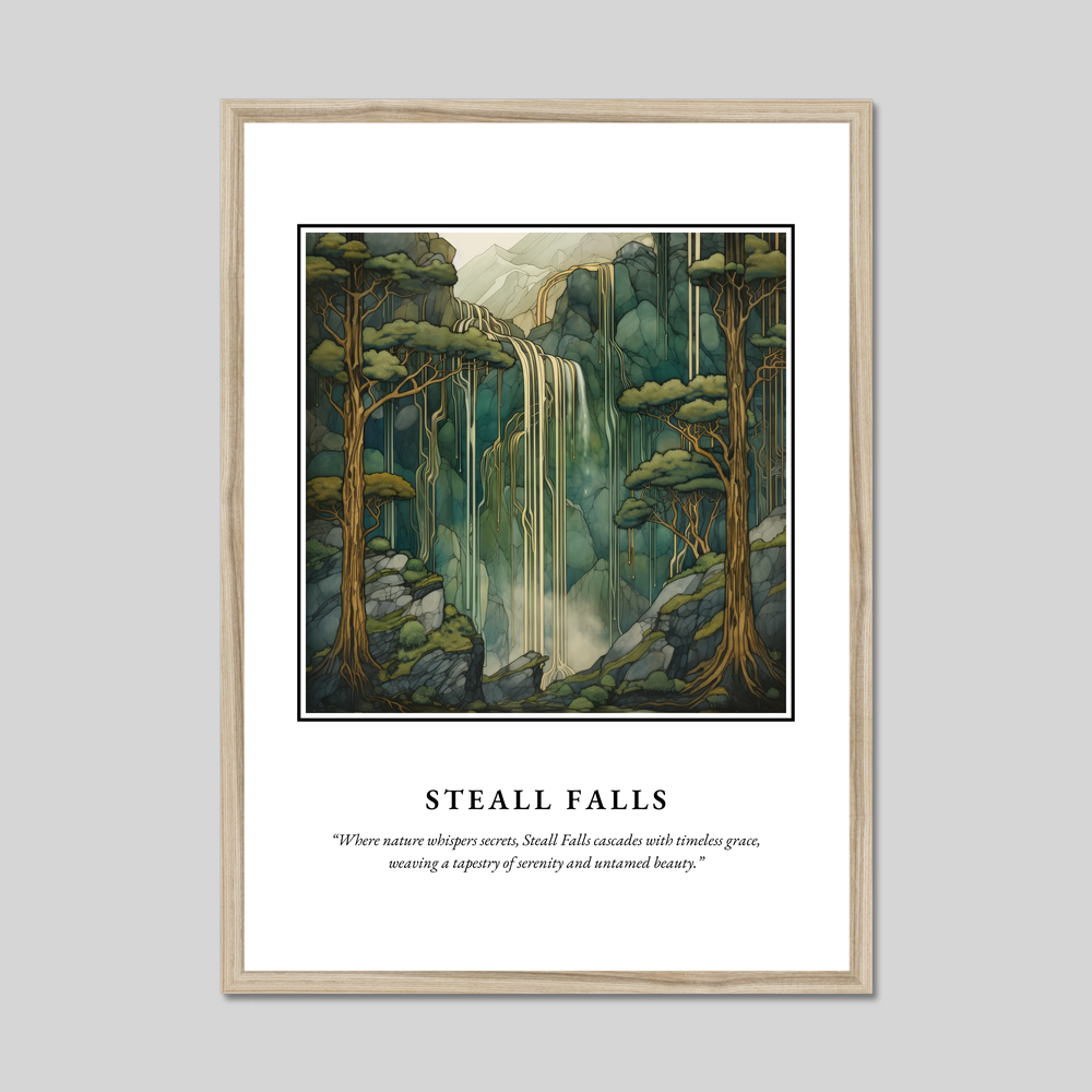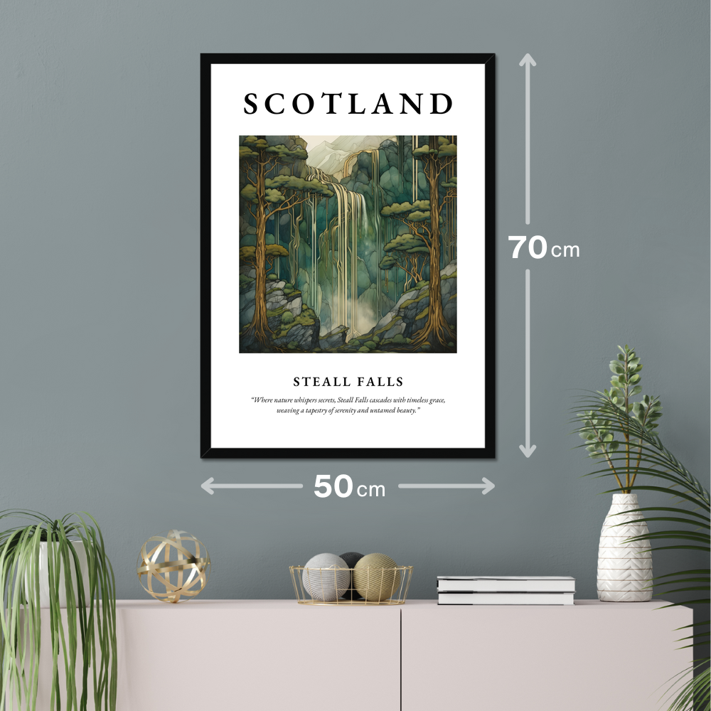 Elevate your space with the timeless charm of our Steall Falls art print poster from the exclusive "Scottish Waterfalls" collection. Measuring an impressive 50cm x 70cm, this large, captivating piece offers an affordable way to transform any wall into an ode to Scotland's natural splendour. Each print is available in black, white, or a natural wood-effect frame, ensuring it complements your existing décor effortlessly.