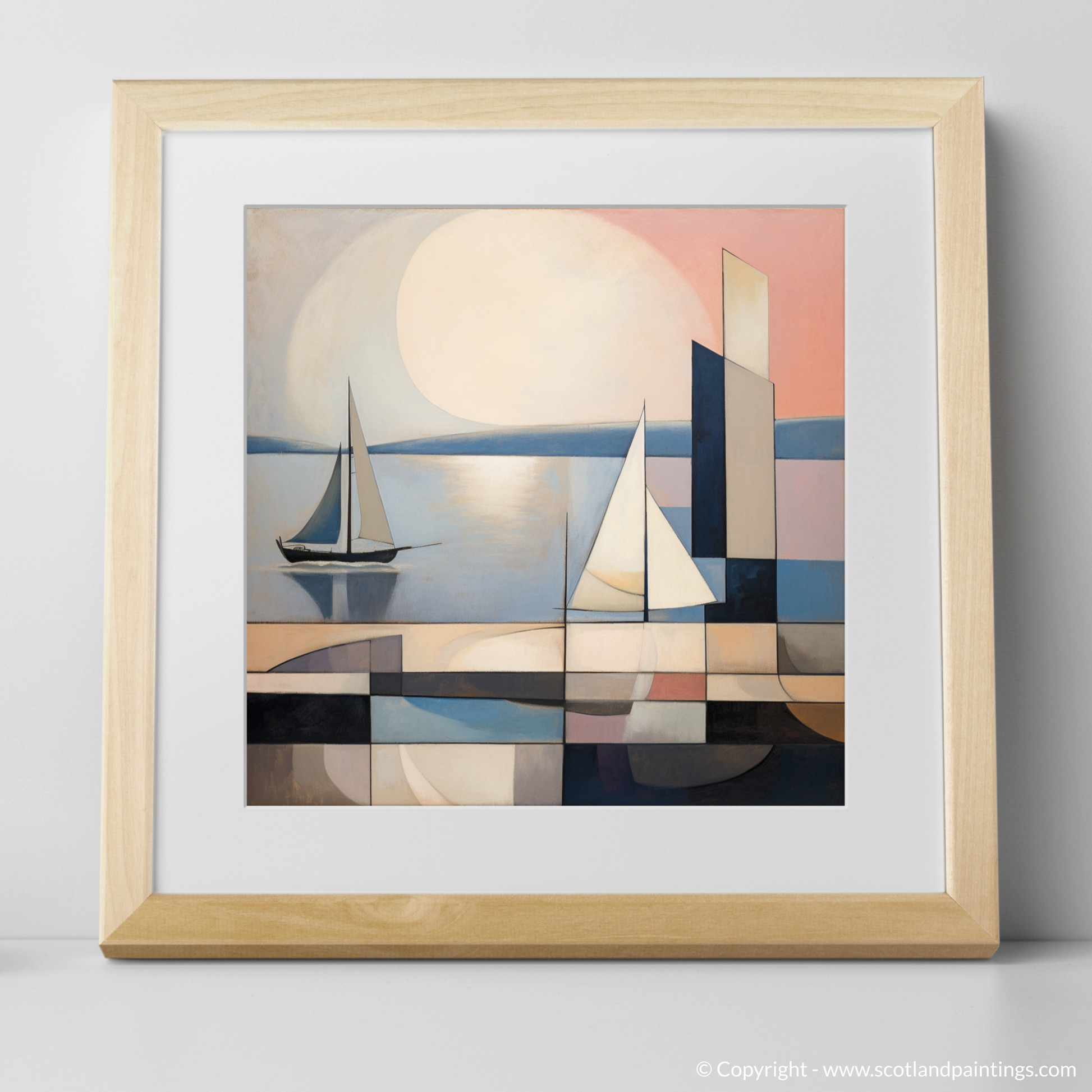 Capturing the essence of Nairn Beach as the day winds down, this evocative piece transforms the traditional seaside vista into a rich tapestry of abstract geometric shapes, reflecting the innovative spirit of Cubism. The print radiates with tranquil mauves, calming blues, and soft, warm peach hues, intersecting and overlapping to create a composition that invites contemplation. The sea, reduced to layered planes and fractured segments, forms a harmonious connection with the sky—divided into a mosaic of colour that subtly transitions from the gentle glow of the horizon to the soft darkness of the approaching night.