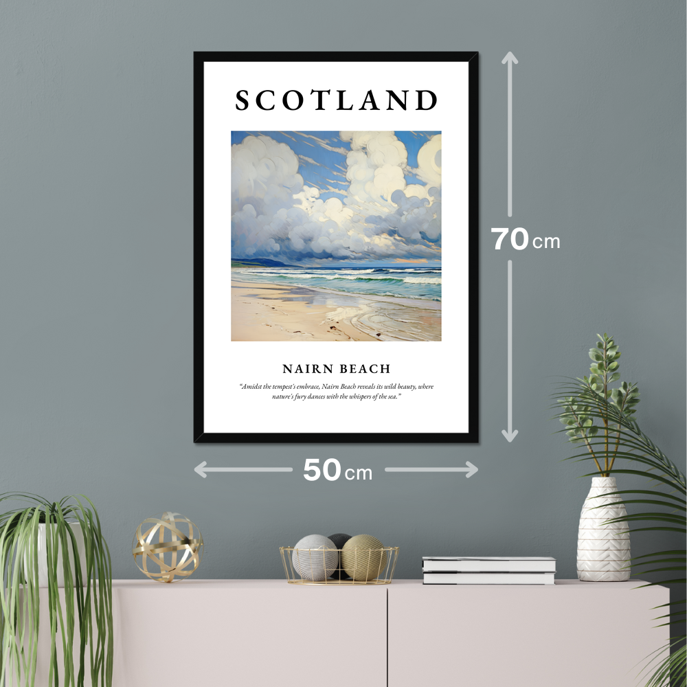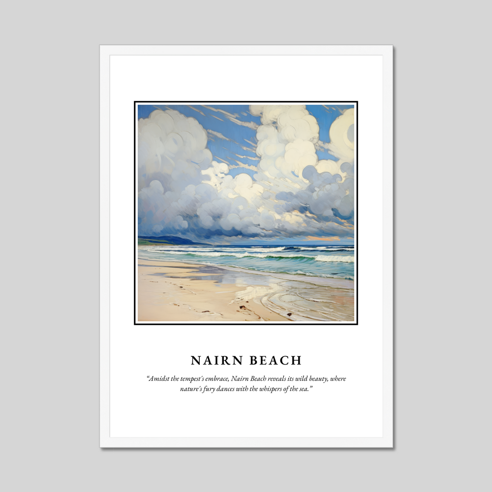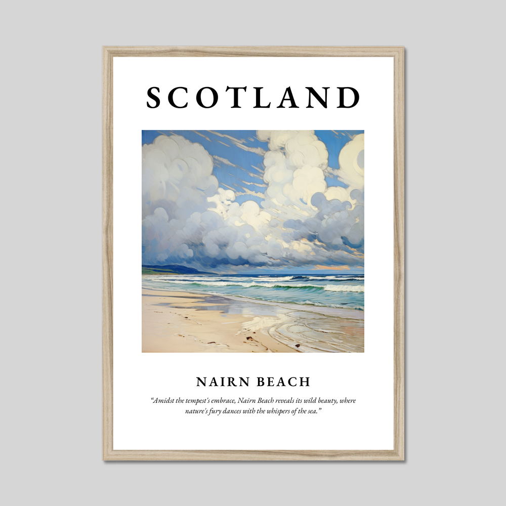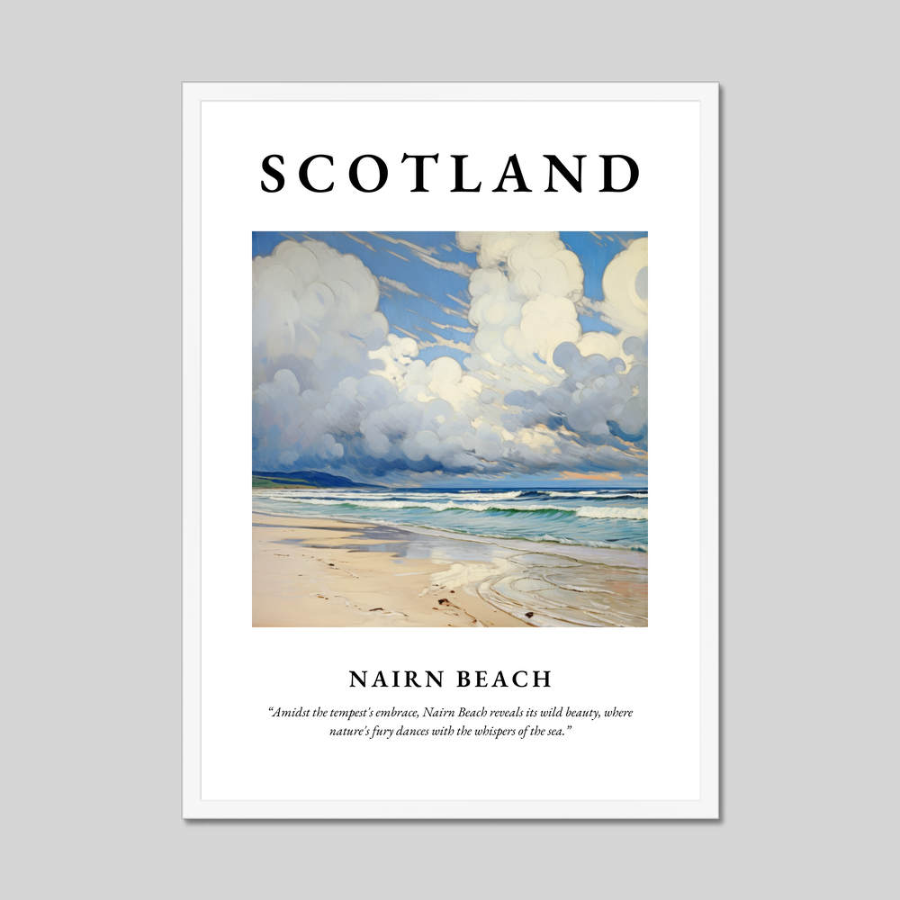 Whether you’ve strolled along its shores or dreamed of visiting, this poster is a gateway to the enchanting landscape of Nairn. Let it bring a touch of Scottish magic into your home, evoking memories or inspiring dreams of wild adventures along the coast.