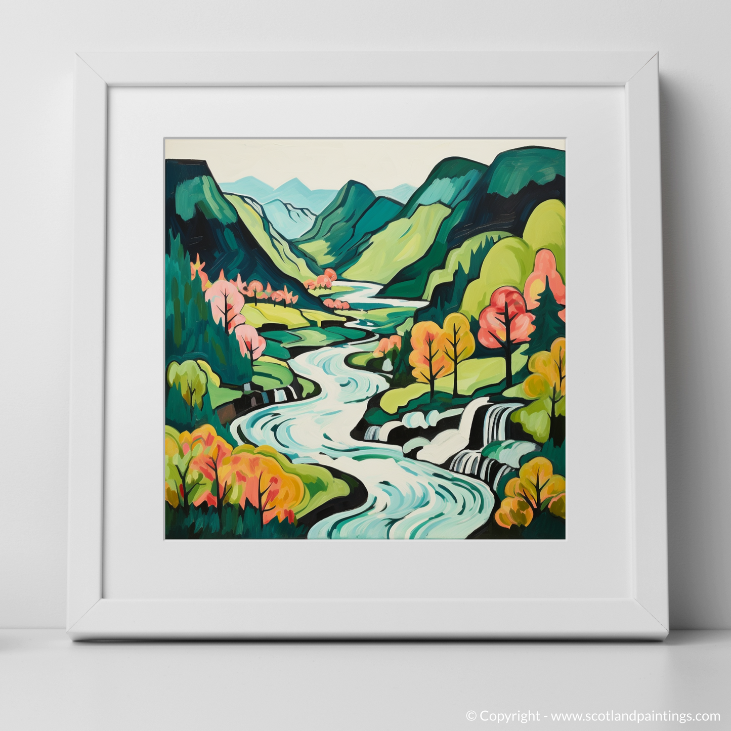 Each individual element—from the whimsical trees to the simplified, geometric shapes of the mountains—combines to create a print that resonates with the joy and purity characteristic of Naive Art. The piece is a celebration of nature's splendour and the human spirit's connection to the wilds of Scotland. Embracing a charm that can only be conveyed through such an unpretentious and heartwarming style, this print breathes life into the essence of Scottish Waterfalls and beckons to those who seek a slice of serenity wrapped in the colourful creativity of folk artistry.