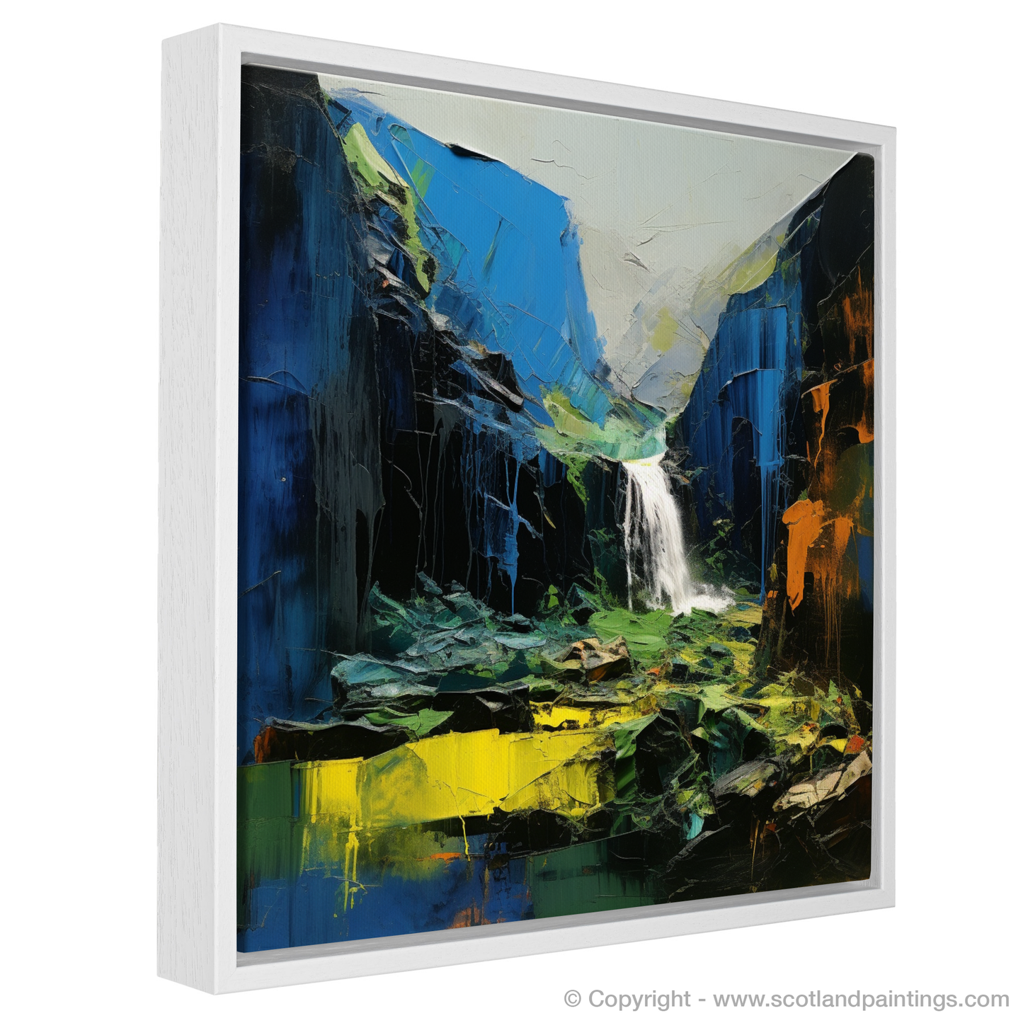 Immerse yourself in the raw and emotive splendour of Scotland's rugged landscape with this captivating print, a tribute to the majesty of Steall Falls in Glen Nevis. Infused with the spirit of Abstract Expressionism, the piece pulsates with dynamic brushstrokes and a rich tapestry of colour that suggests the untamed beauty of this natural phenomenon.