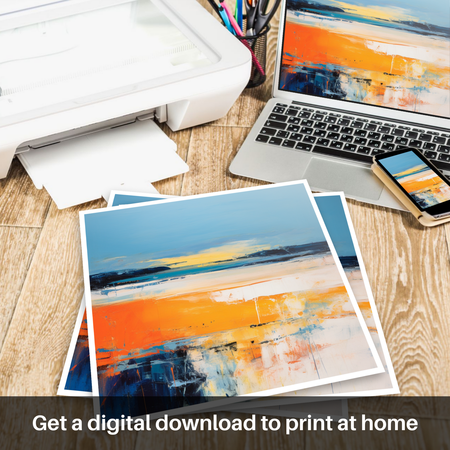 This piece, a part of our 'Scottish Beaches' collection, effortlessly encapsulates the spirit of Nairn Beach, serving as a stunning homage to one of Scotland's most beloved seascapes and a testament to the emotive power of abstract art.