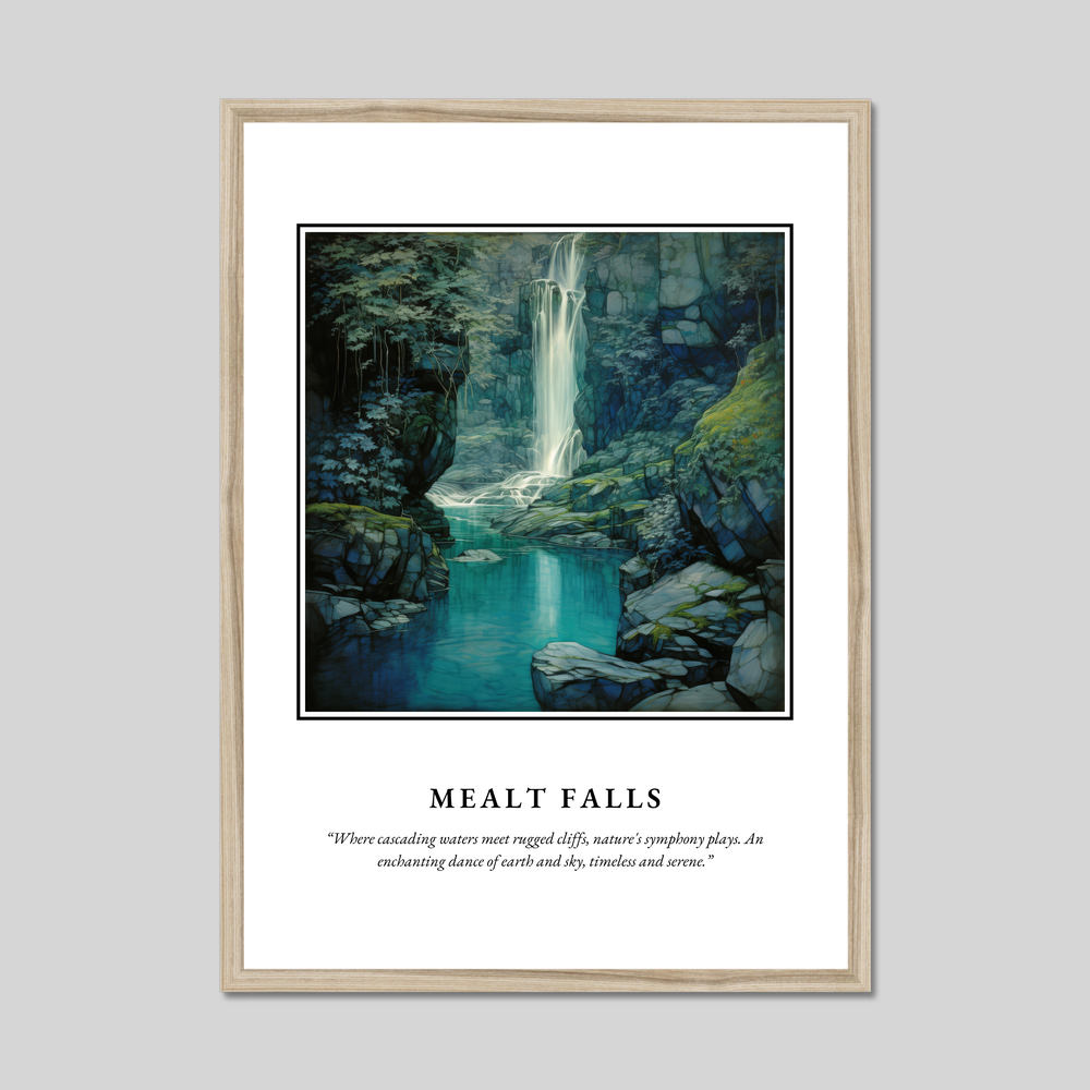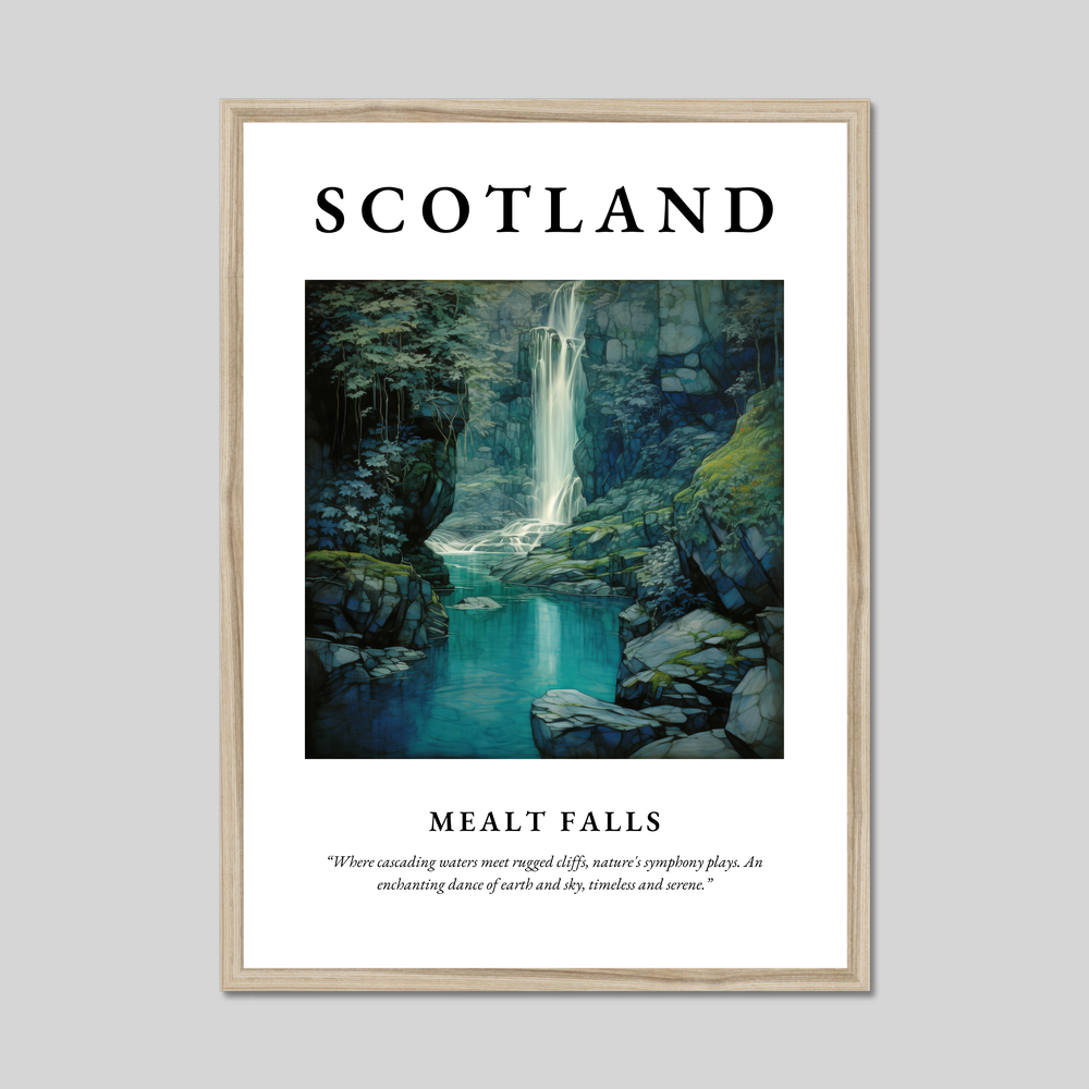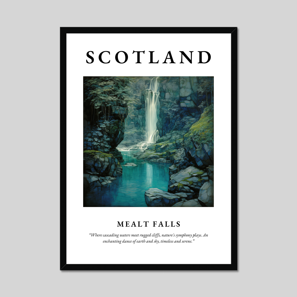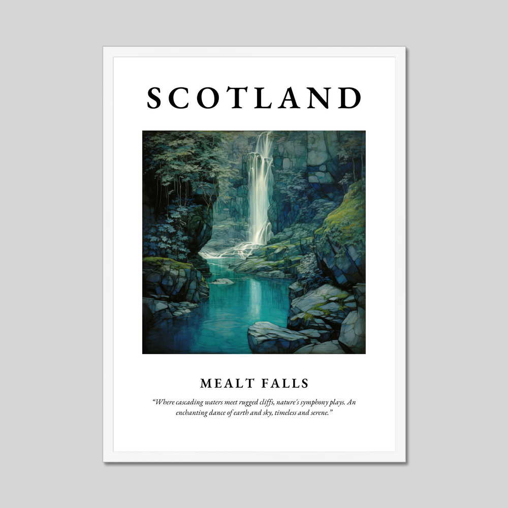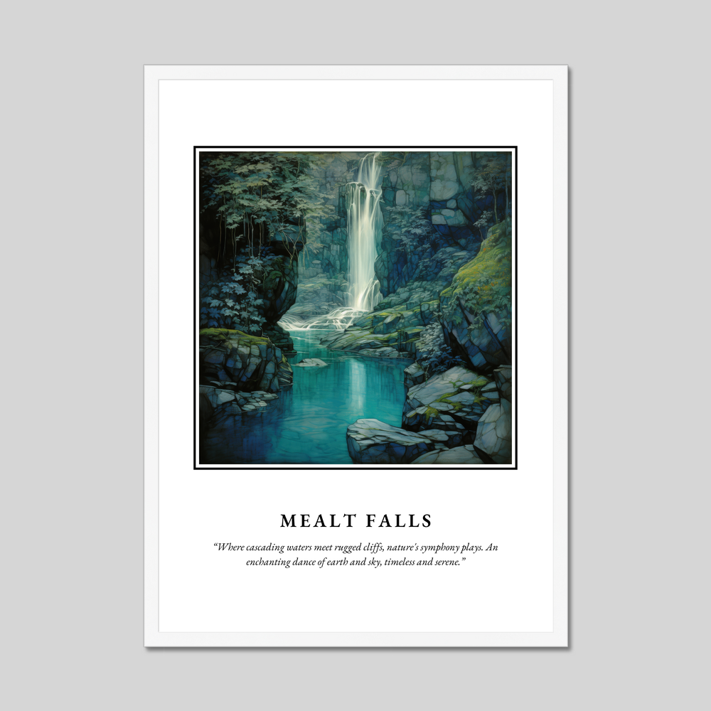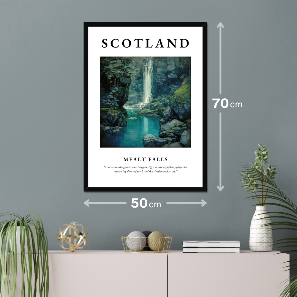 Capture the breathtaking beauty of Scotland's wild landscapes with our stunning framed poster print, a majestic addition to any art lover's collection. At an impressive 50cm x 70cm, this large format piece makes a statement, infusing your space with the enchanting allure of Mealt Falls without breaking the bank.