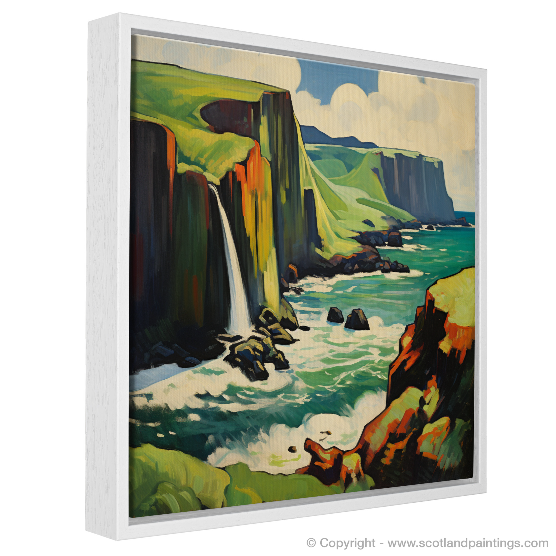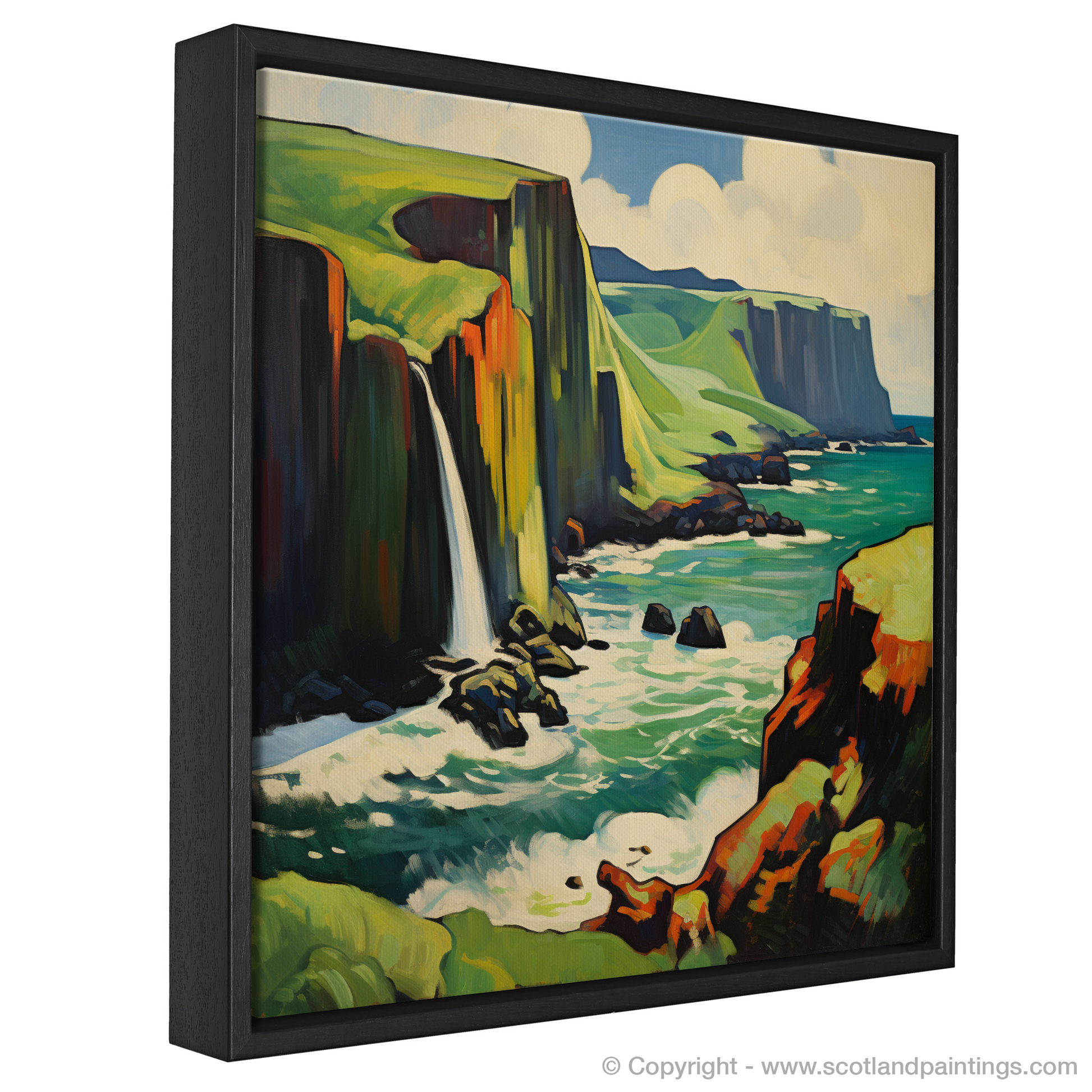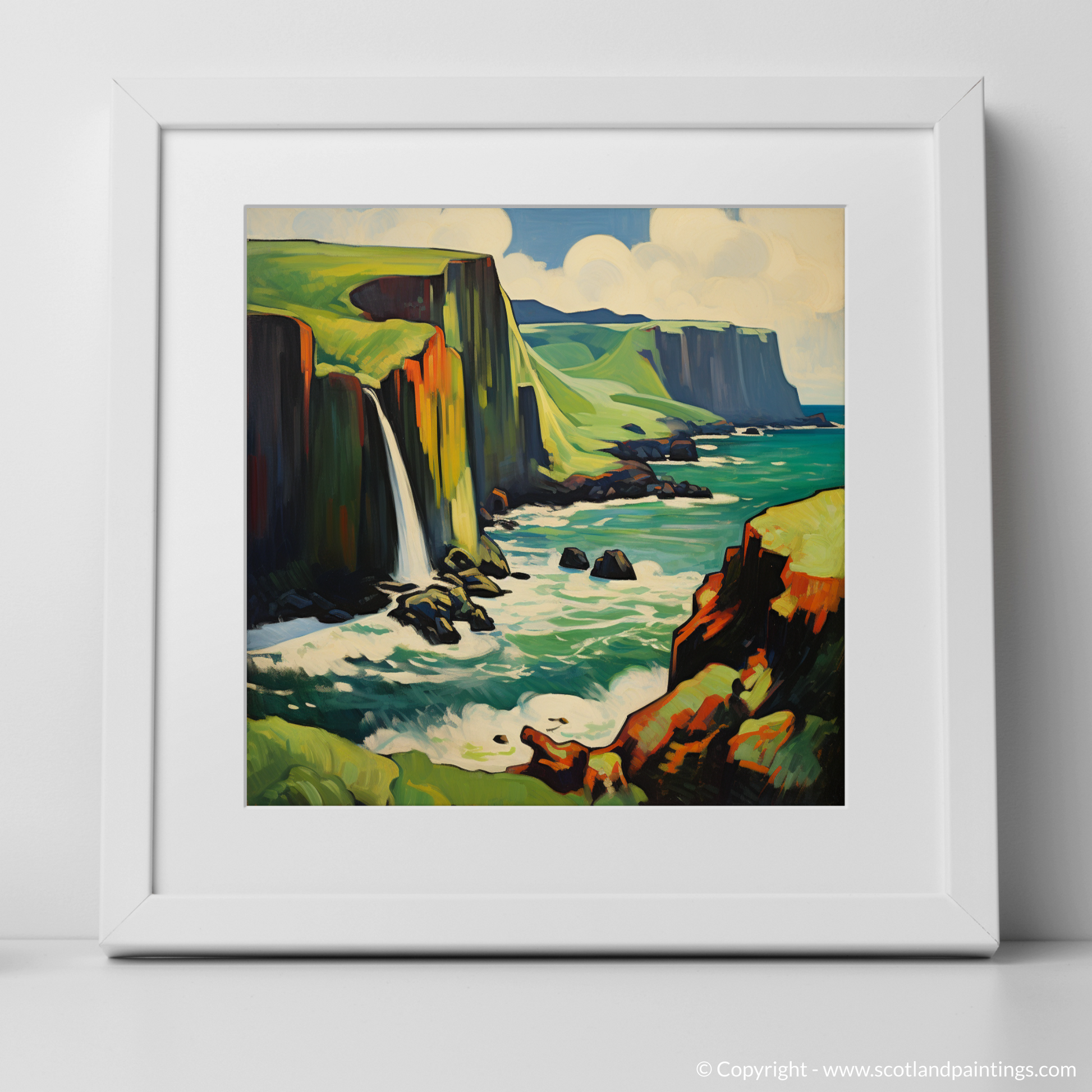 Allow the vibrancy of the Scottish isles to cascade into your space with this stirring rendition of the Mealt Falls on the Isle of Skye, brought to life through the bold and unrestrained lens of Fauvism. This piece captures the raw energy of the landscape, with the falls tumbling fiercely into the sea below.
