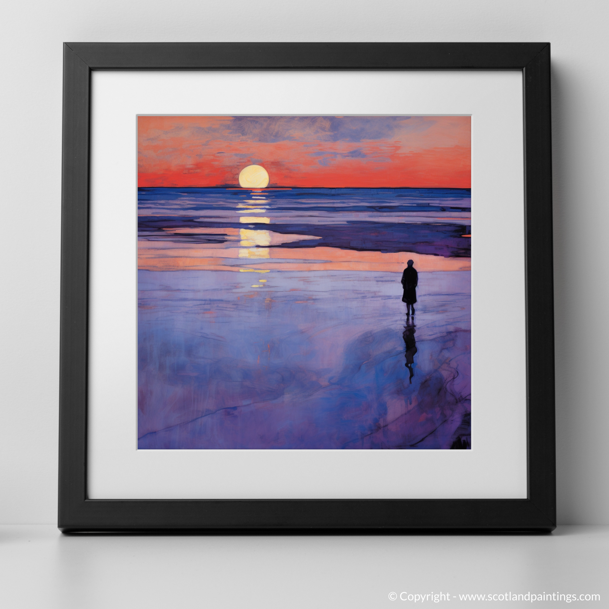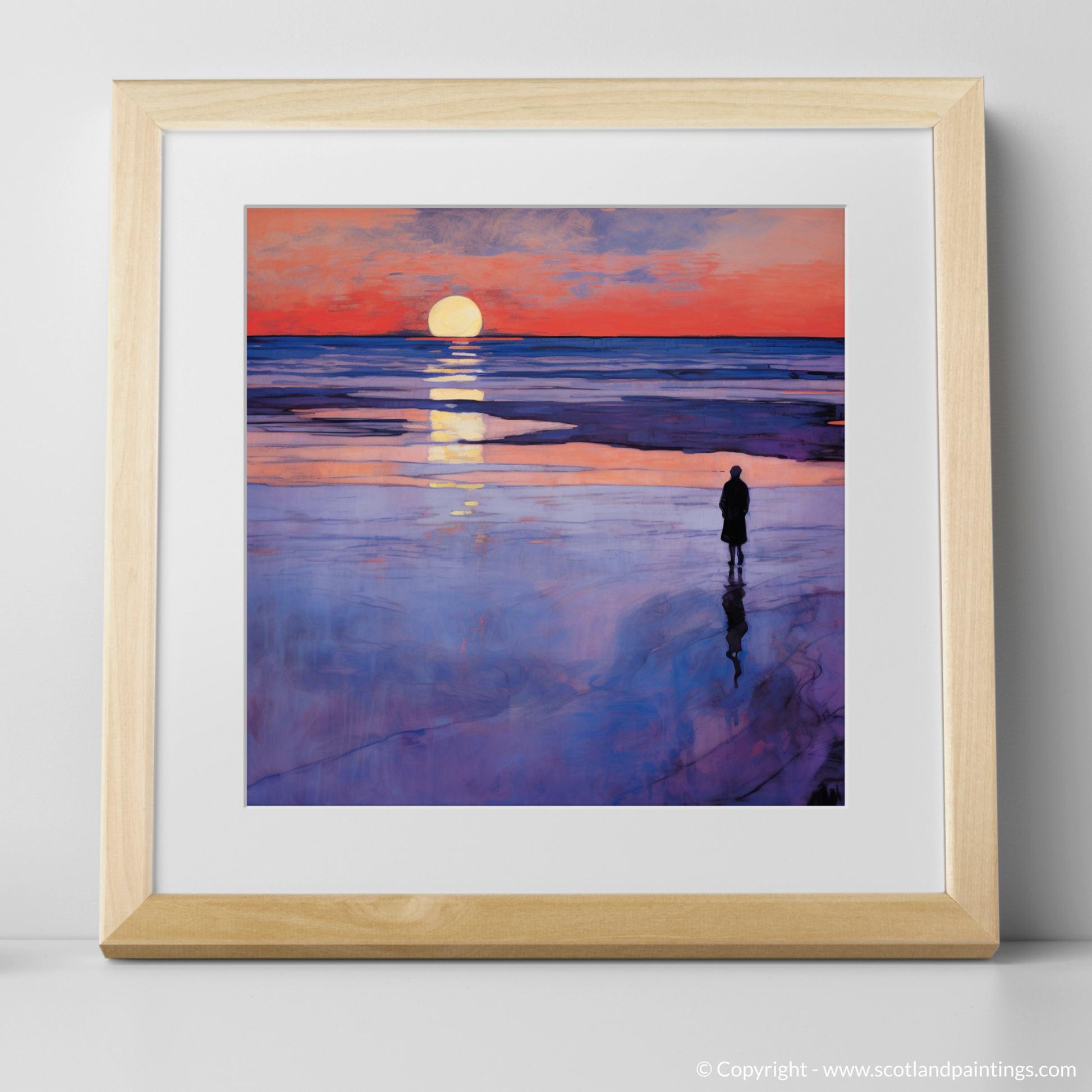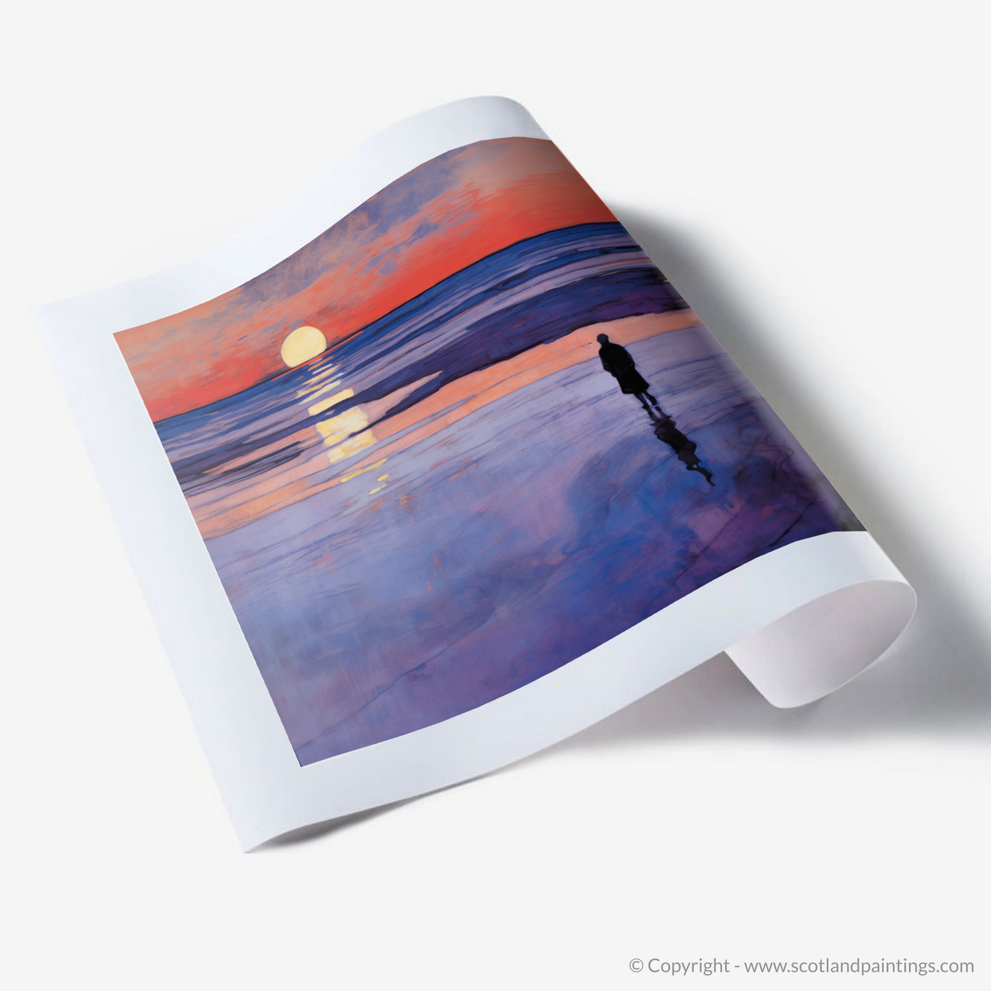 This print, evoking the quietude and reflective mood of an evening by the sea, is a tribute to Scotland's coastal grandeur. It is an offering to those who appreciate the elegance of nature interwoven with the timeless allure of Art Nouveau design, making it a sophisticated addition to any collection that champions the enchantment of Scottish beaches at twilight.