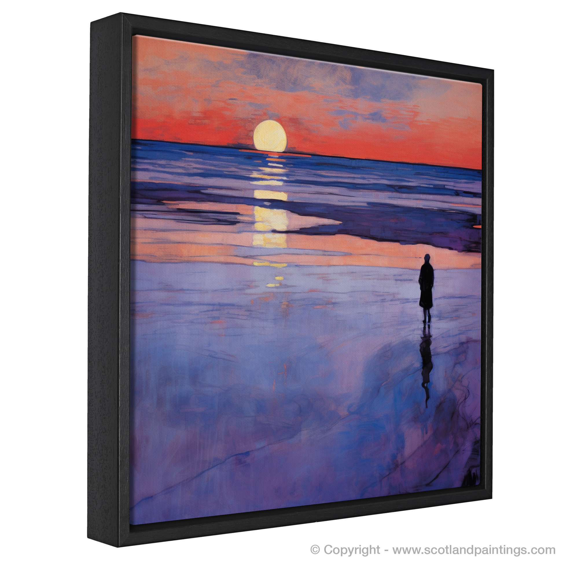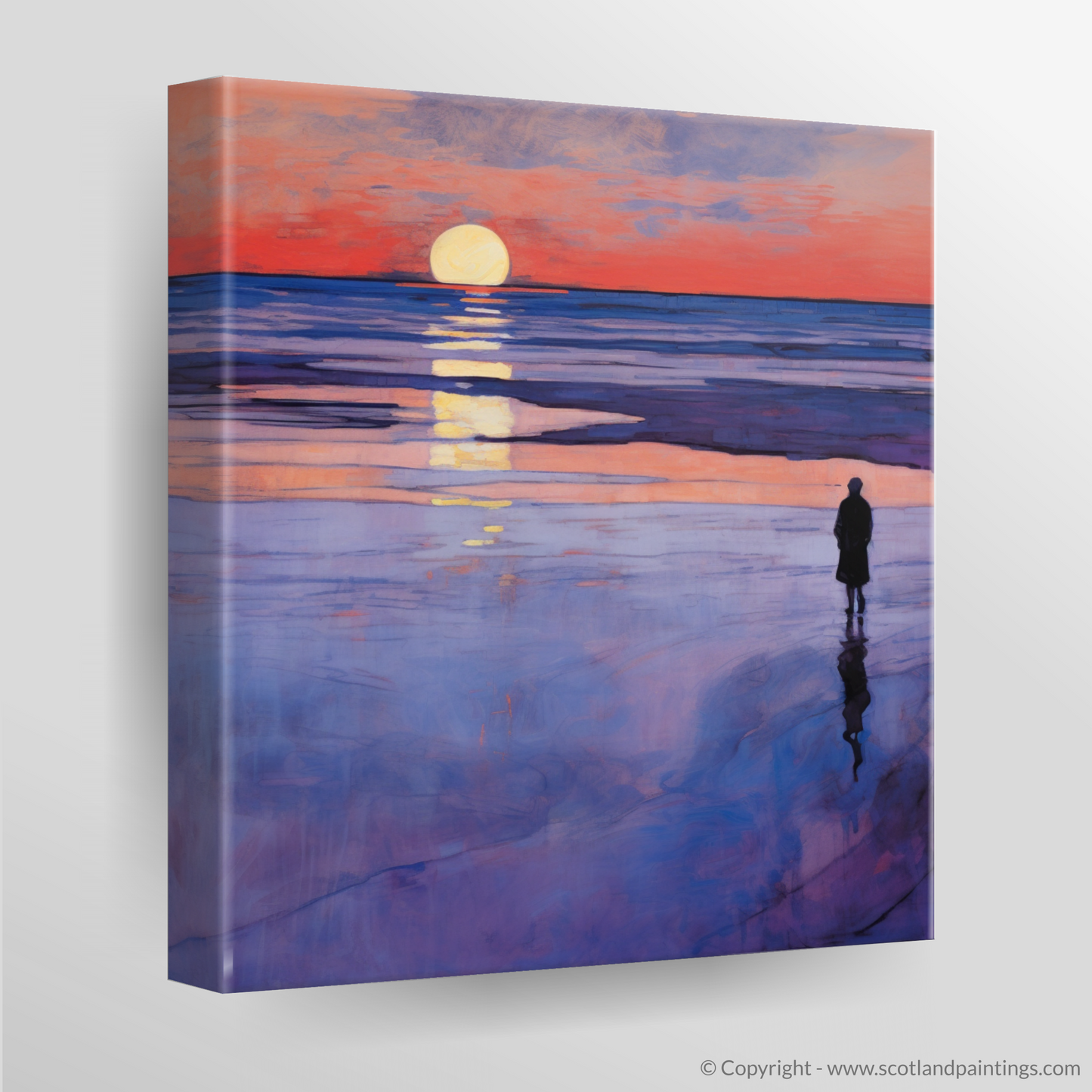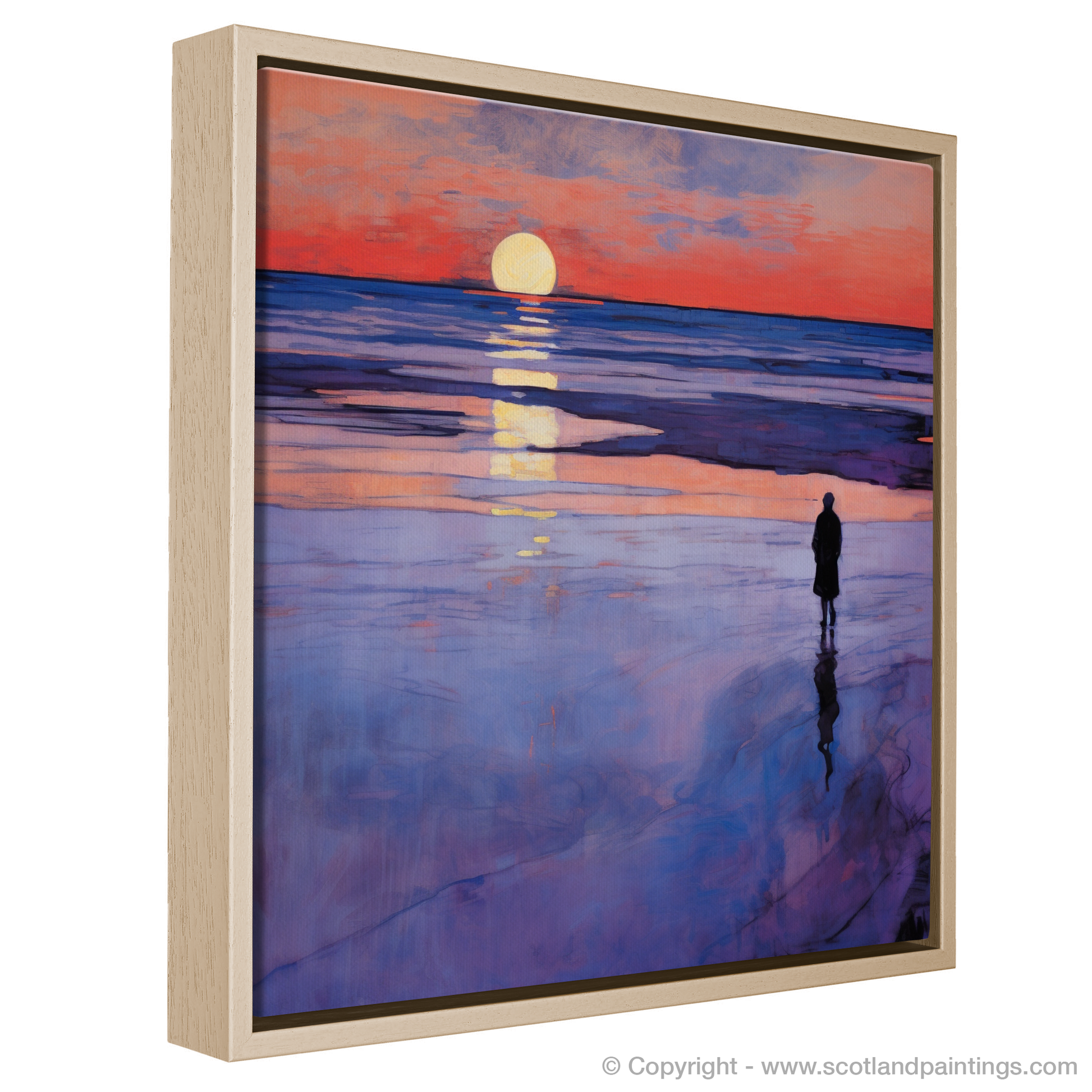 This print, evoking the quietude and reflective mood of an evening by the sea, is a tribute to Scotland's coastal grandeur. It is an offering to those who appreciate the elegance of nature interwoven with the timeless allure of Art Nouveau design, making it a sophisticated addition to any collection that champions the enchantment of Scottish beaches at twilight.