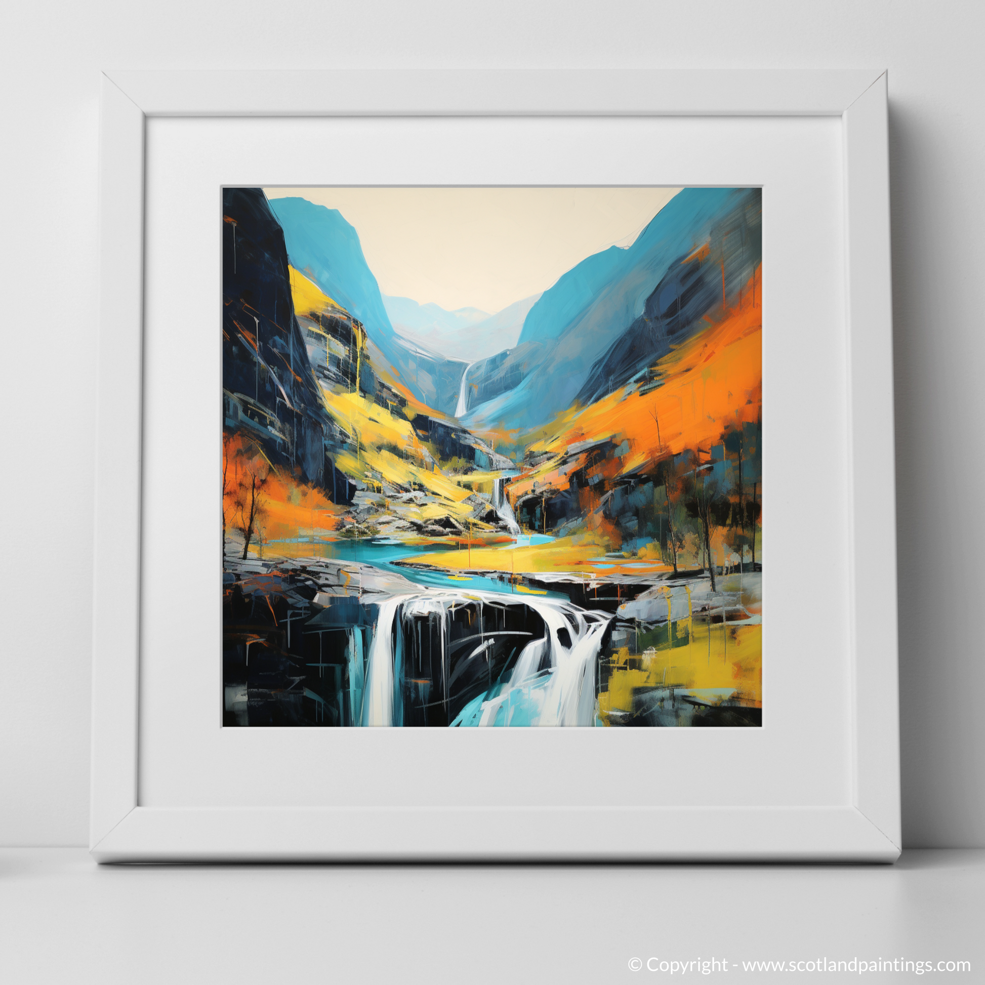 Immerse yourself in the vivid, dynamic beauty of the Scottish Highlands with this captivating print. As part of our 'Scottish Waterfalls' collection, this piece takes its inspiration from the renowned Steall Falls, nestled within the dramatic landscapes of Glen Nevis.