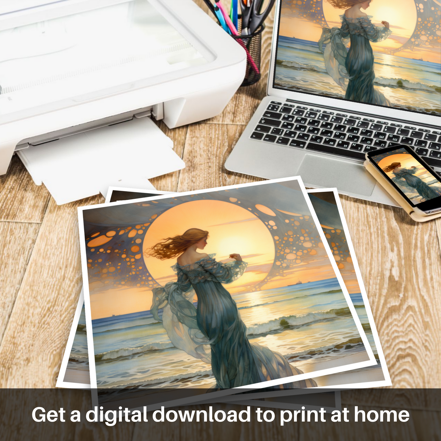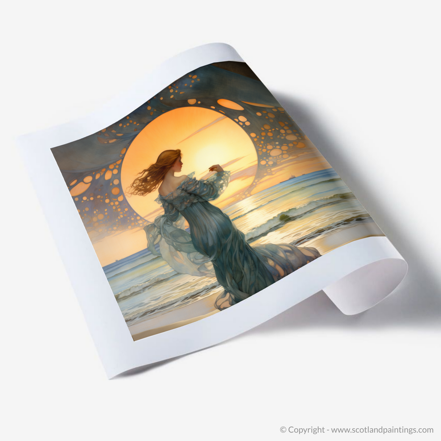 Embrace the tranquil majesty of Nairn Beach at dusk with this enchanting print, a perfect addition for those who cherish the romance of Art Nouveau and the untouched splendour of Scottish landscapes.