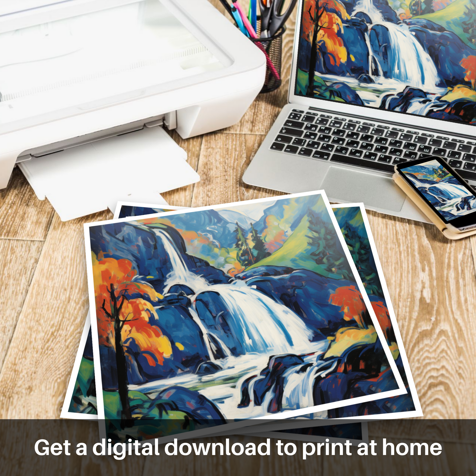 This is more than just a print; it is an invitation to explore the Scottish wilds through a Fauvist lens that celebrates nature's unpredictable beauty. Join us in our 'Scottish Waterfalls' collection for a piece that promises to captivate and inspire, transforming any space with its exuberant expression and unbridled joy in colour and form.