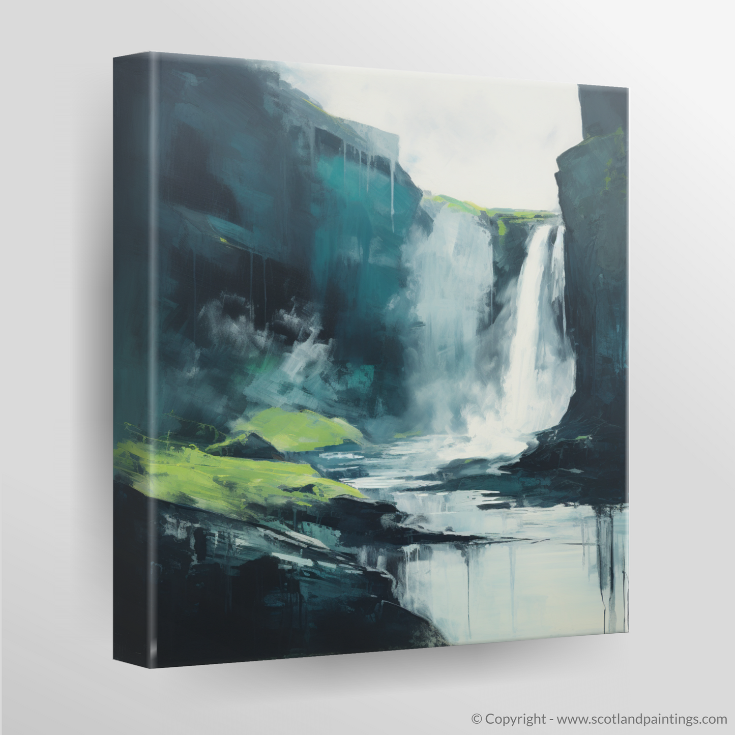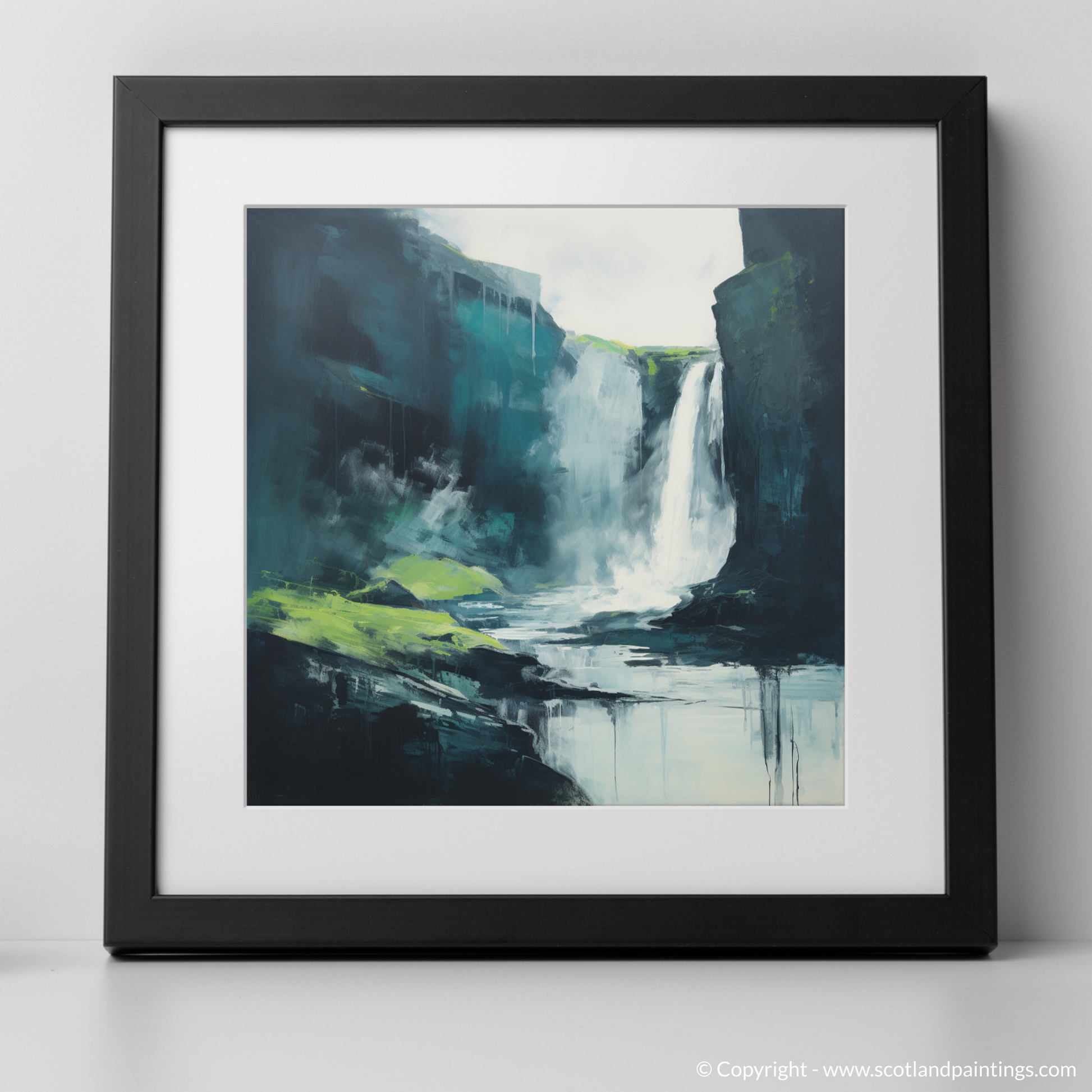 Immerse yourself in the serene beauty of the Scottish Isle with a mesmerizing print that captures the tranquil essence of Mealt Falls. The cascading waters are rendered in an evocative Color Field style, where swathes of blue and white paint swirl together to create a sense of movement and the soothing sound of flowing water. This piece juxtaposes the soft, flowing waterfall with the solid, dark rocky cliffs that frame it, creating a powerful contrast that speaks to the rugged splendour synonymous with Skye's landscapes.