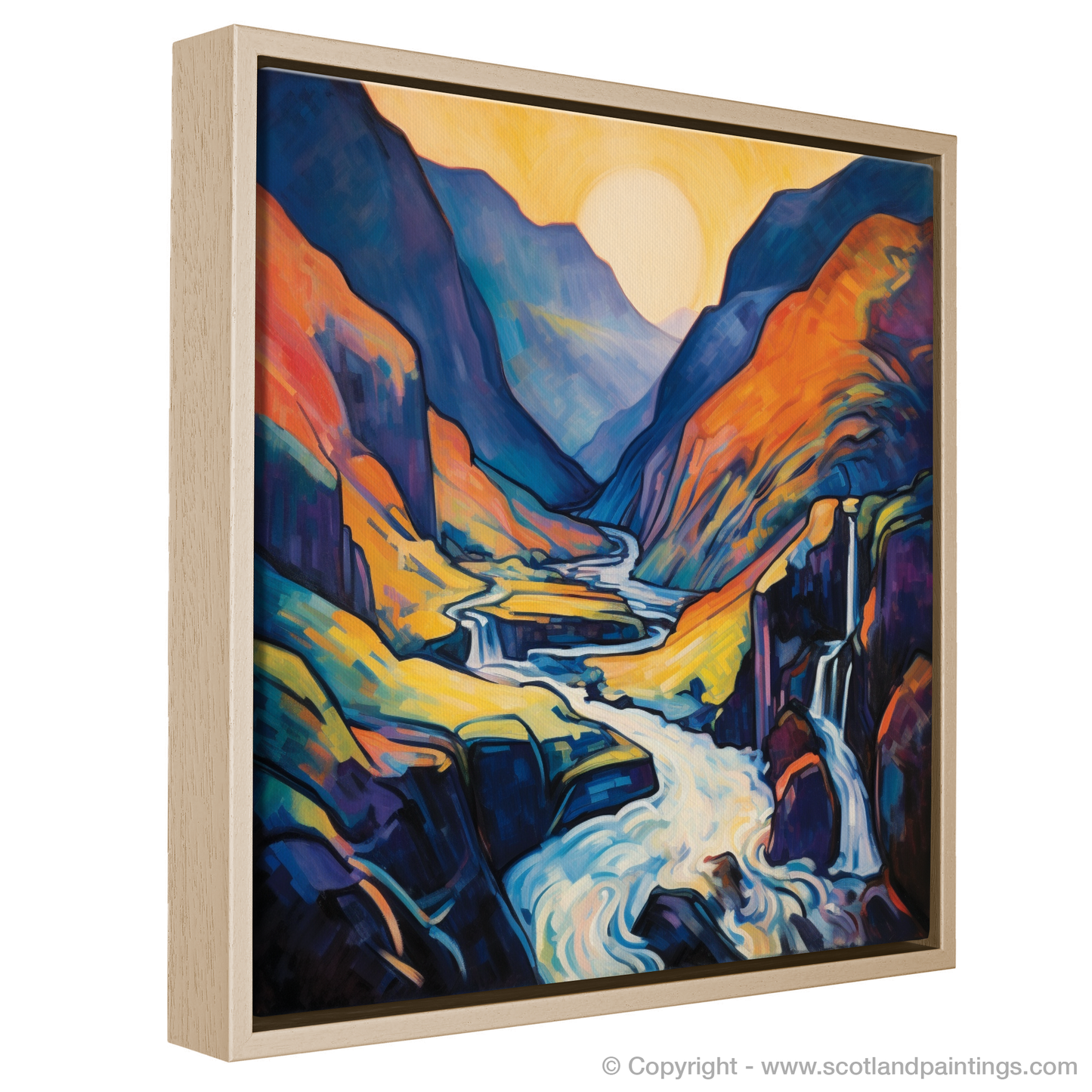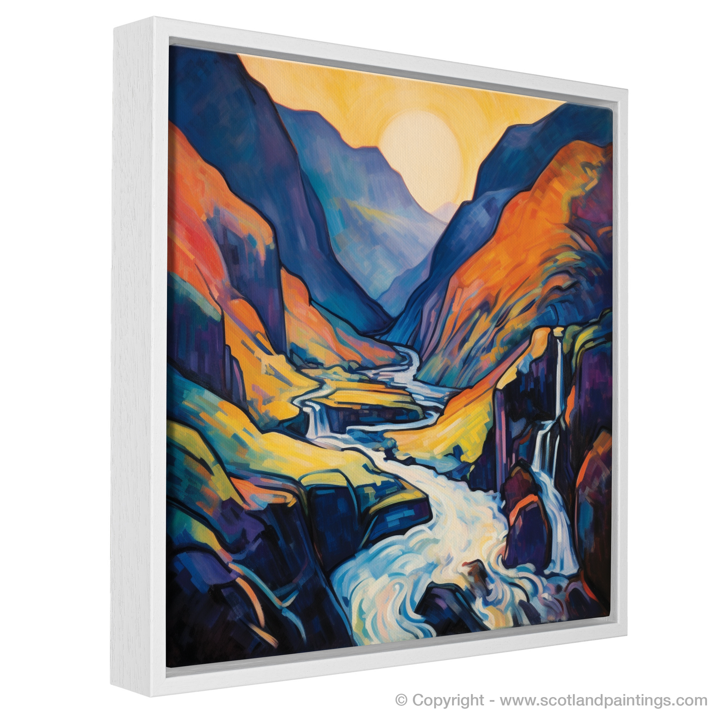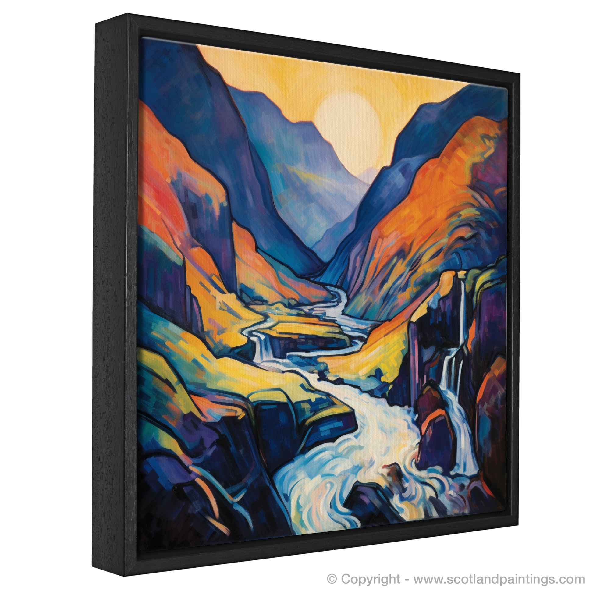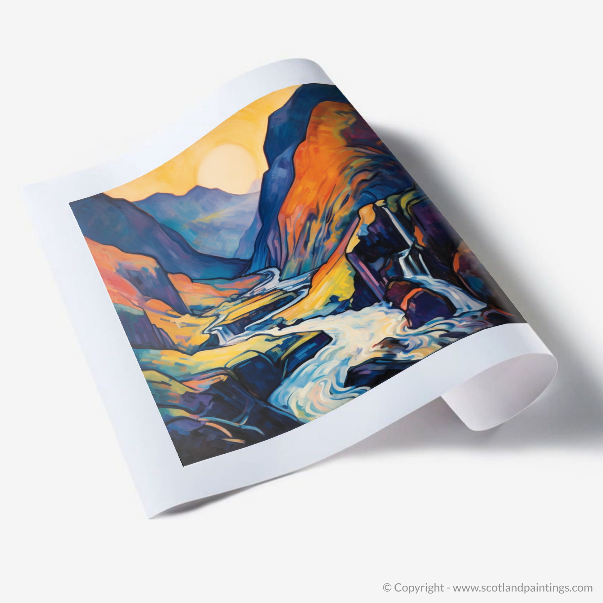 This arresting composition is not just a portrayal of a scenic Scottish waterfall; it is an invitation to explore a world where emotion is conveyed through explosive colour and daring abstraction. Its place in our 'Scottish Waterfalls' collection is enriched by its ability to transport the onlooker to the very heart of Glen Nevis, offering an immersive experience that resonates with the soul of Scotland's wild, natural beauty. Add this enthralling print to your space and let it infuse your surroundings with the spirited essence of Scottish wilderness.