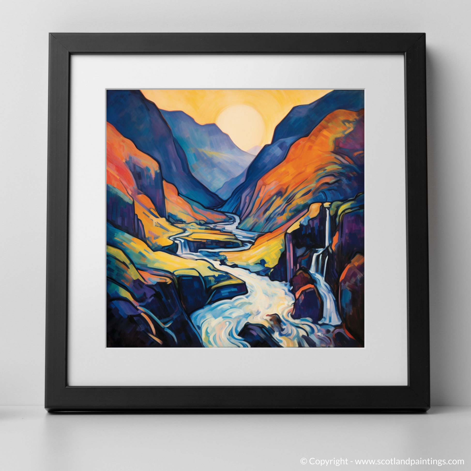 Immerse yourself in the vibrant essence of Scotland's natural beauty with this captivating print, a vivid ode to Steall Falls in Glen Nevis. With its unmistakable Fauvist flair, the artwork presents a stunning interplay of colour and form, evoking the raw and untamed spirit of the Scottish landscape.