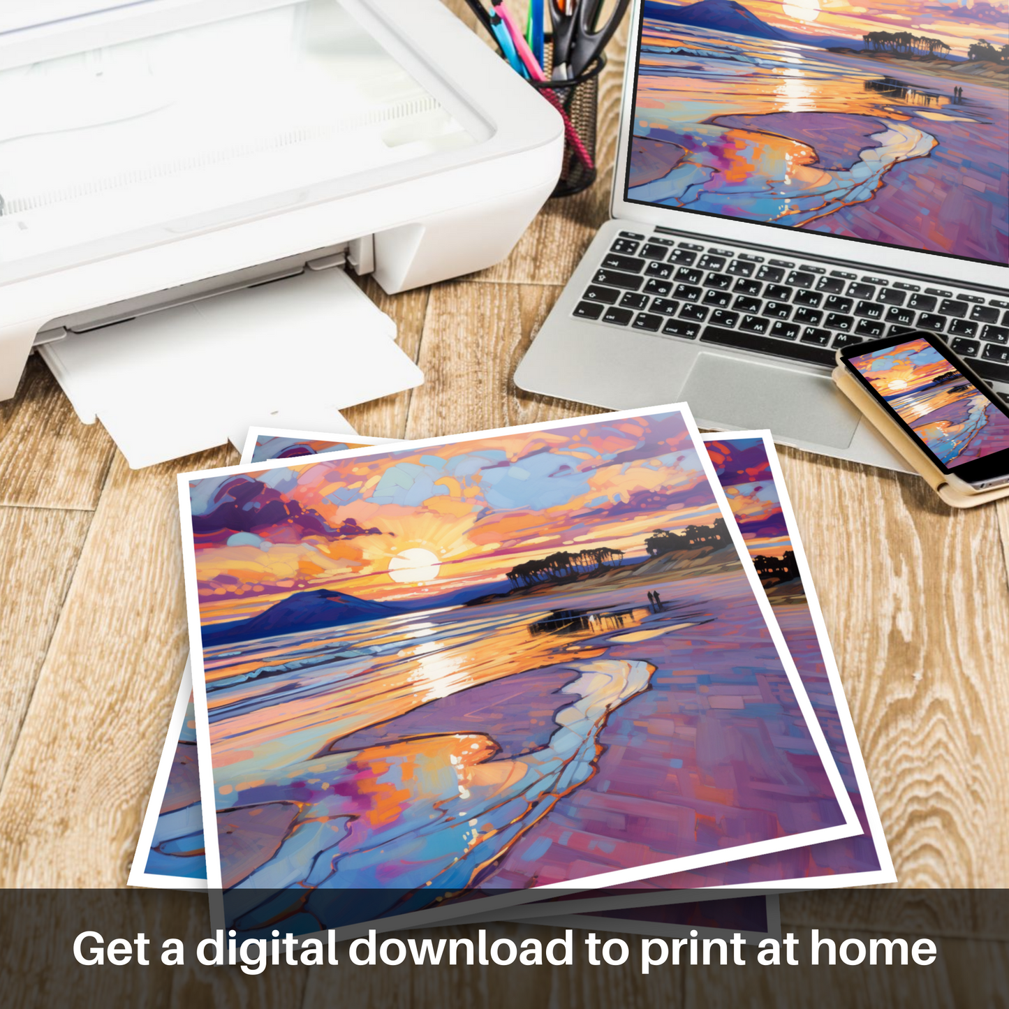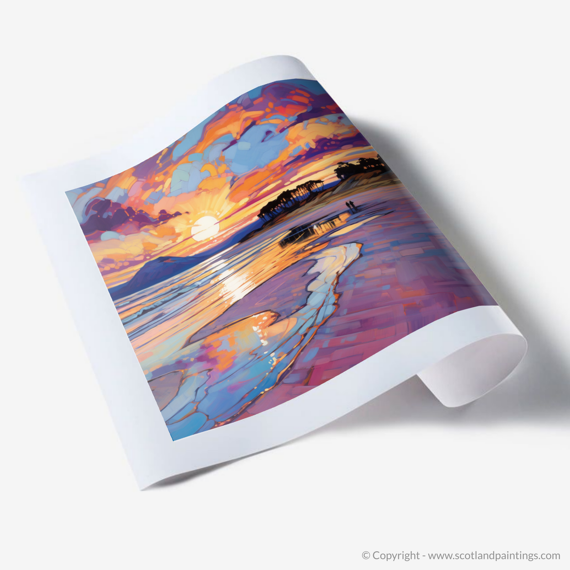 Immerse yourself in the ethereal beauty of Nairn Beach as dusk settles in with our exquisite print, a stunning centrepiece from our 'Scottish Beaches' collection. This piece brilliantly captures the dance of twilight hues across the sky and gently lapping waves, inviting the viewer into a moment of serene contemplation.