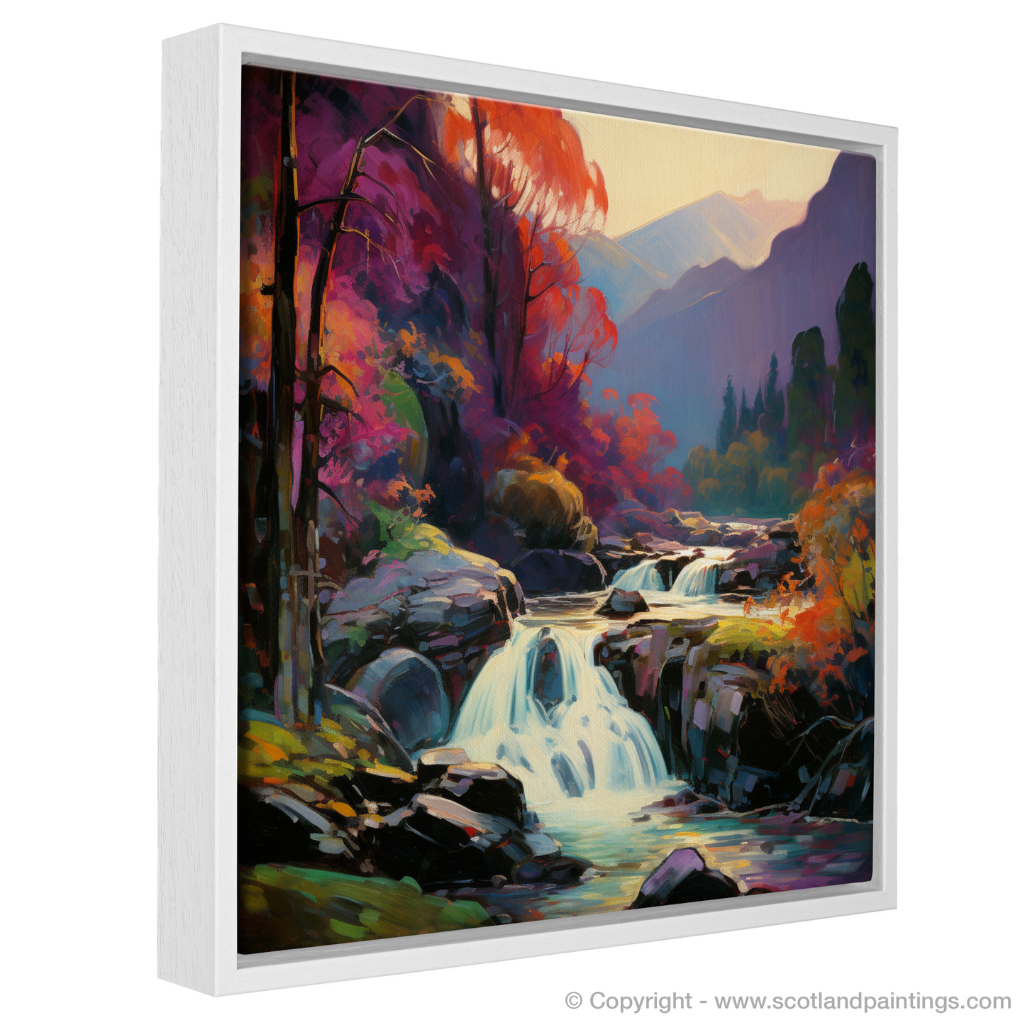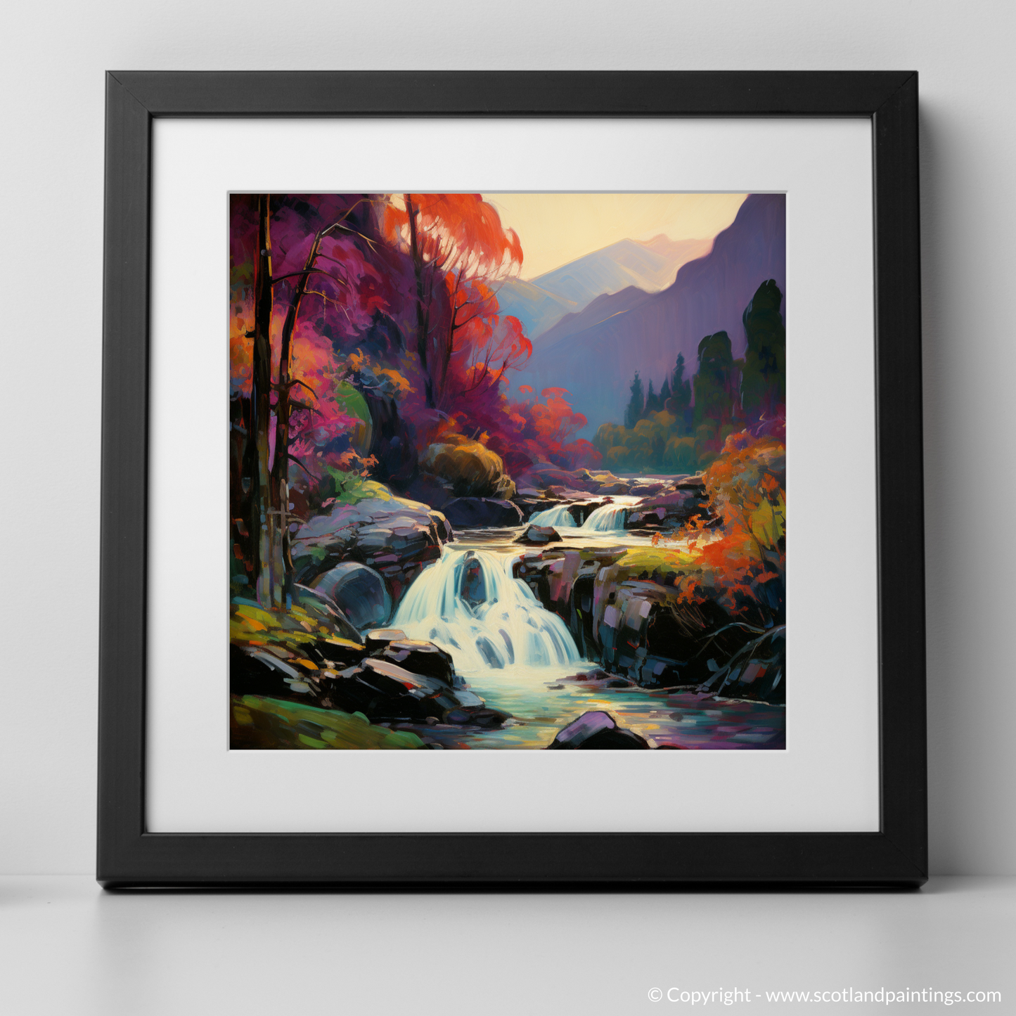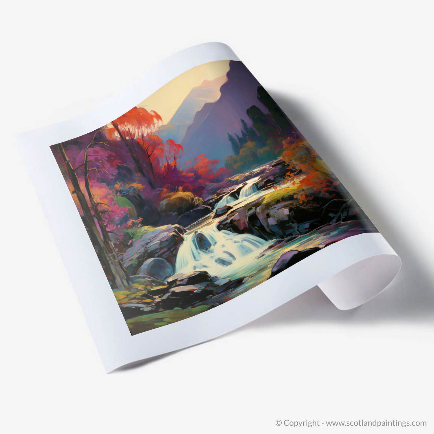 Immerse yourself in a vivid tapestry of colours with this striking print inspired by the Plodda Falls, a jewel nestled within the Highlands of Scotland. The artwork exudes the quintessential spirit of Fauvism, unabashed in its use of bold, expressive hues that dance across the canvas, capturing the viewer's imagination and conjuring a sense of unbridled passion.