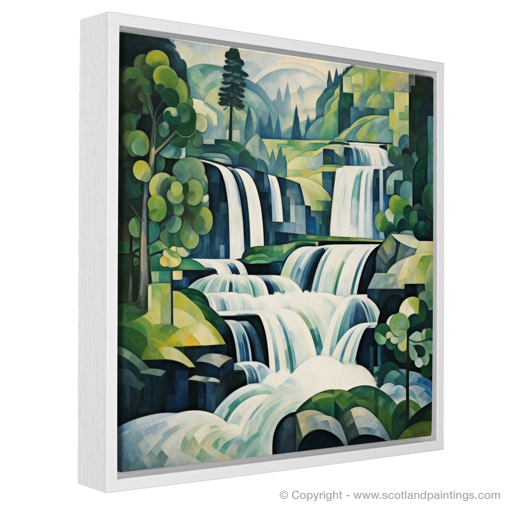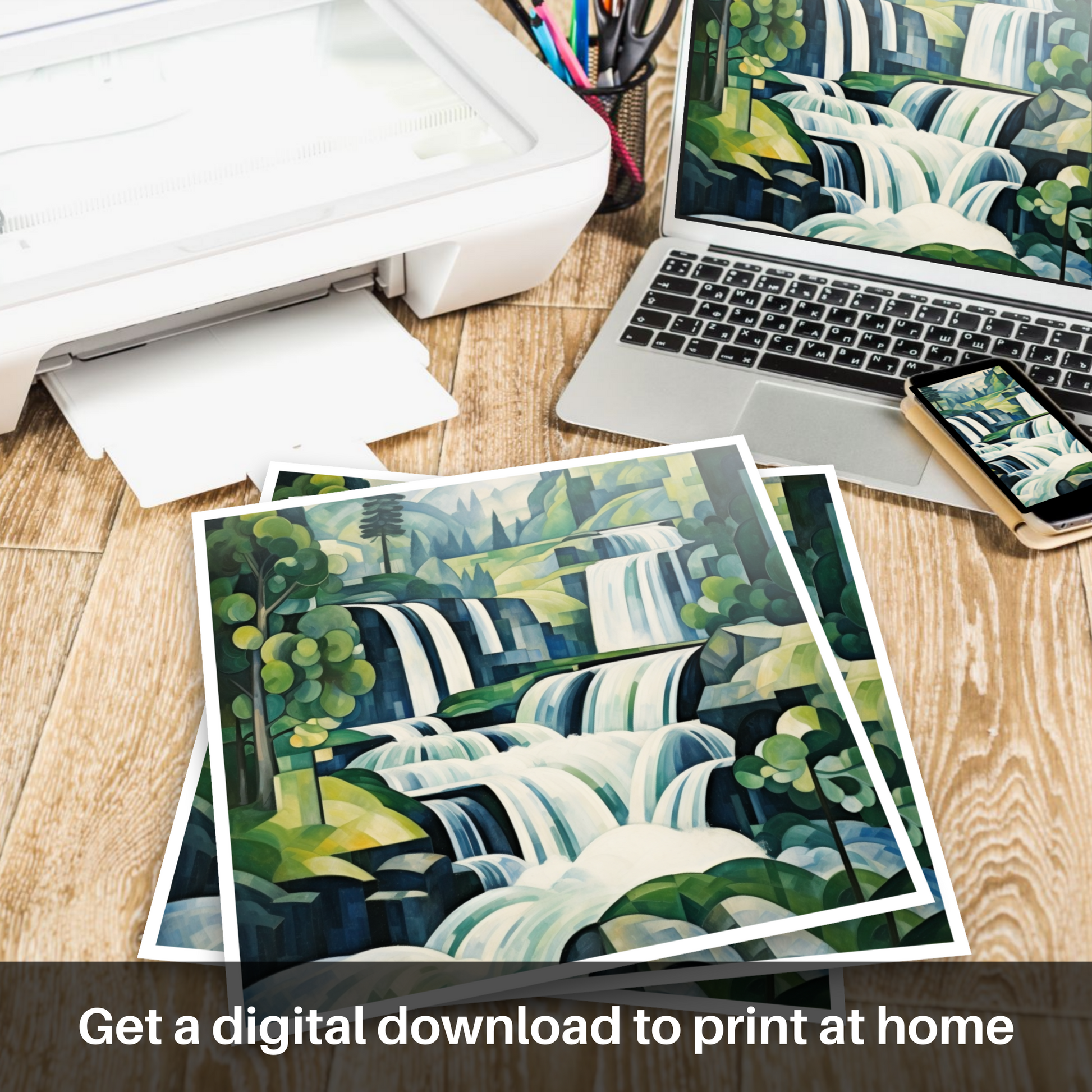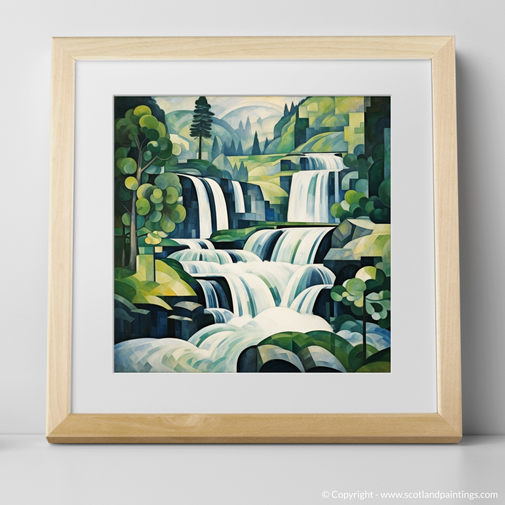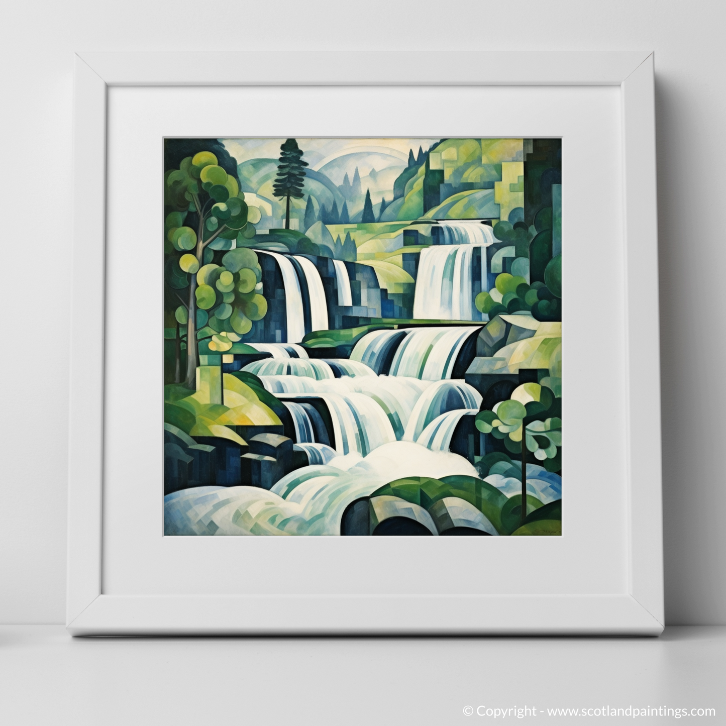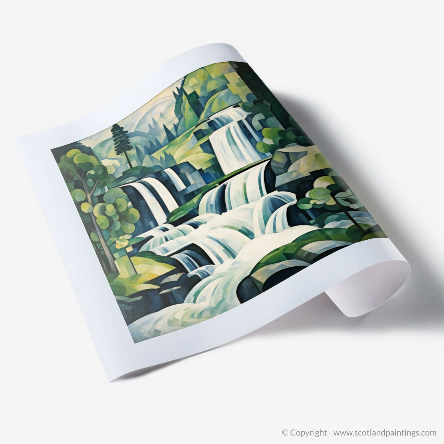 Immerse yourself in the dynamic and fragmented beauty of Plodda Falls, as interpreted through the distinctive lens of Cubism. This exquisite print transports viewers to the Scottish Highlands, where the natural splendour of cascading waters has been reimagined into an array of geometric shapes and interlocking planes. The fluidity of the water contrasts with the angularity of the rocks and greenery, creating a visually rich tapestry that captures the essence and energy of the falls.