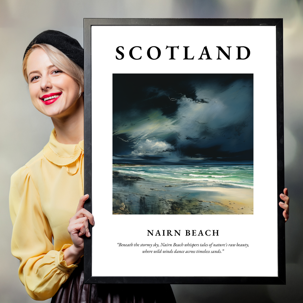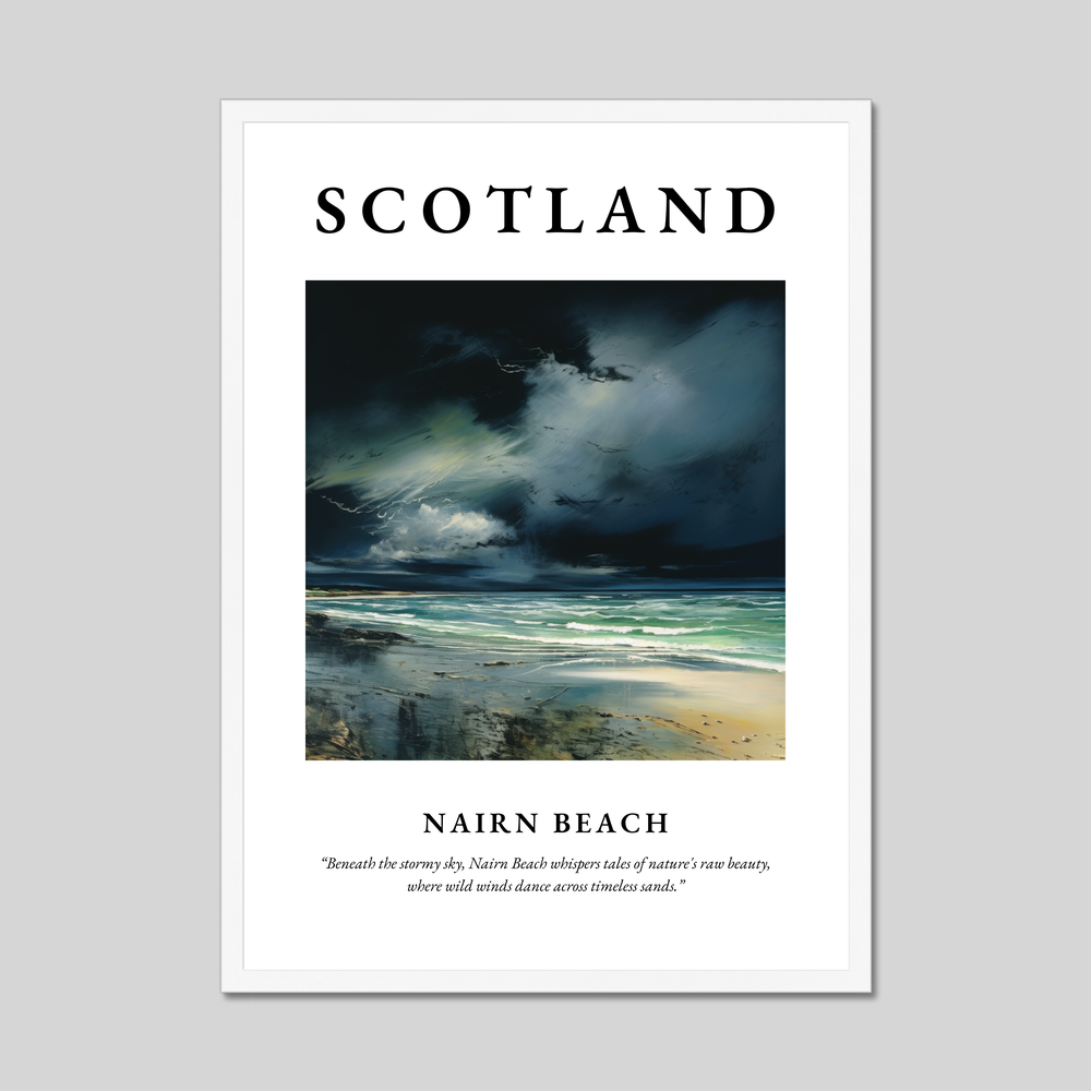 The stunning interplay of light and shadow, the sheer power of the elements, and the timeless sands of Nairn Beach are beautifully mirrored in this artwork. Whether you have experienced the wilds of Nairn firsthand or simply appreciate the allure of Scotland’s coastal beauty, this poster serves as a daily reminder of nature's awe-inspiring grandeur.