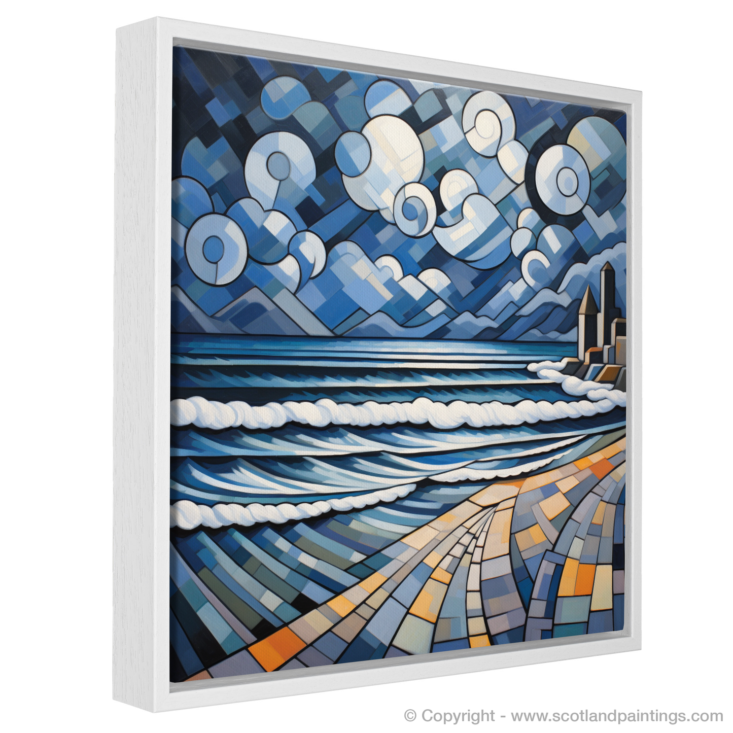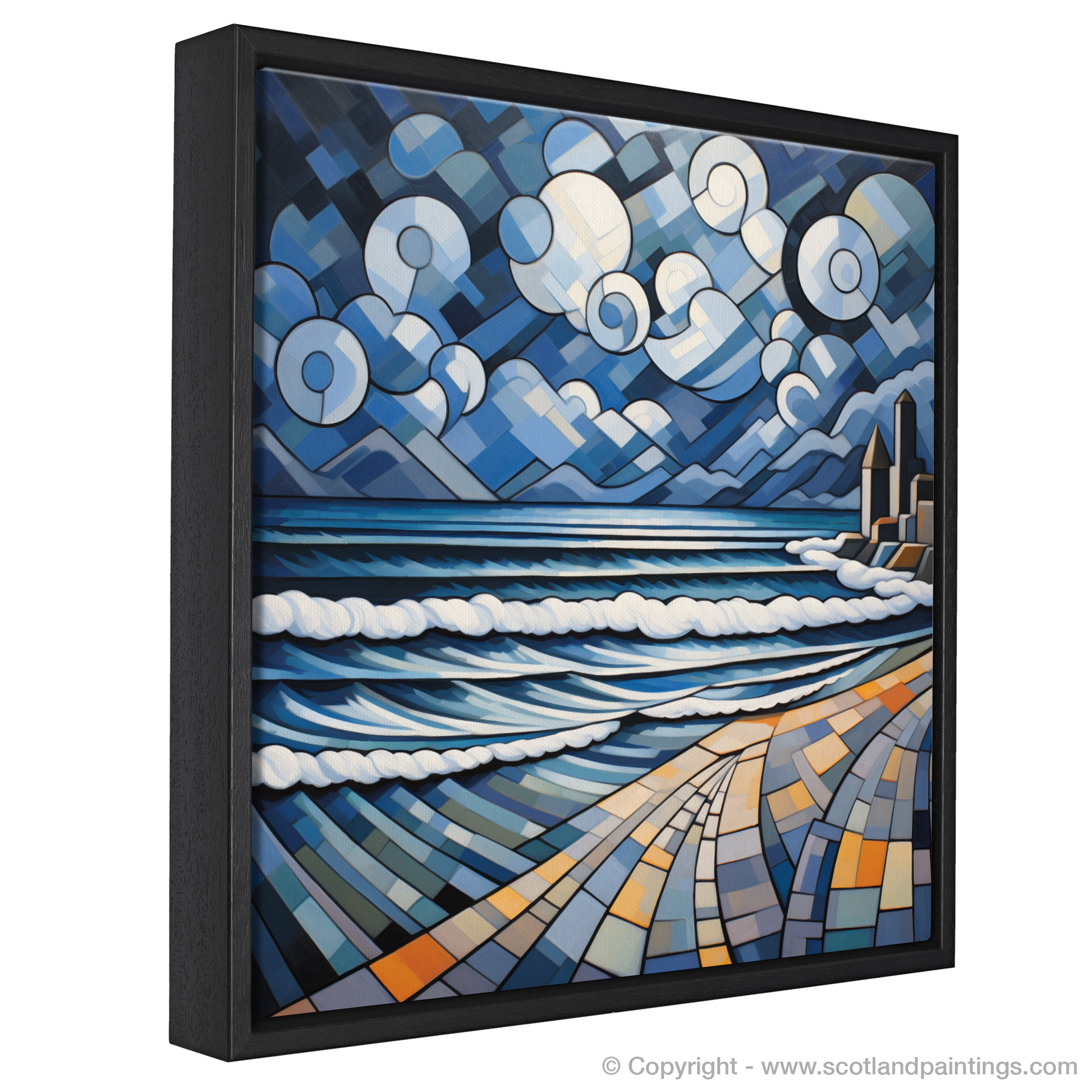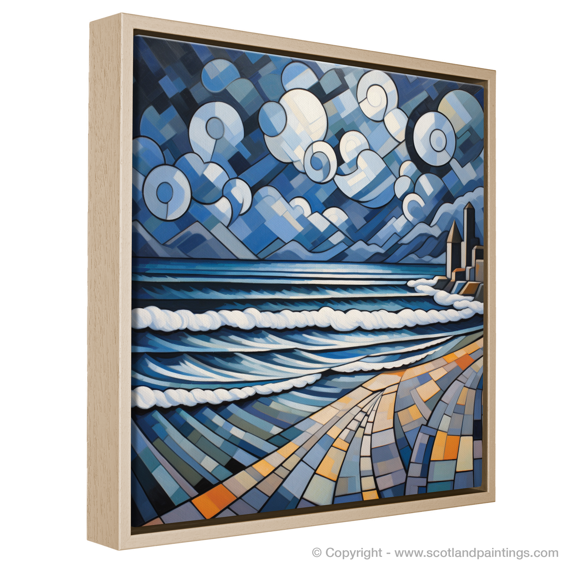 Immerse yourself in a geometric tempest with this enthralling Cubist interpretation of Nairn Beach. Every inch of this dynamic print is a kaleidoscope of interlocking shapes and forms, cleverly crafted to transport the observer to the rugged Scottish coastline under a brooding, storm-laden sky.