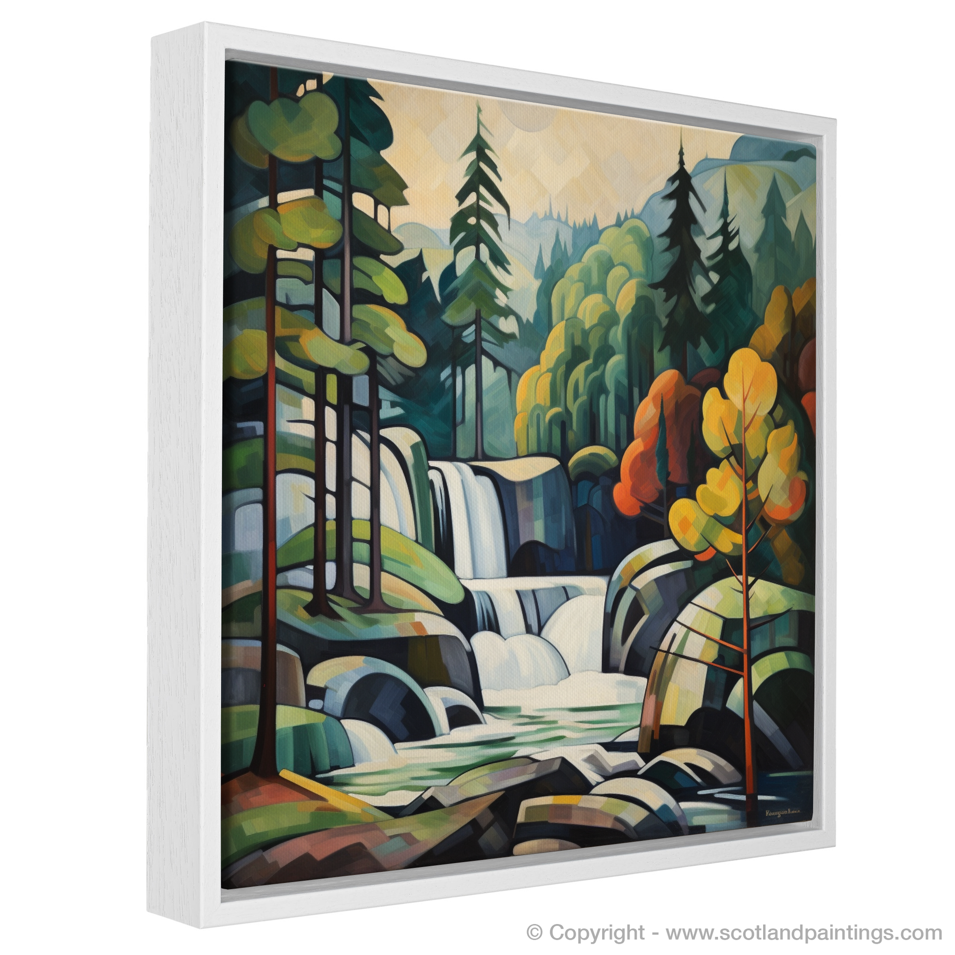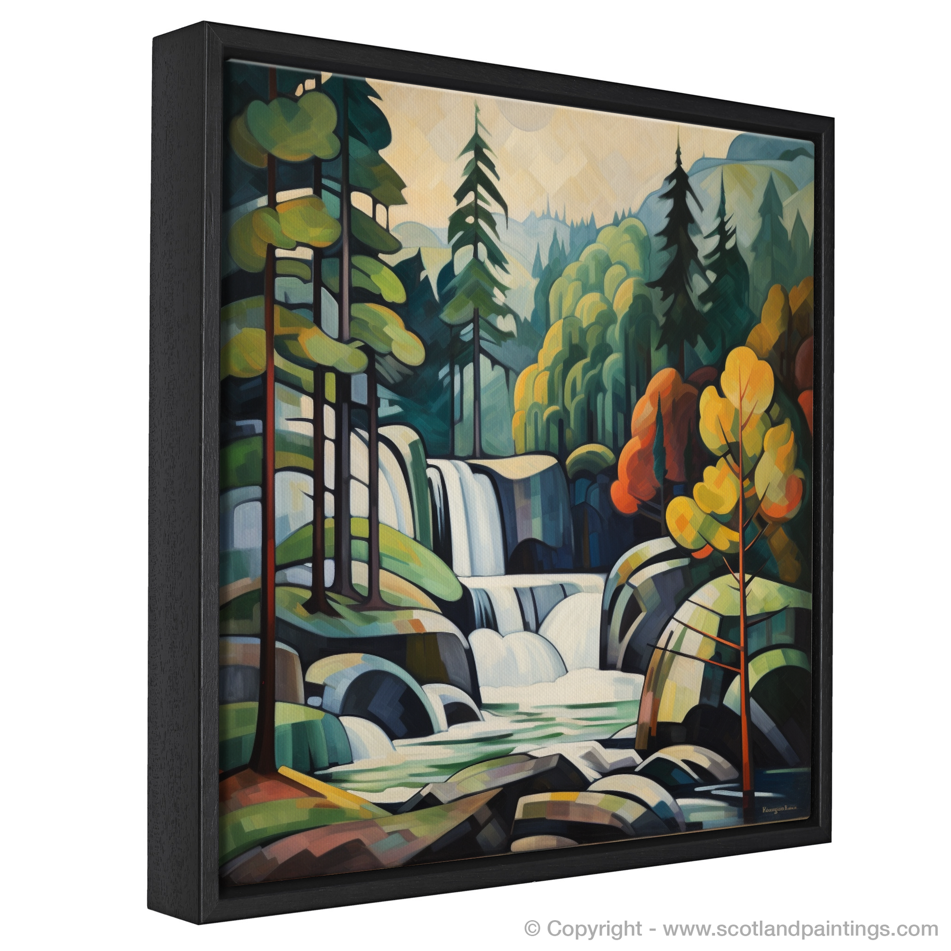 Step into a world where nature's raw beauty meets the bold, geometric lines of Cubism with this exquisite print, inspired by the cascading wonders of Plodda Falls in the Scottish Highlands. The piece presents an abstracted panorama of rushing water and serene woodland, inviting viewers to explore a landscape quite unlike any other.