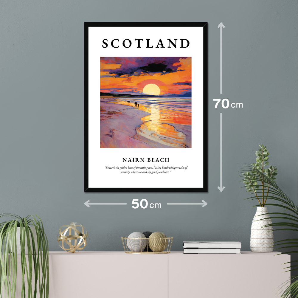 Immerse yourself in the enchanting allure of Scotland with our stunning framed poster print featuring the captivating beauty of Nairn Beach. At a grand 50cm x 70cm, this piece offers a sizeable and striking addition to your wall, providing a window into one of Scotland’s most breathtaking coastal landscapes without breaking the bank.