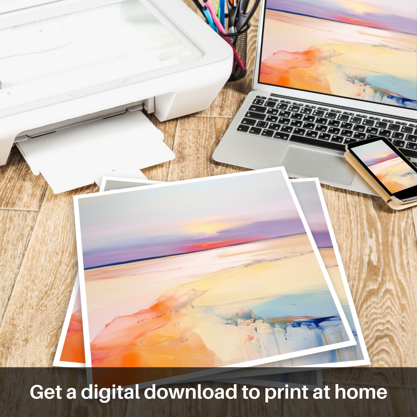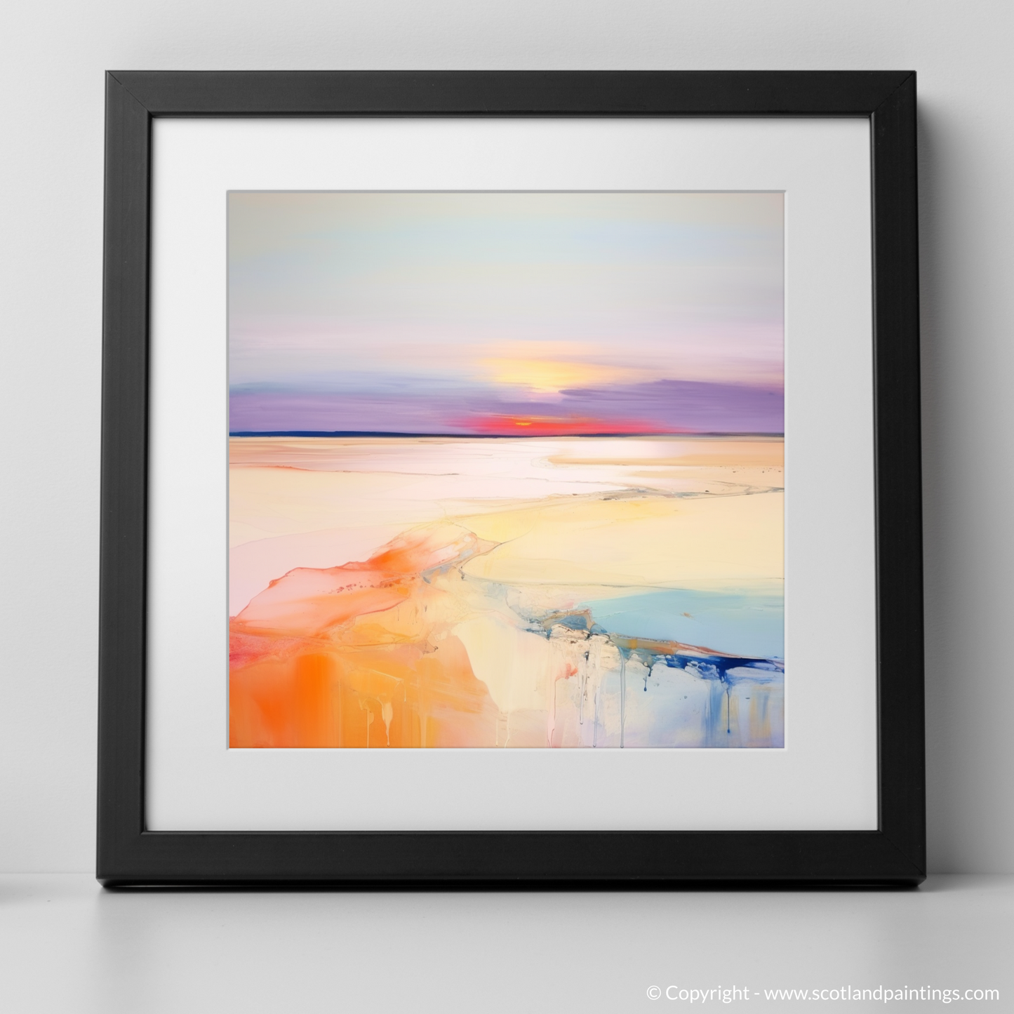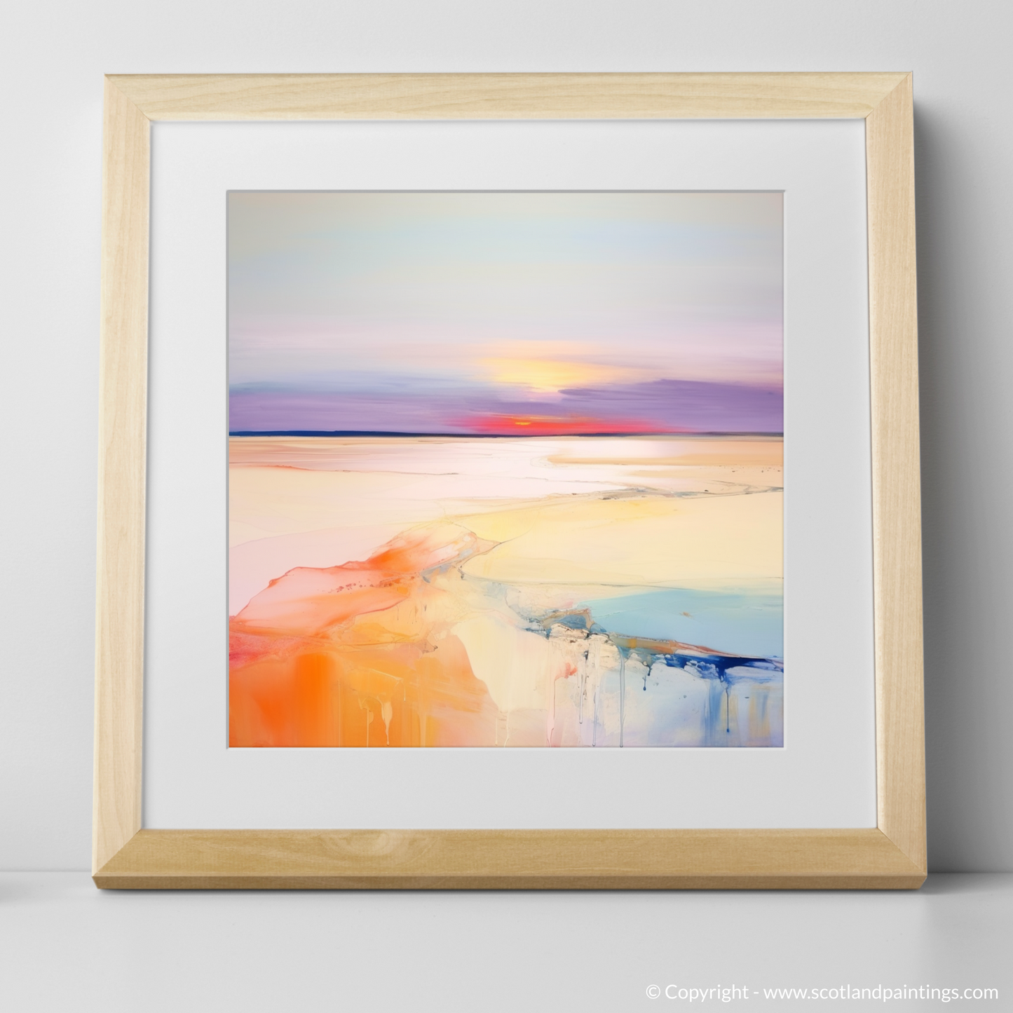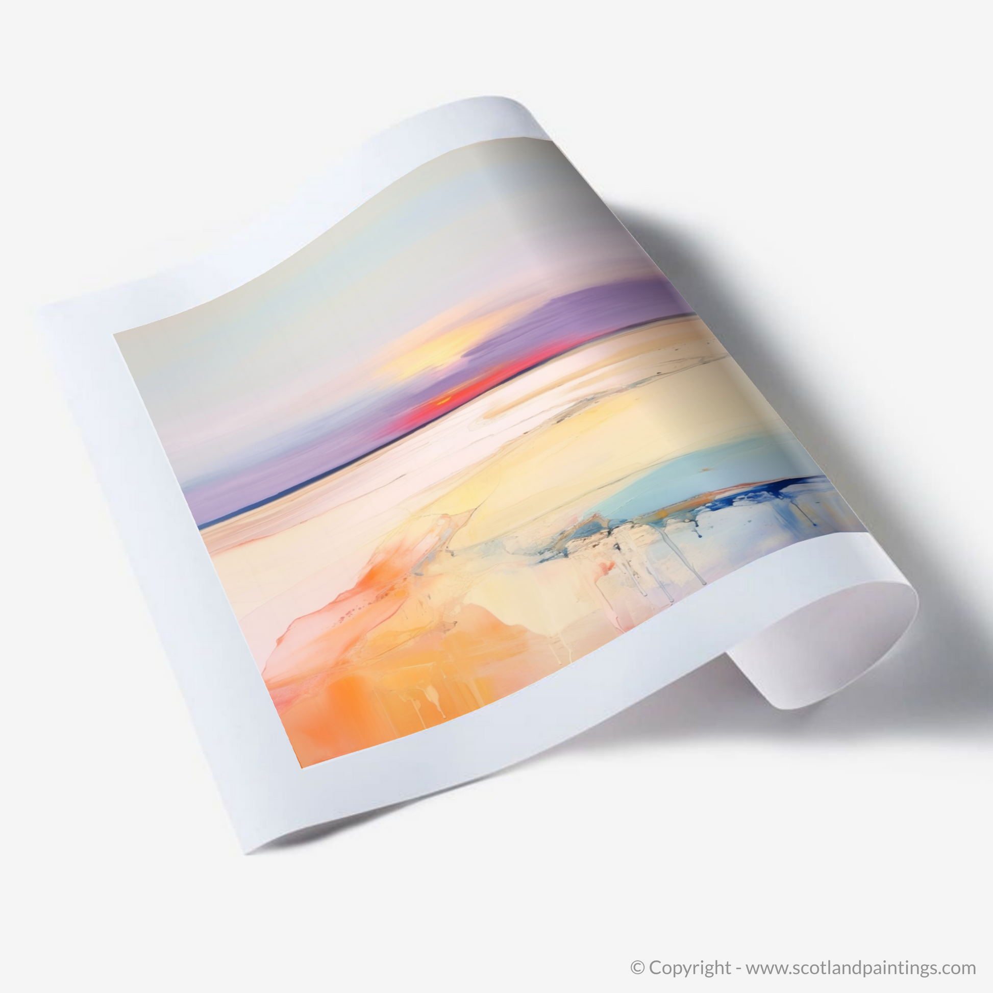 Capturing the soft whisper of the shifting sands and the serene palette of a Nairn Beach twilight, this abstract print invites the viewer into a realm of tranquil contemplation. Hues of muted pink, gentle orange, and calming blues merge in a harmonious symphony, evoking the ethereal glow of the setting sun as it dips beneath the horizon. The expanse of the beach appears to stretch into infinity, abstracted into broad brushstrokes and swathes of colour that suggest the ebb and flow of the tide.
