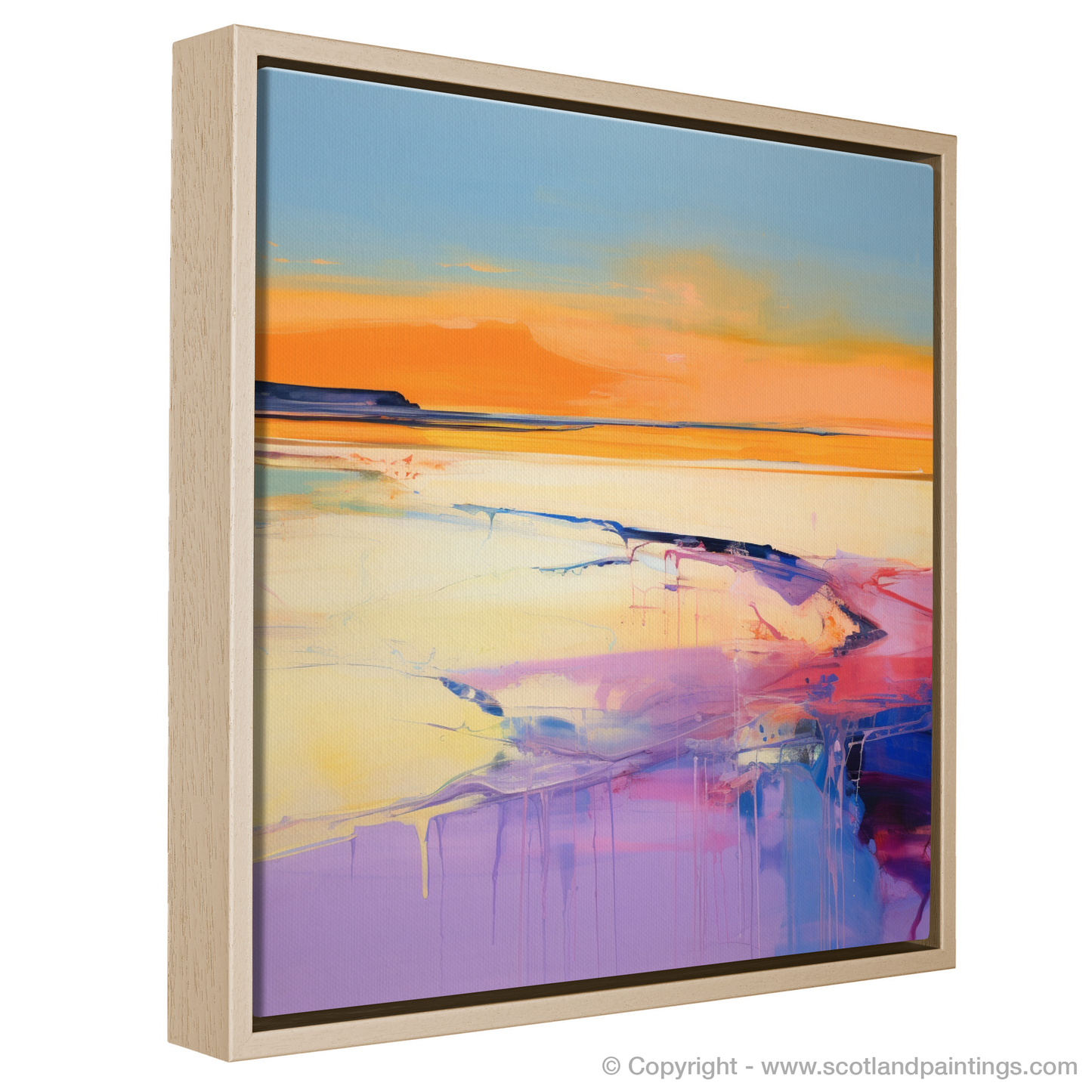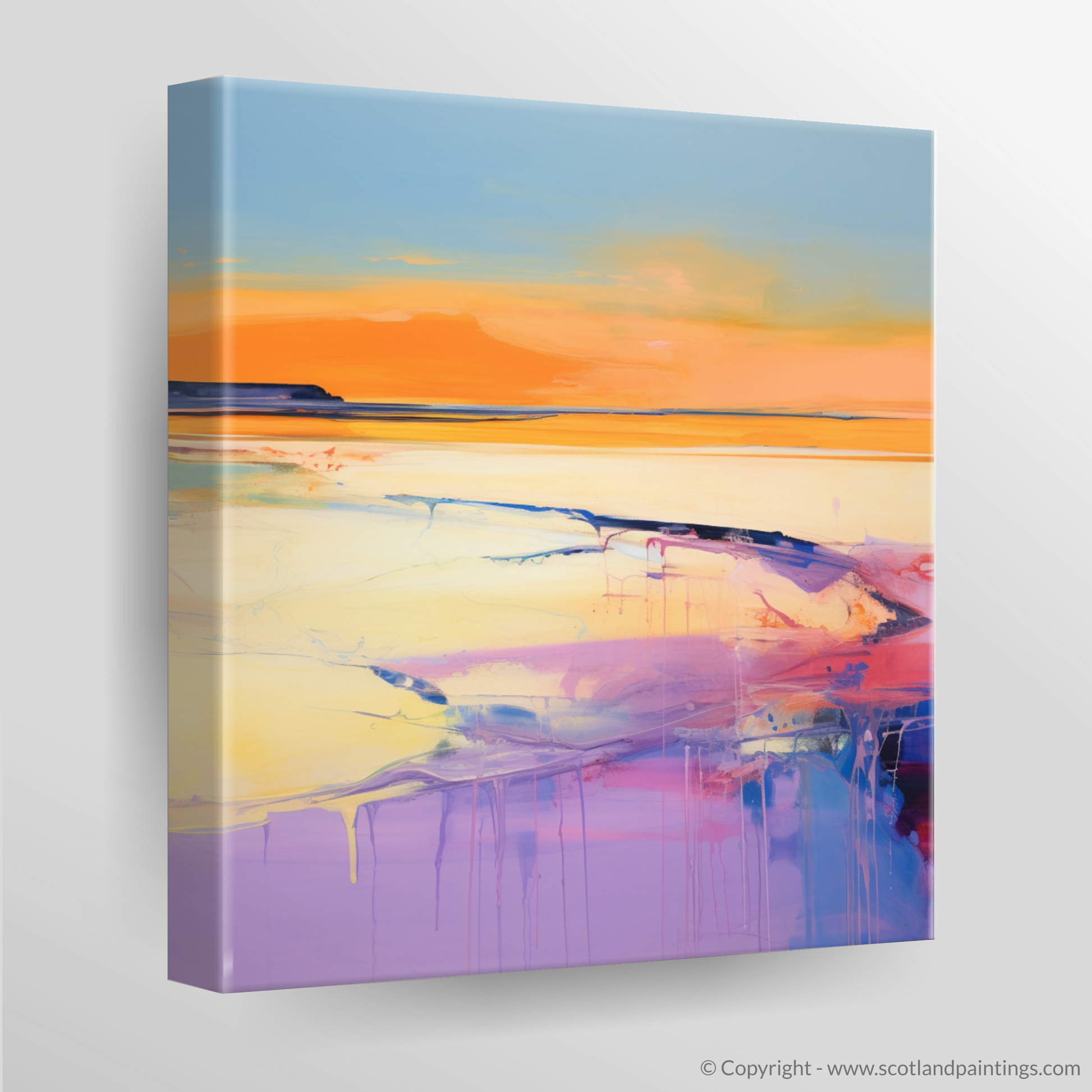 Capturing the essence of nature's artistry, this mesmerising print invites you to bask in the palette of a Nairn Beach sunset, transformed through the lens of abstract expression. Vivid oranges and warm yellows melt into each other, echoing the sky's own canvas as the sun dips below the horizon. Below, a myriad of purples and pinks dance across the scene, evoking the reflective sheen of wet sand and the tranquil water's surface. Bold streaks and delicate drips of colour convey a sense of movement, suggesting the ebb and flow of the waves on the Scottish shore.