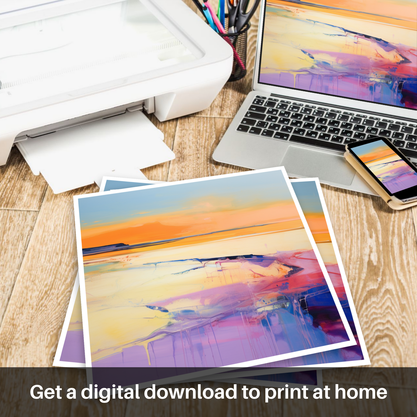 This print is a statement piece, a conversation starter, an opportunity for contemplation. It is a snapshot of an ephemeral moment, a sunset that will never be seen exactly the same way again, yet it is immortalised with a vibrancy that endures. Ideal for those who appreciate the abstract and the emotive power of colour, this piece from the 'Scottish Beaches' collection promises to bring a touch of Scotland's natural grandeur and the intrigue of abstract art to any space.
