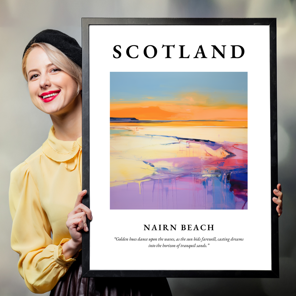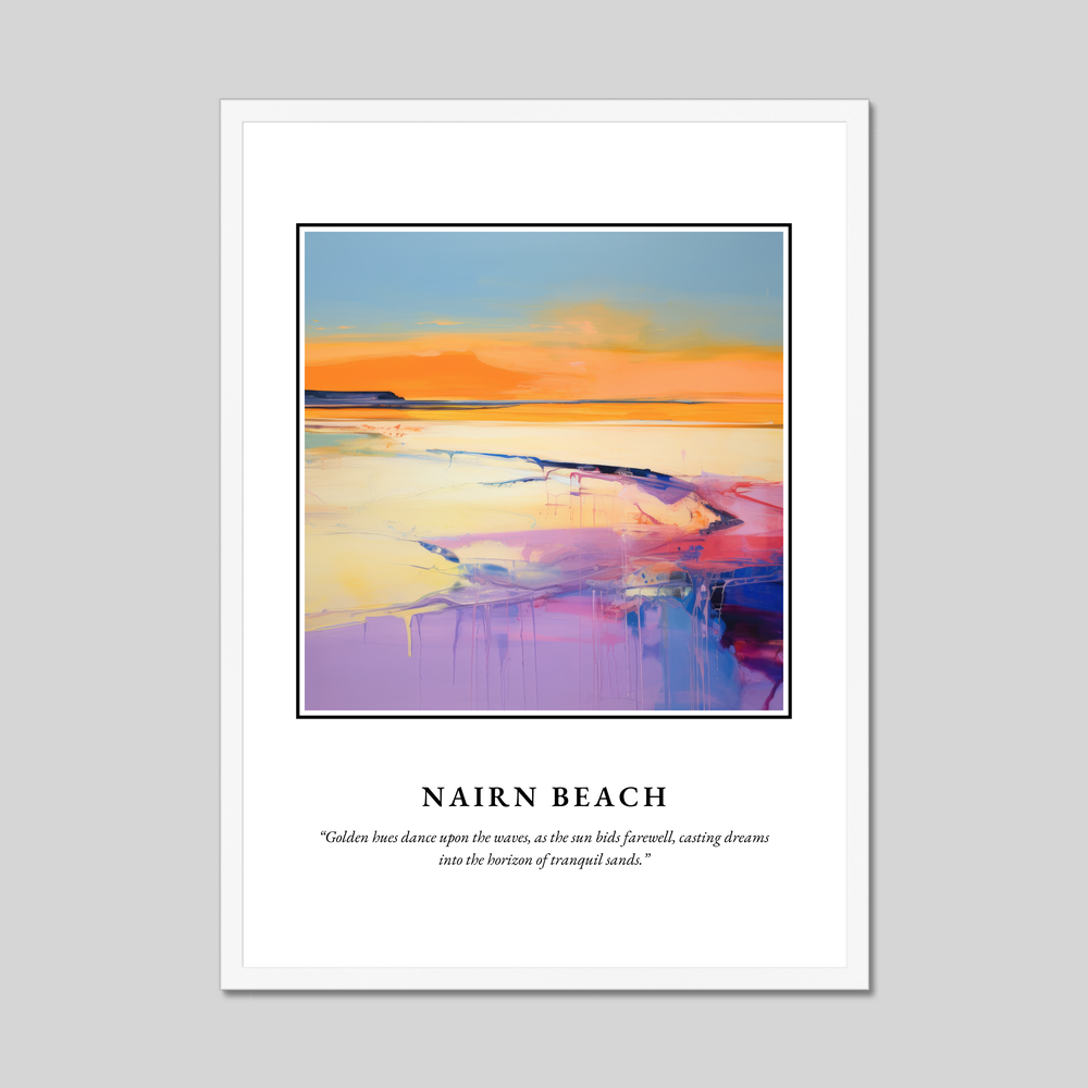 Nairn Beach is a jewel of the Scottish Highlands, renowned for its expansive golden sands and the peaceful rhythm of the Moray Firth. A beloved destination for both locals and travellers, this coastal haven offers stunning sunsets that paint the sky in vivid colours, much like our artwork depicts. Whether remembering a visit, dreaming of future travels, or simply seeking a connection to the Scottish landscape, this poster embodies the allure and tranquility that Nairn Beach so effortlessly provides.