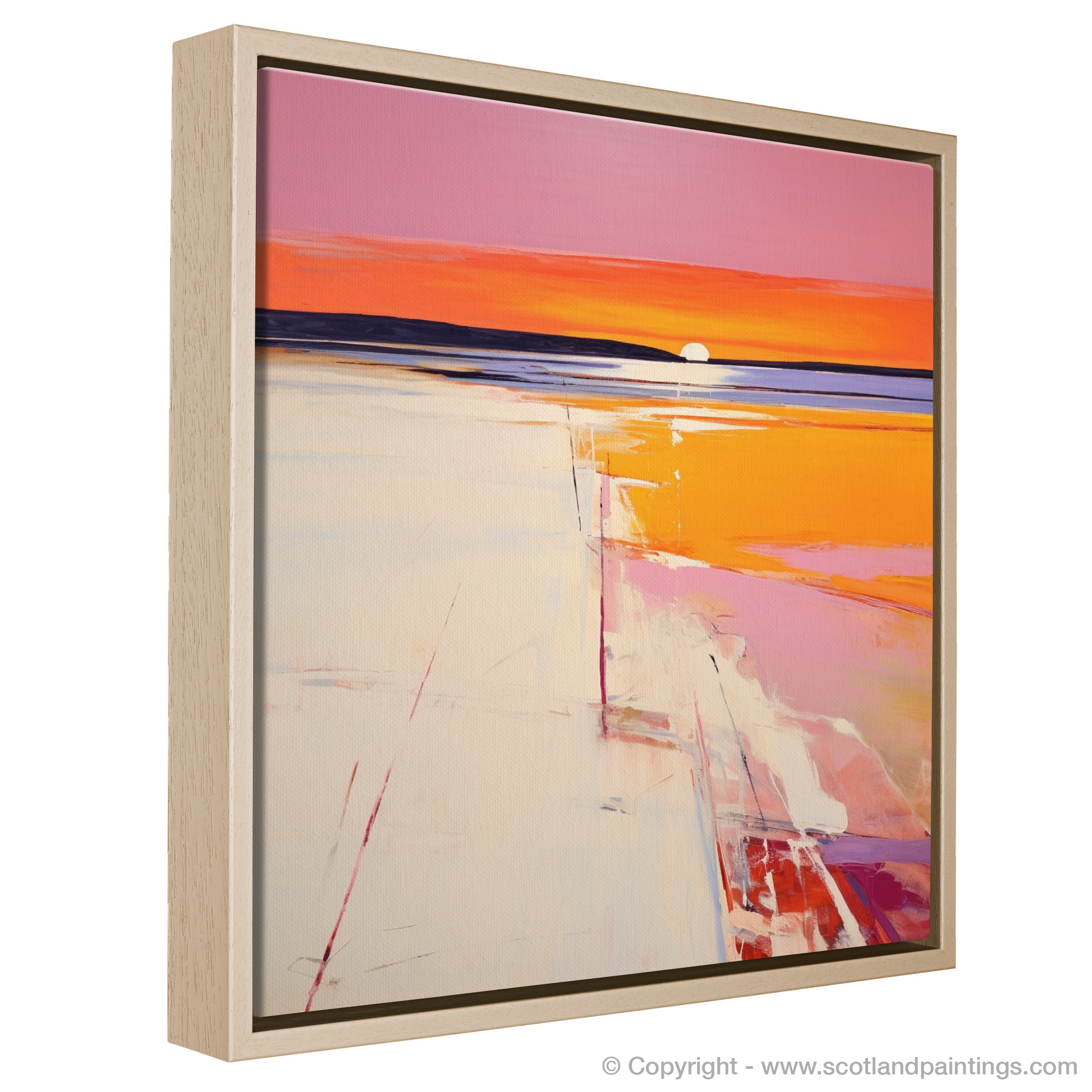 Immerse yourself in the serene beauty of Nairn Beach at sunset through this evocative print, a stunning addition to our 'Scottish Beaches' collection. Emulating the ethereal tranquillity of this beloved coastal setting, the artwork captures the essence of Color Field painting with its vast expanses of pure, flat colour.