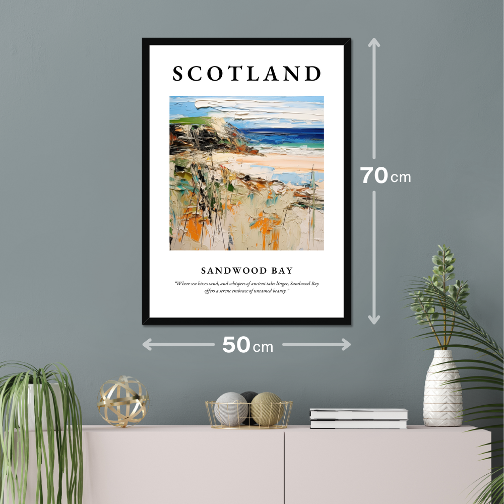 Bring a piece of Scotland's breathtaking coastline into your home with our stunning framed poster print, beautifully capturing the essence of Sandwood Bay. Measuring a generous 50cm x 70cm, this large artwork gracefully fills your wall space, offering a captivating focal point without the high price tag. Available in black, white, or a natural wood-effect frame to complement any decor, this piece is perfect for art lovers or anyone with a cherished connection to Scotland.