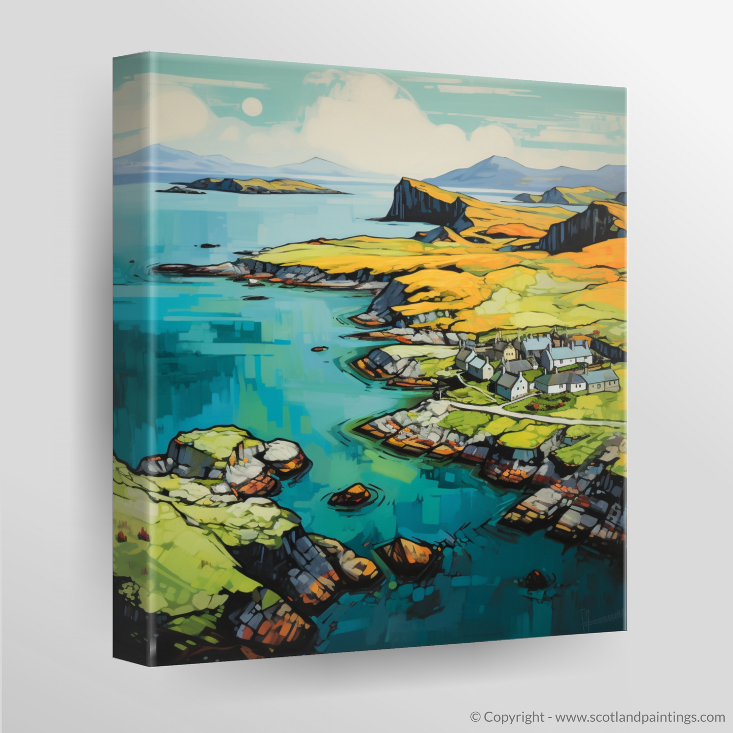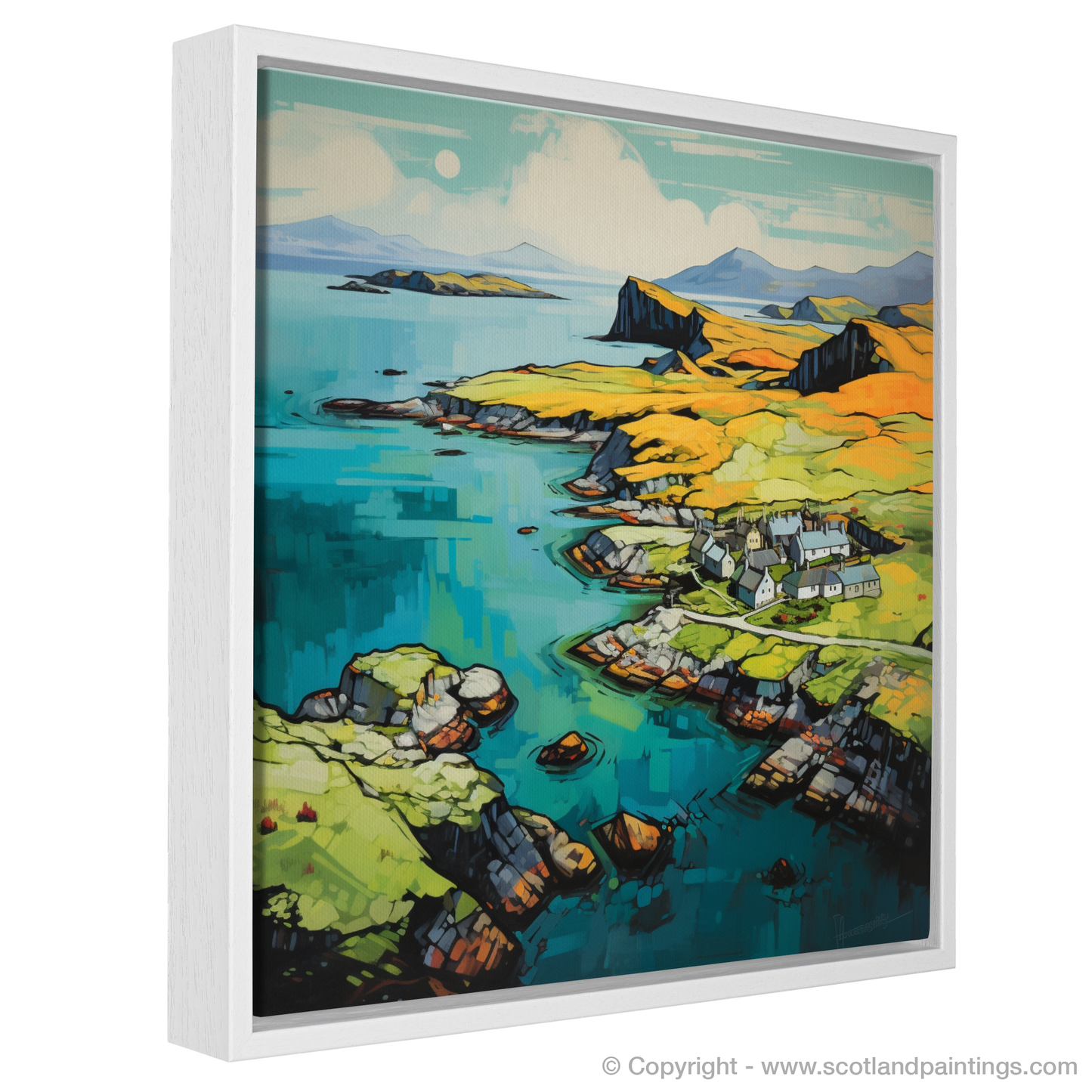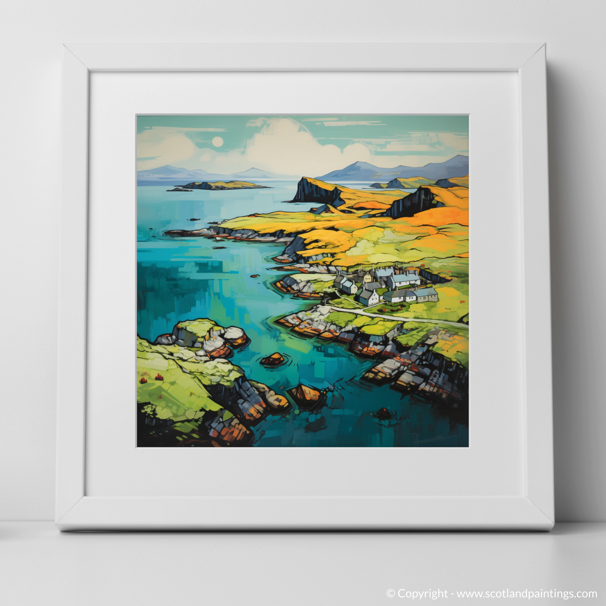 This print is an invitation to dream, allowing the observer to escape into the picturesque, pastoral tranquility of Scottish island life. Its captivating scenery and expressive, saturated colours make it an ideal piece to add warmth and vitality to any space. Bring a touch of the serene Scottish coastal landscape into your home, and let it whisk you away to the quaint charm of the Isle of Skye's smaller isles each time you gaze upon it.