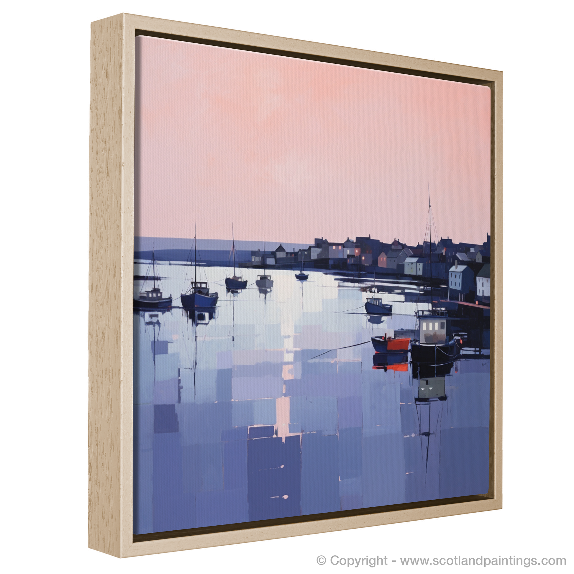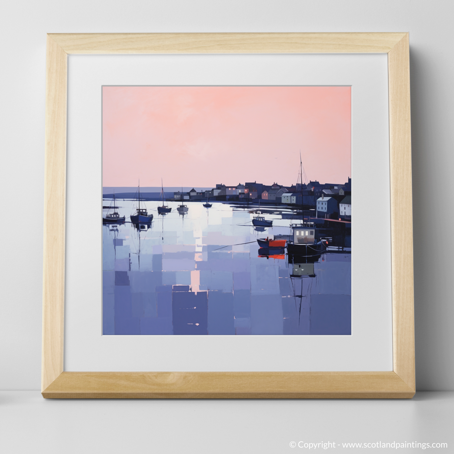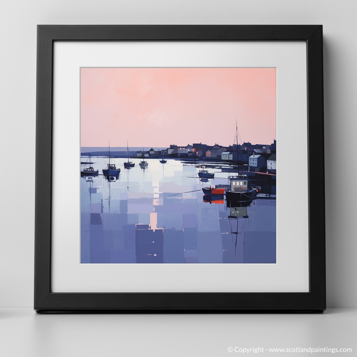 Immerse yourself in the serene tranquillity of a Scottish harbour at dusk with this elegantly minimalist print. Embodying the hushed beauty that descends as daylight fades, this piece captures Portmahomack Harbour's still waters mirroring the pastel hues of the twilight sky.