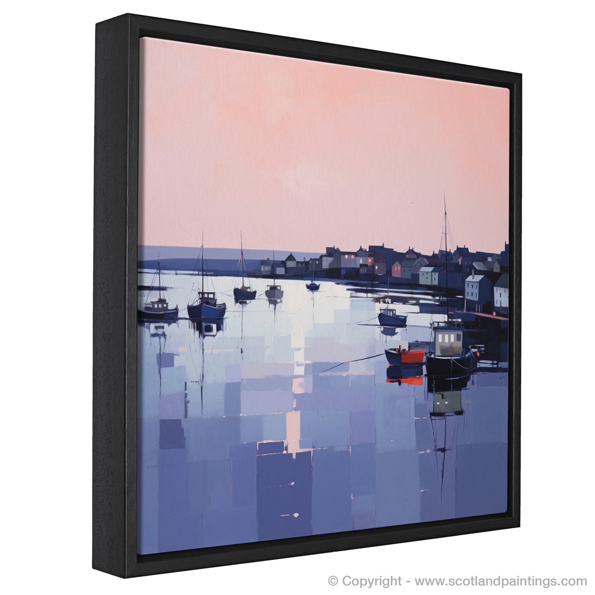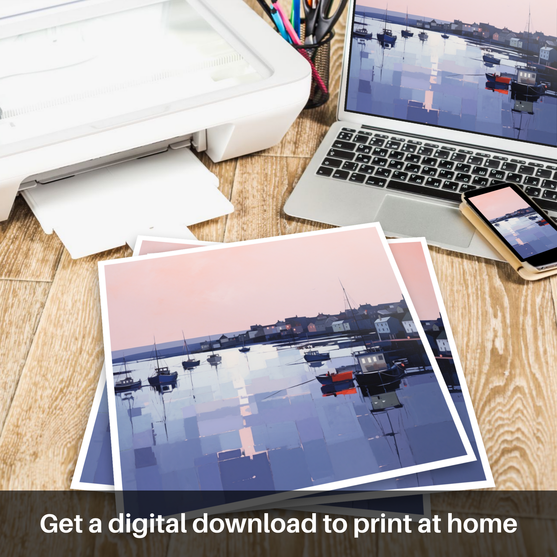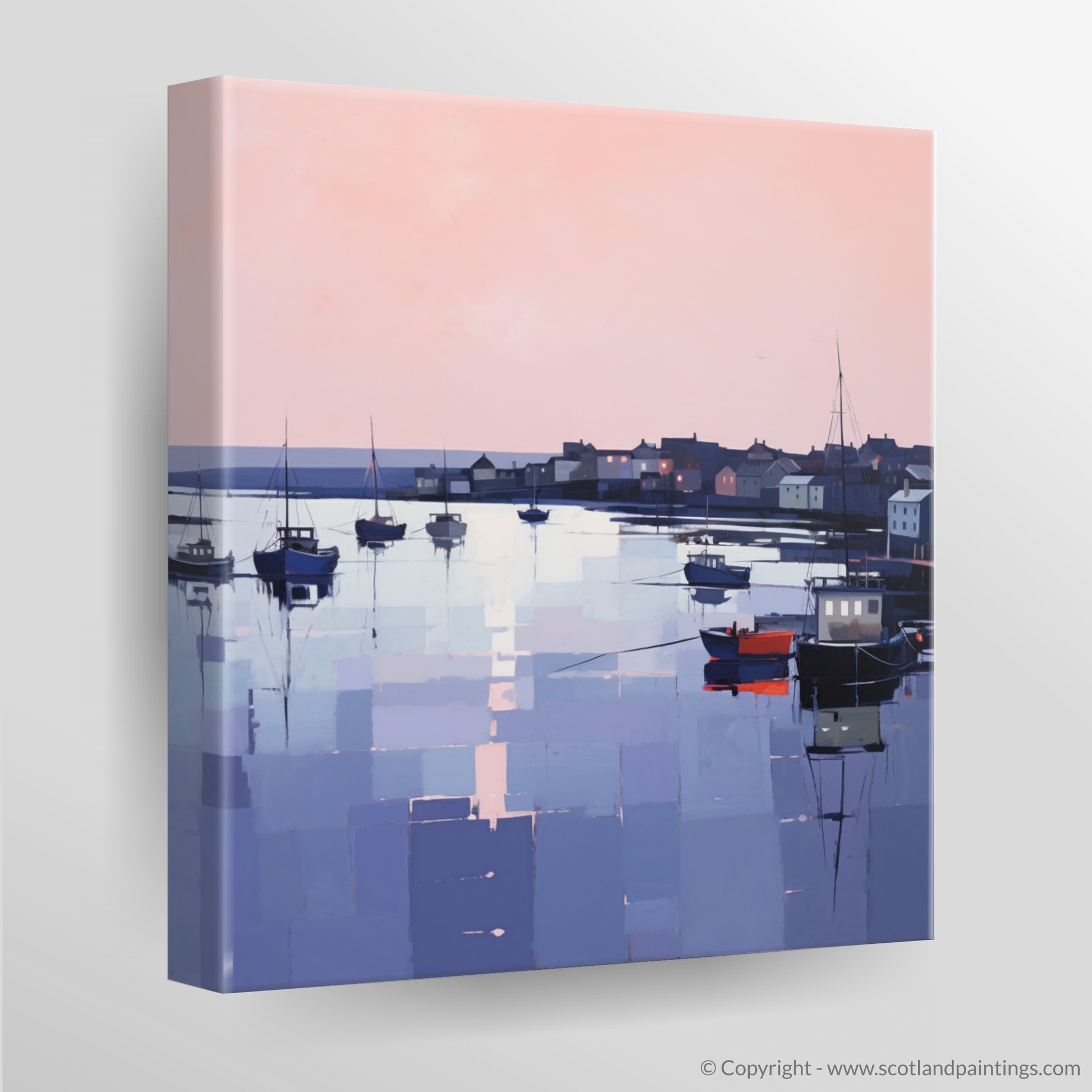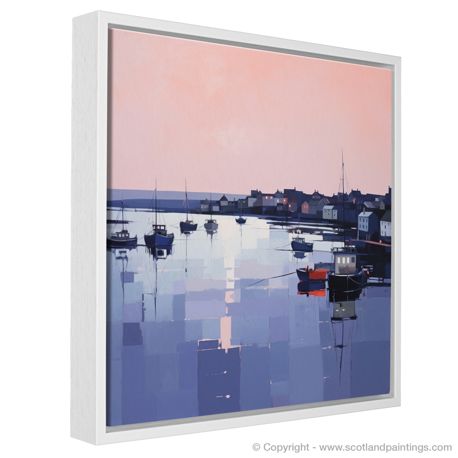 Immerse yourself in the serene tranquillity of a Scottish harbour at dusk with this elegantly minimalist print. Embodying the hushed beauty that descends as daylight fades, this piece captures Portmahomack Harbour's still waters mirroring the pastel hues of the twilight sky.