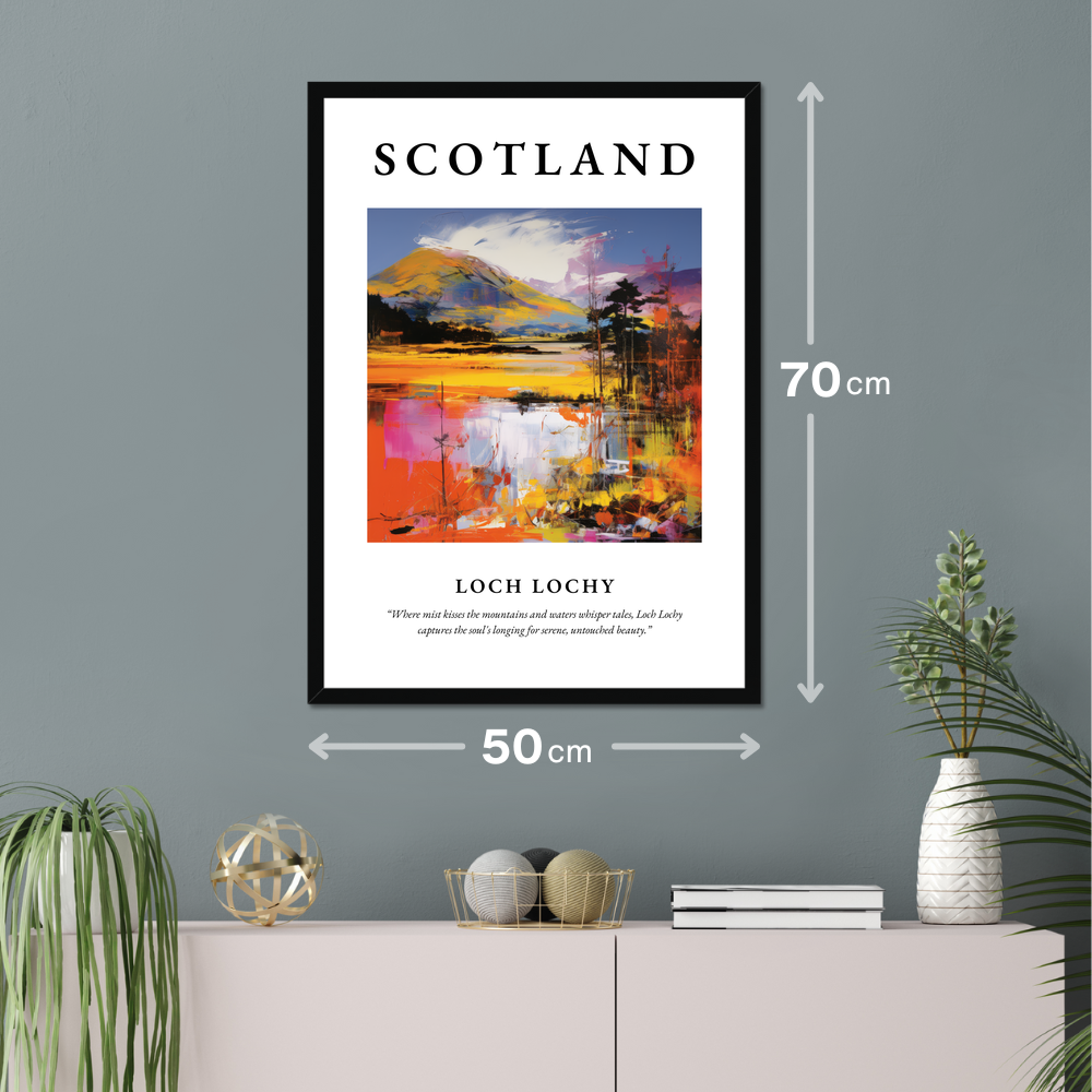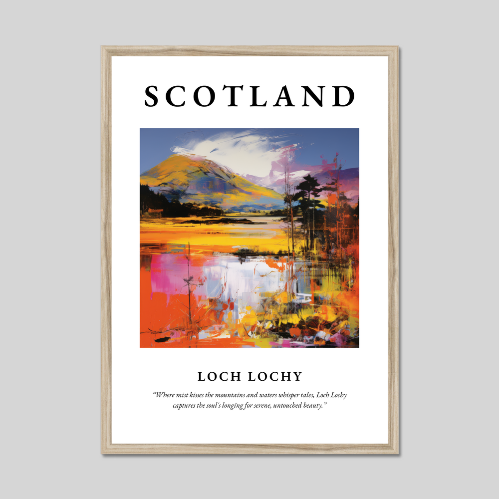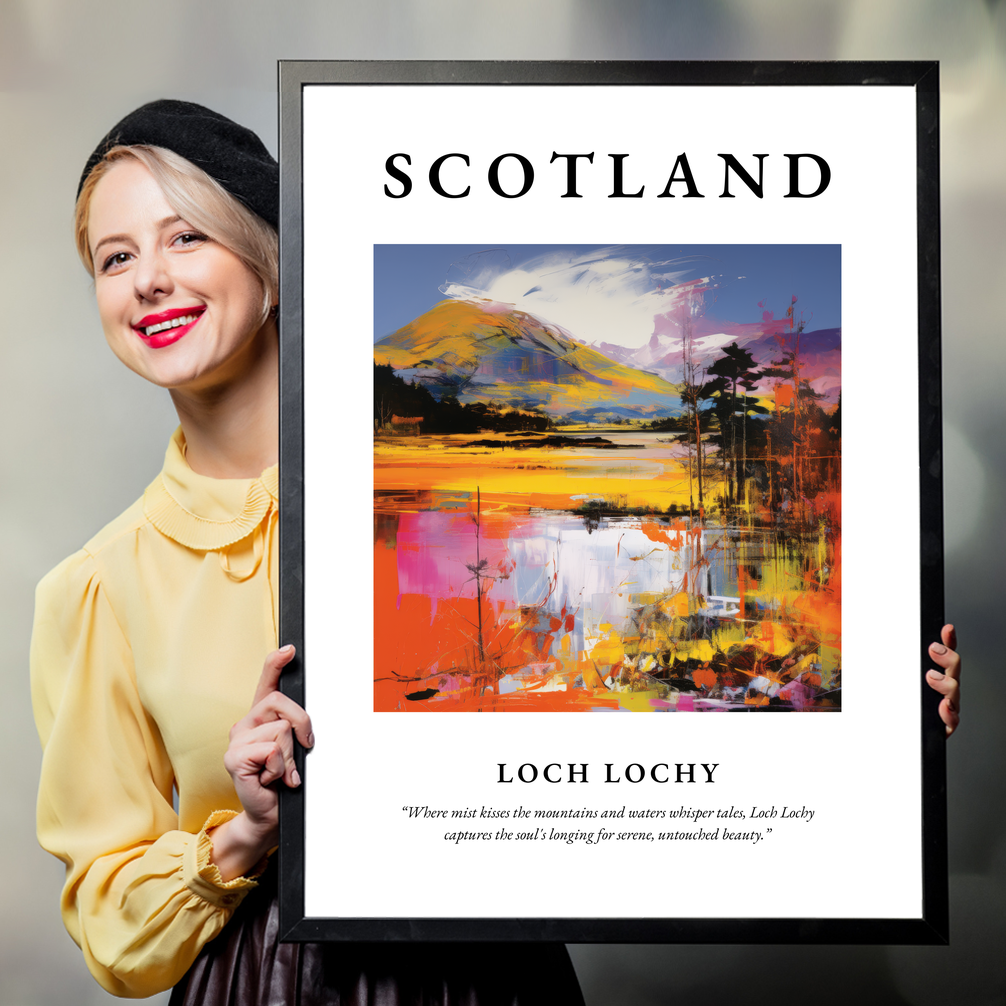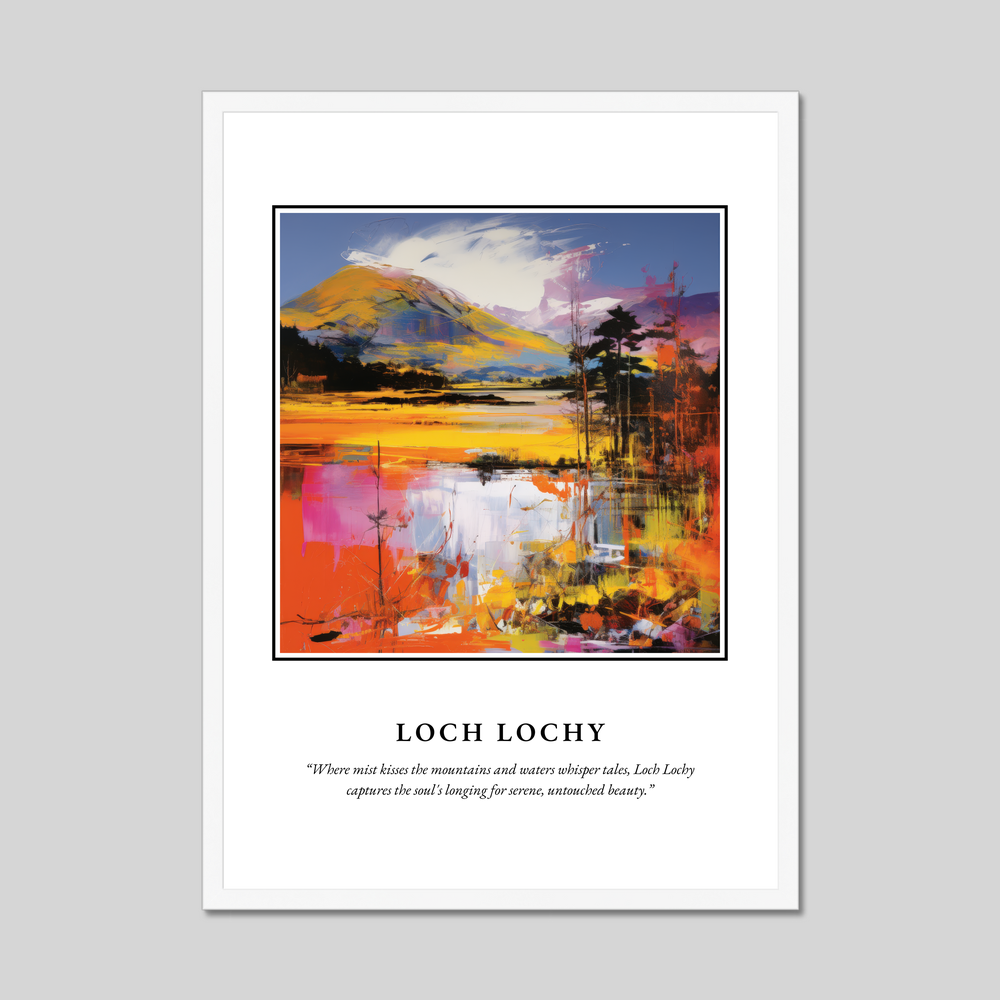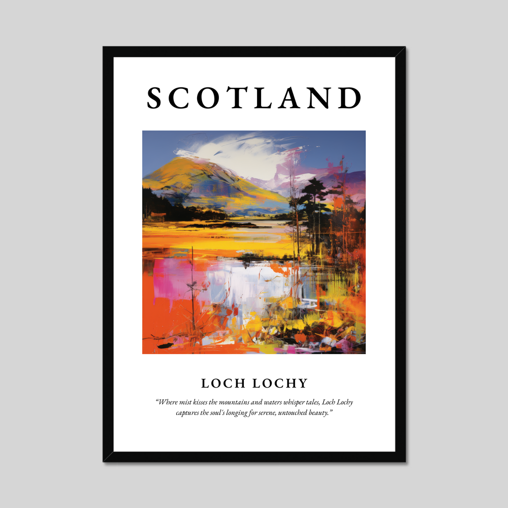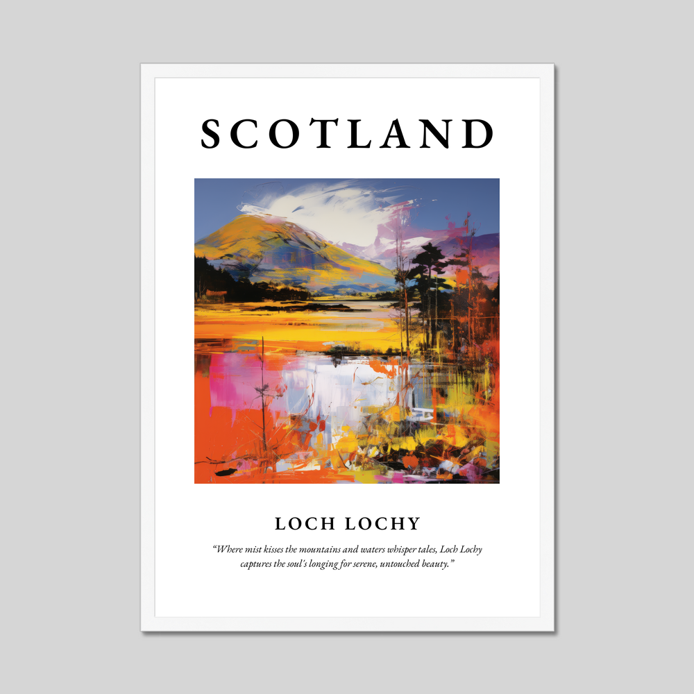 Adorning the top of the poster in bold, striking letters is “SCOTLAND”, setting the stage for the vibrant Pop Art depiction of Loch Lochy below. This artwork bursts with colour, capturing the dynamic interplay of light and landscape. The bold brush strokes and vivid hues reimagine the loch's tranquil setting, while below, the quote “Where mist kisses the mountains and waters whisper tales, Loch Lochy captures the soul's longing for serene, untouched beauty.” provides a poetic touch to inspire wanderlust and serenity. Perfect for art aficionados, Pop Art lovers, or those with a connection to Scotland, this print makes a stunning addition to any home.