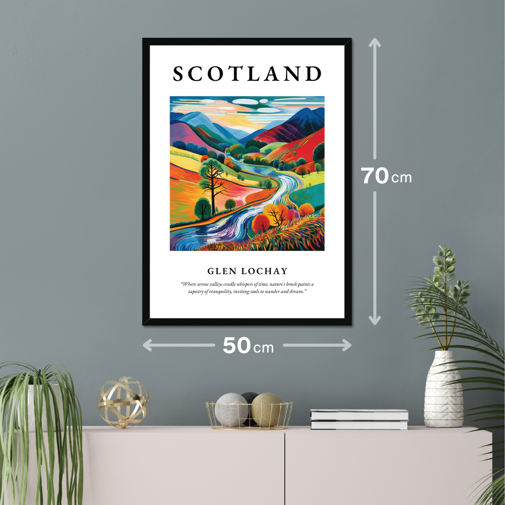 Bring the enchanting beauty of Scotland into your home with this striking Pop Art style poster, featuring the captivating Glen Lochay. Measuring an impressive 50cm x 70cm, this framed print offers a bold statement for any wall without stretching your budget.
