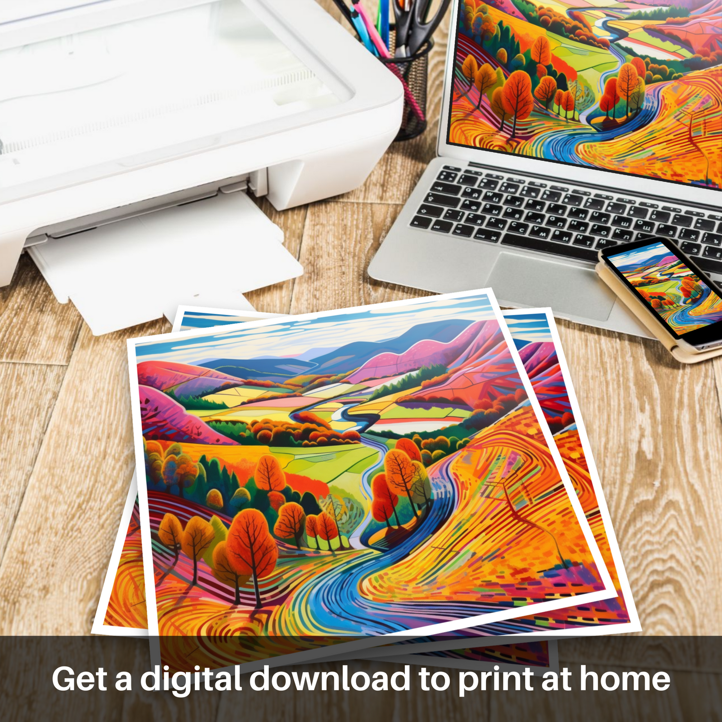 Immerse yourself in the vibrant spectacle of nature with this captivating print, a contemporary take on the picturesque Glen Lochay in Perthshire. Bold, abstract elements and a kaleidoscope of colours bring this Scottish landscape to life with a dynamic and refreshing pop art twist.