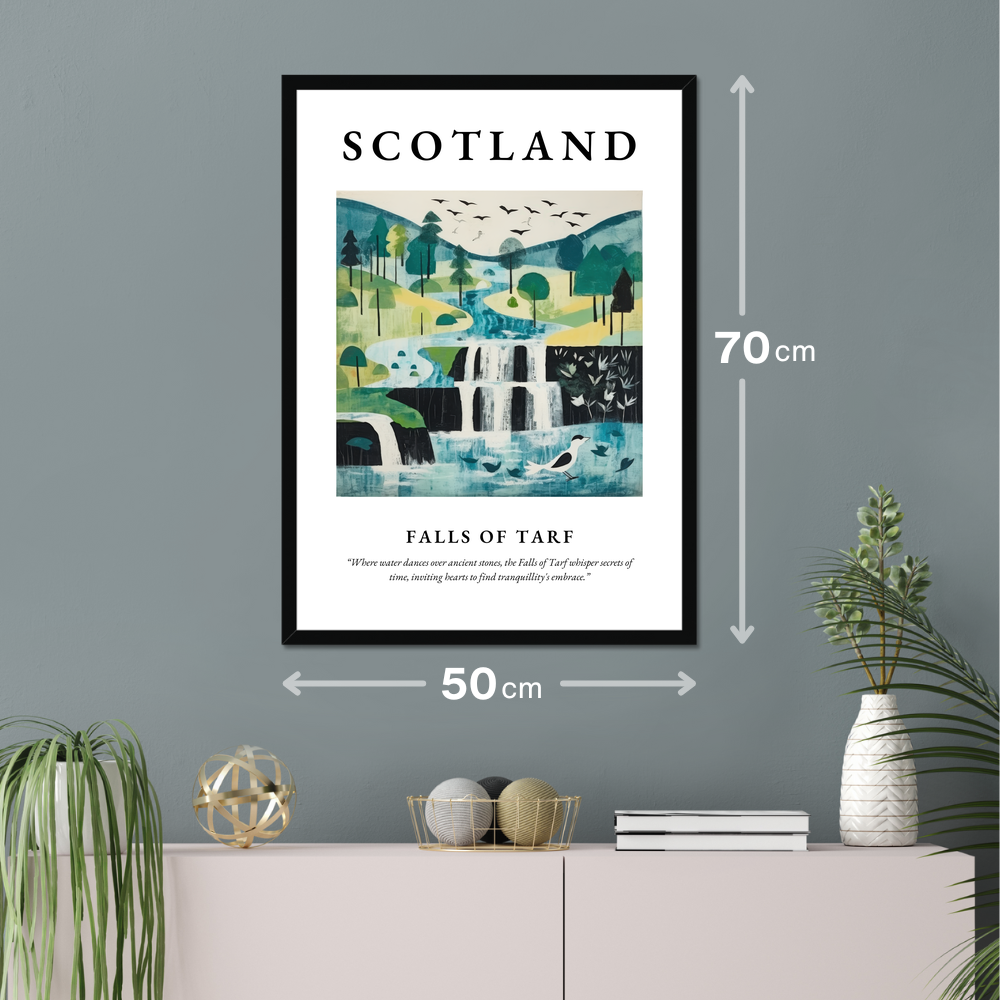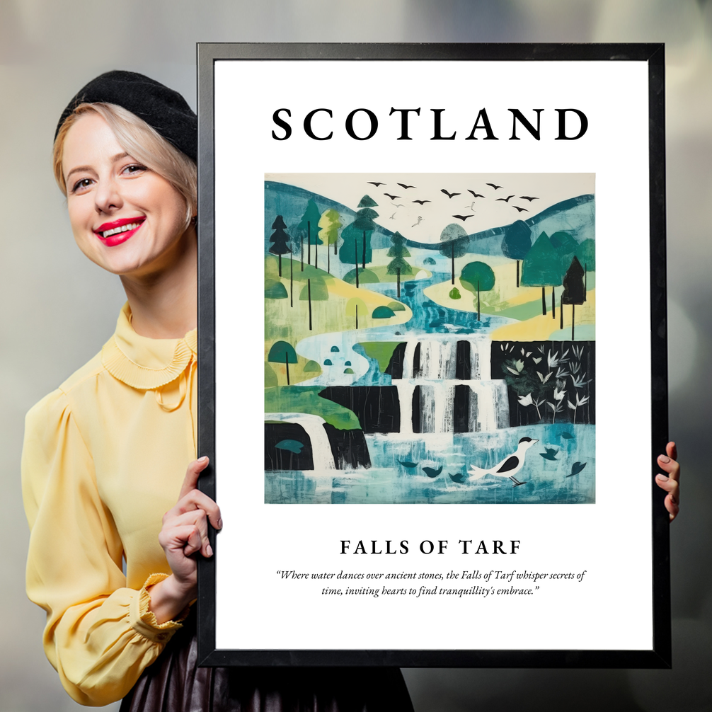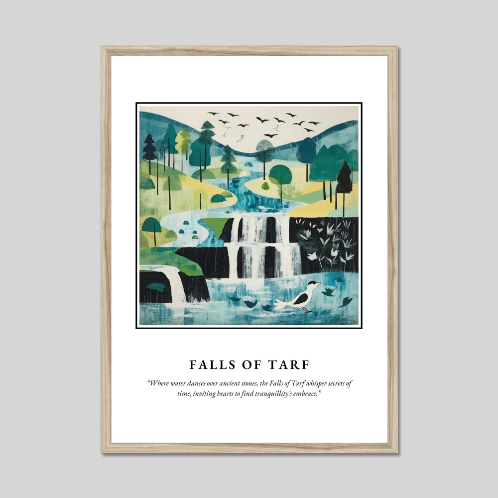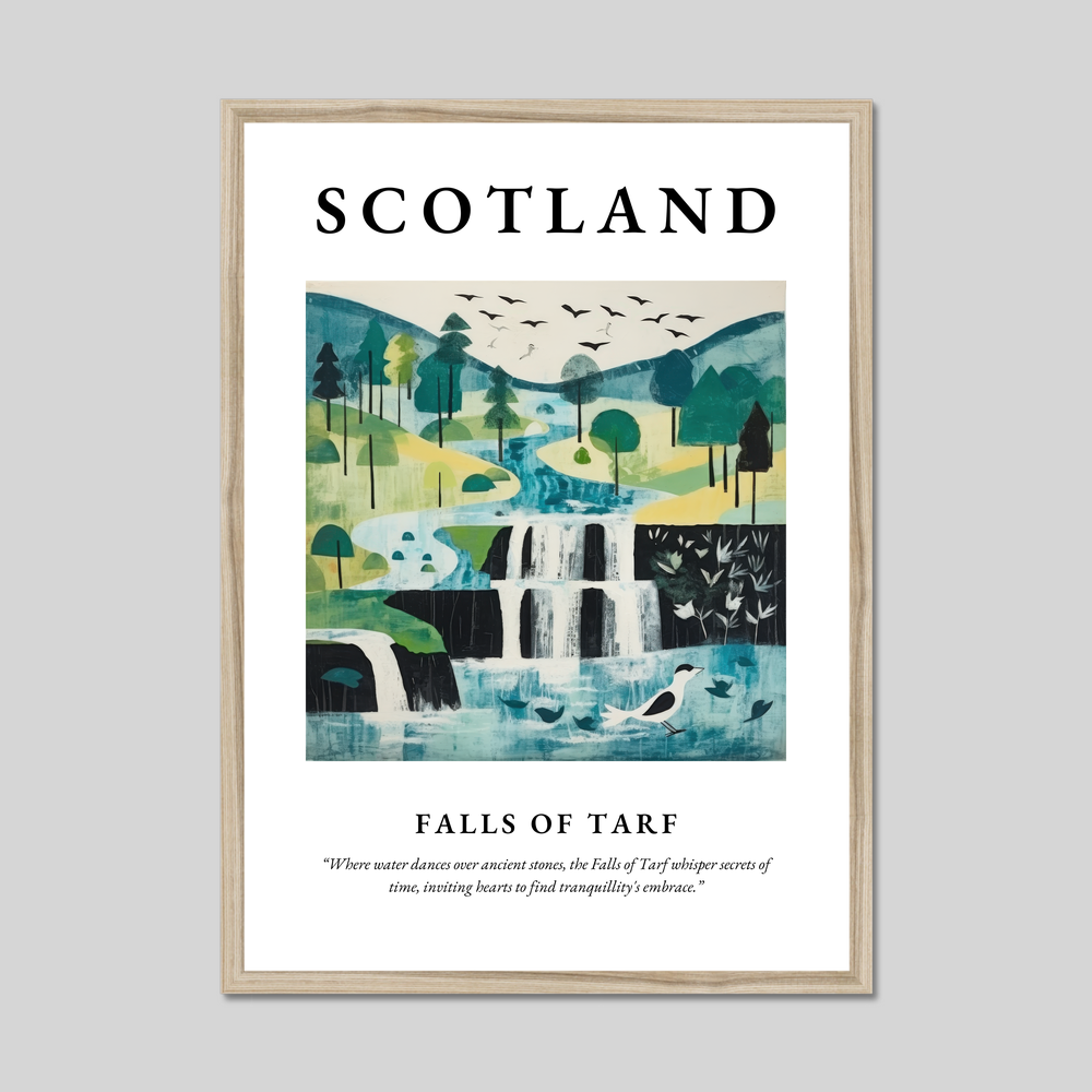 Complementing the visual, the thoughtful quote at the bottom invites viewers to lose themselves in tranquillity: “Where water dances over ancient stones, the Falls of Tarf whisper secrets of time, inviting hearts to find tranquillity's embrace.” This piece is perfect for anyone who loves art, has visited Scotland, or treasures a connection to this picturesque region.