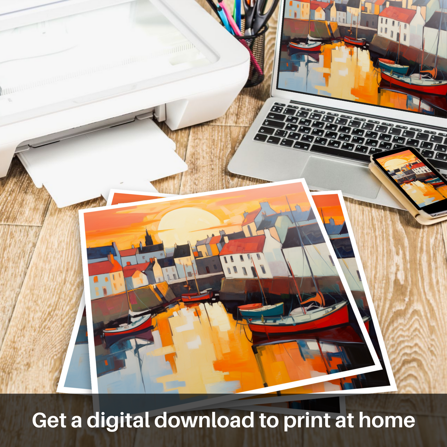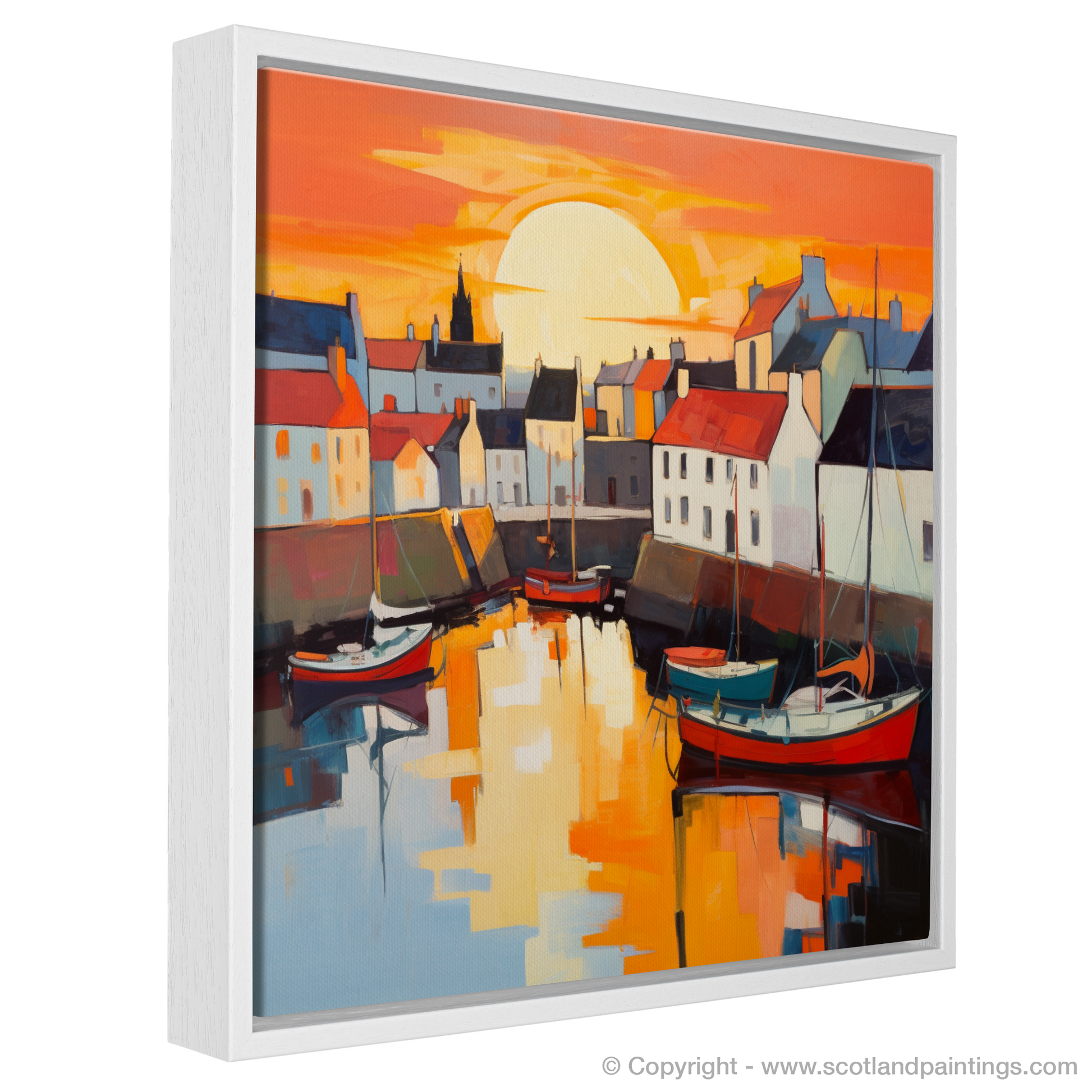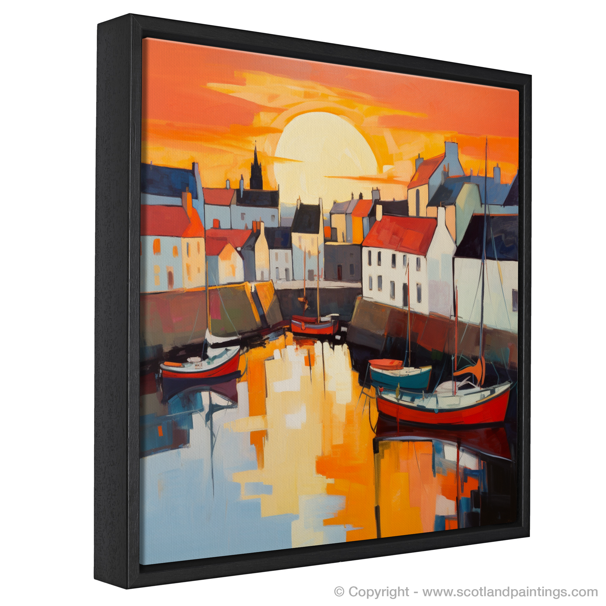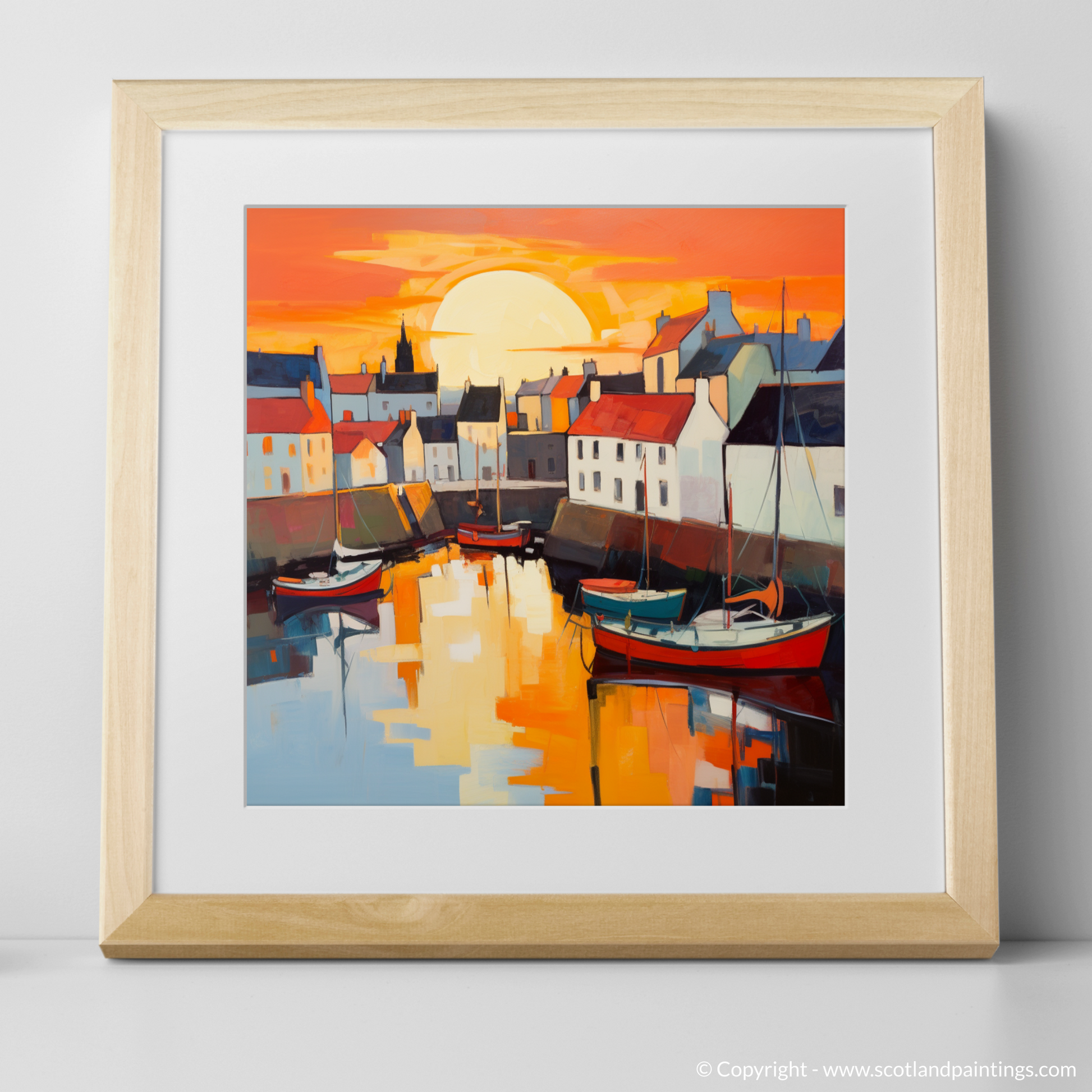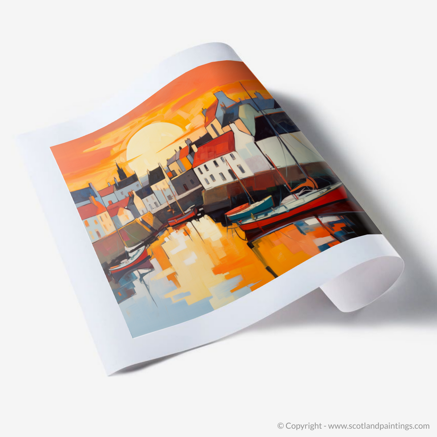 This piece is not just a mere depiction of a location, but an invitation to immerse oneself in the captivating atmosphere of a Scottish harbour at dusk. It is a testament to the enchanting allure of Scotland's coastal enclaves and a tribute to the moment when day transitions into night, leaving the world awash with colour and tranquillity.