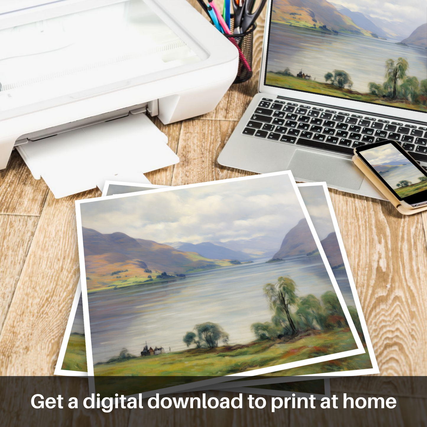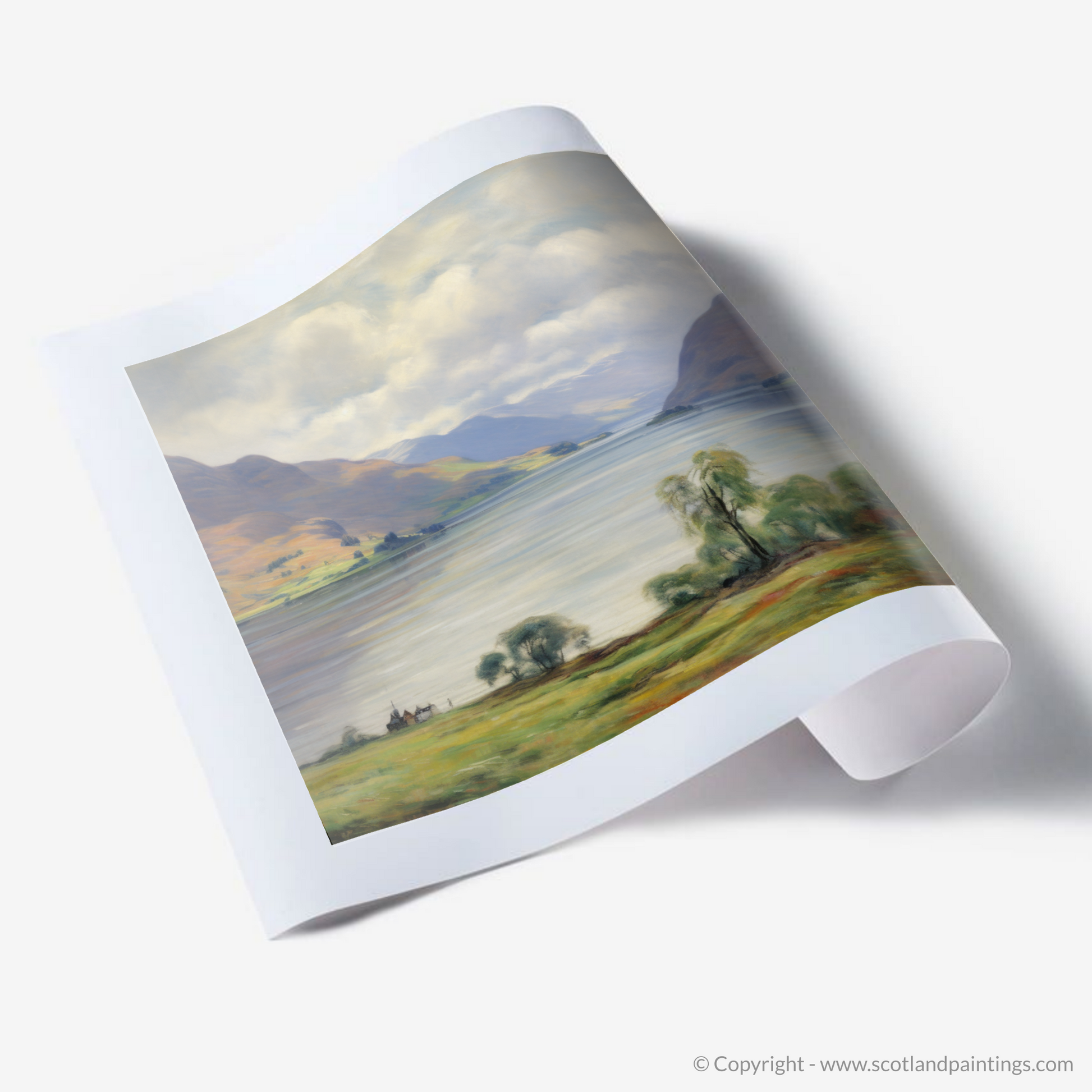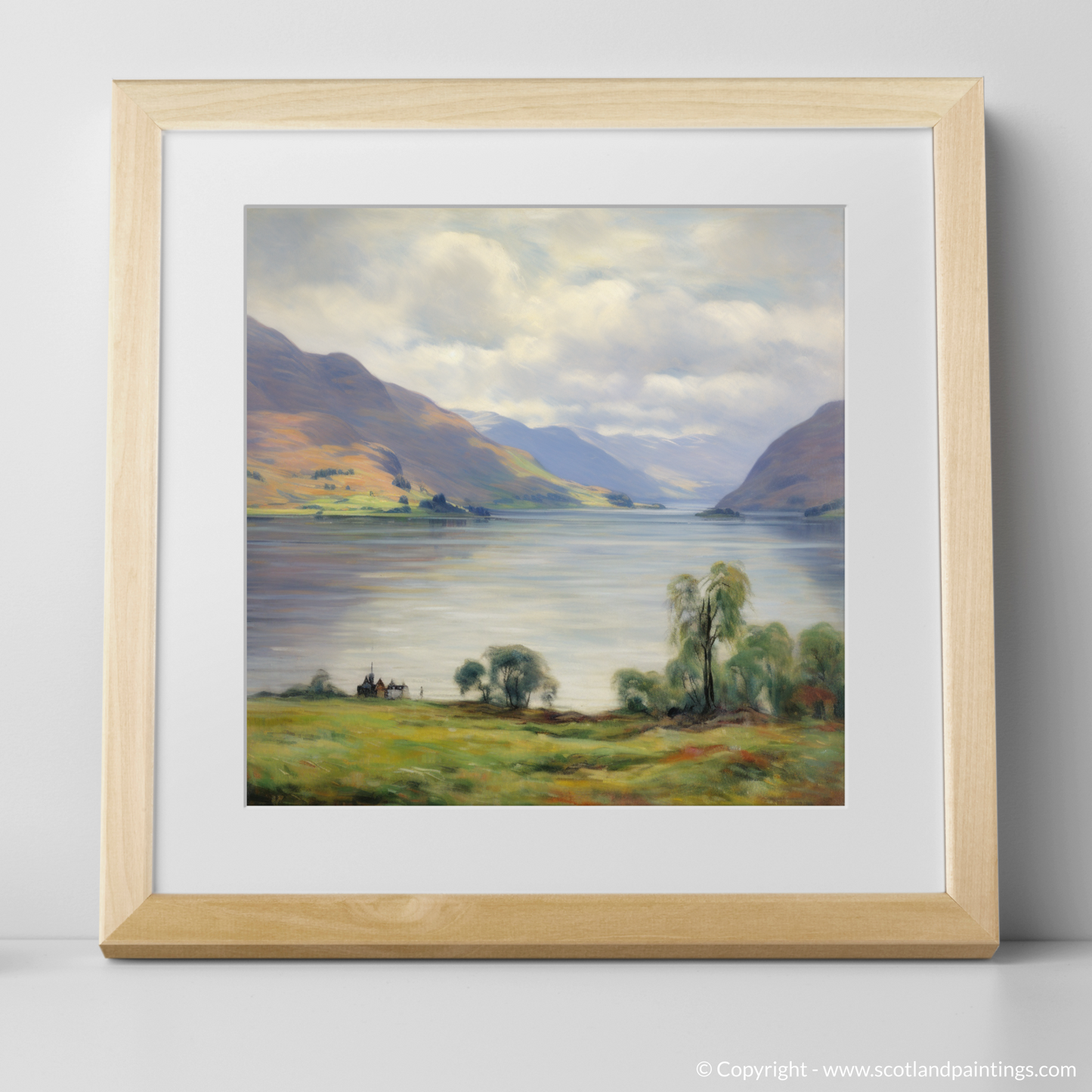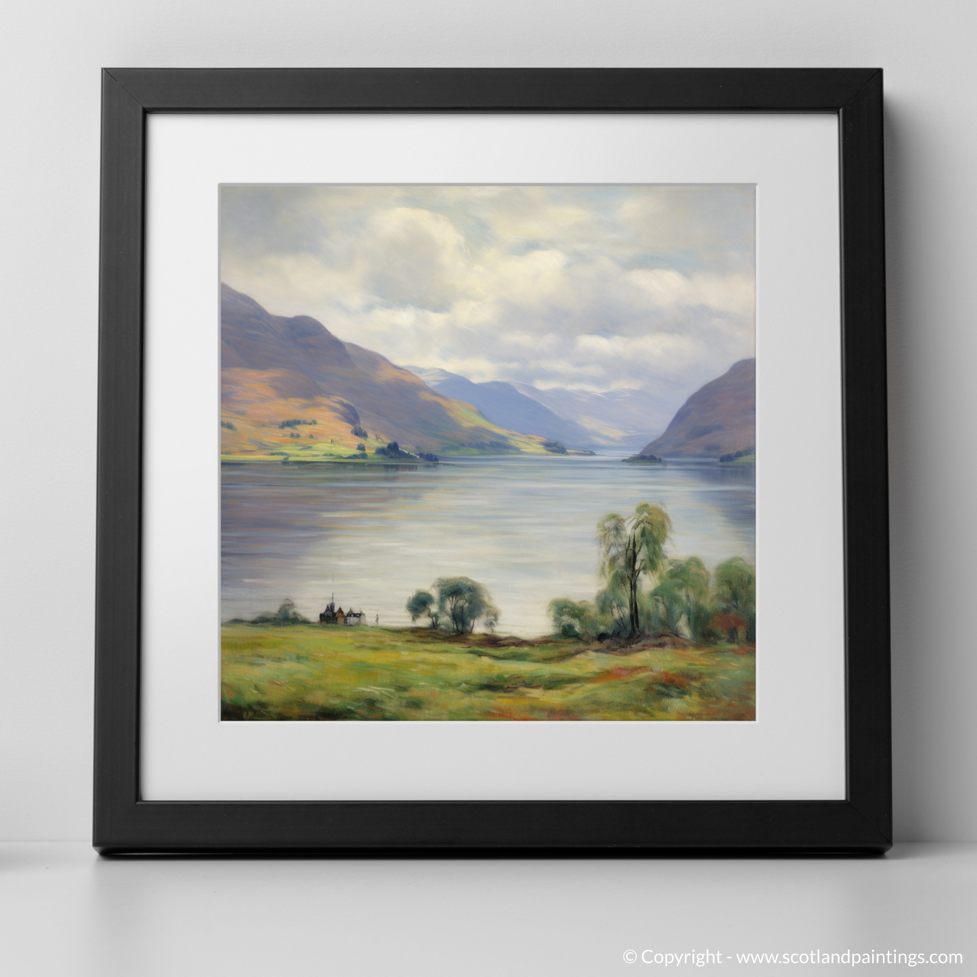 Each brushstroke conveys a sense of place, a moment in time where nature's grandeur is revealed in a symphony of colour, inviting contemplation and evoking a sense of peaceful isolation. This print is a treasure for any admirer of the Scottish lochs, conveying both the tranquillity and the sublime beauty that can only be found within these ancient lands. Add this captivating scene to your collection and let the timeless allure of the Highlands grace your space.