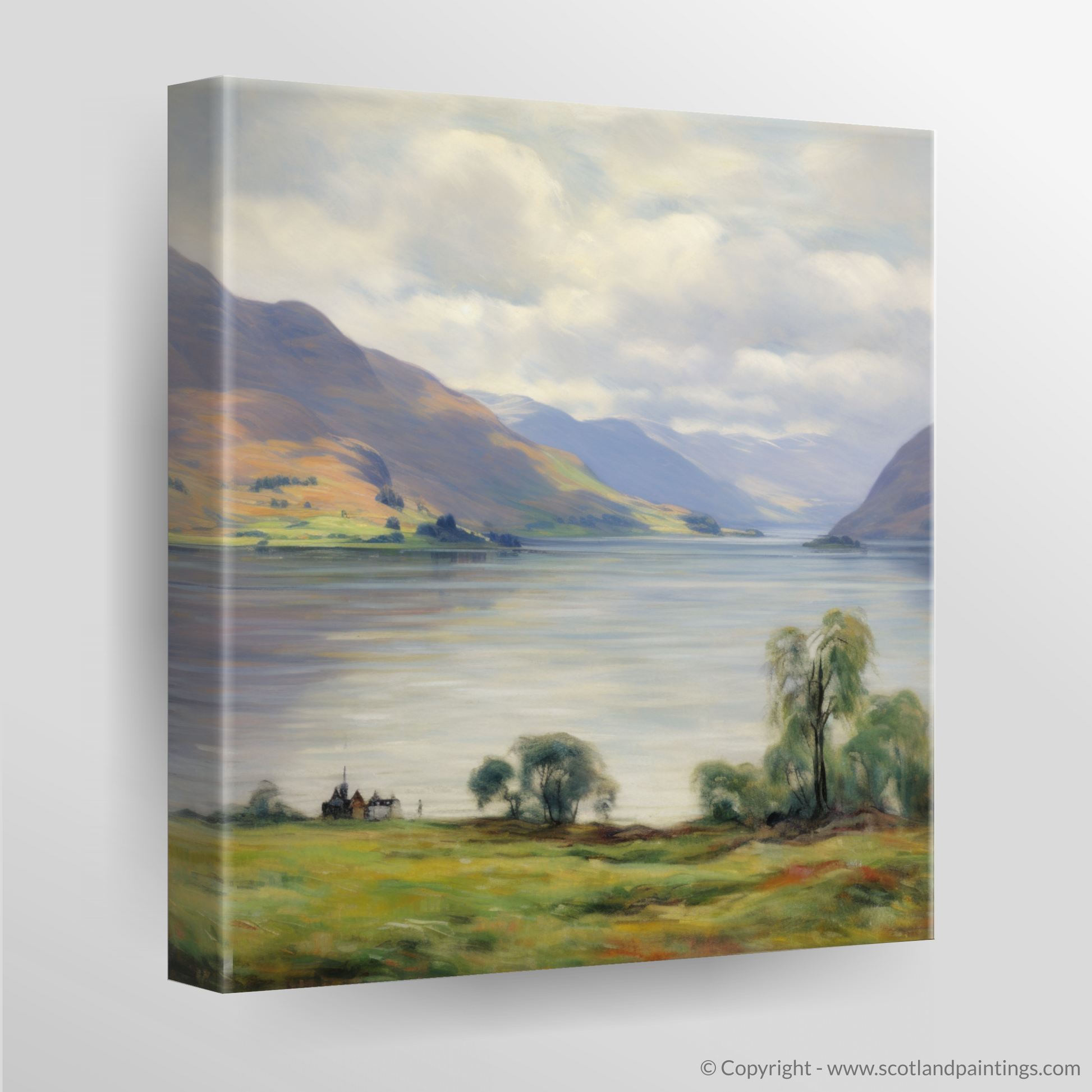 Immerse yourself in the serene beauty of the Scottish Highlands with this exquisite print inspired by Loch Linnhe. The artwork summons the spirit of Impressionism, capturing the idyllic landscape with a soulful blend of form and colour that seems to dances across the canvas.