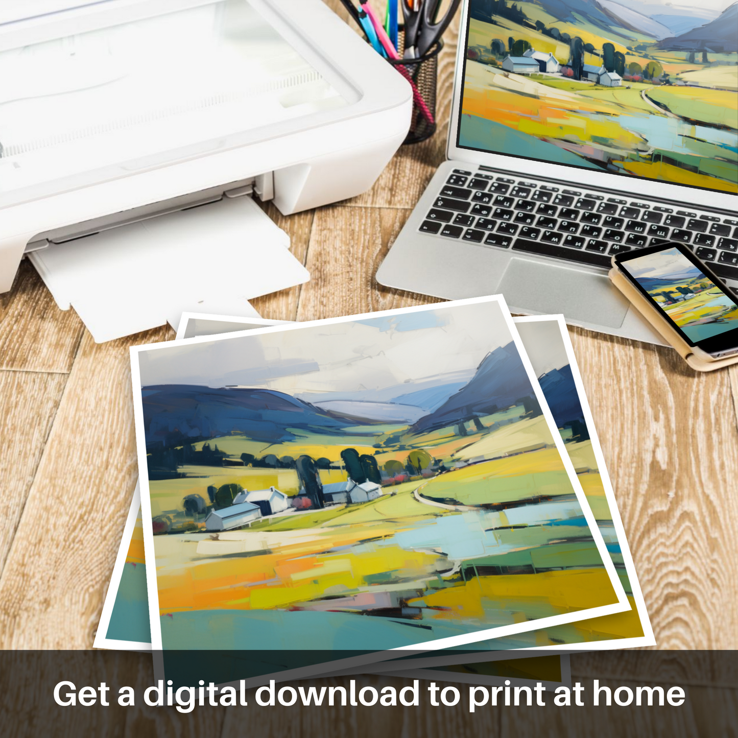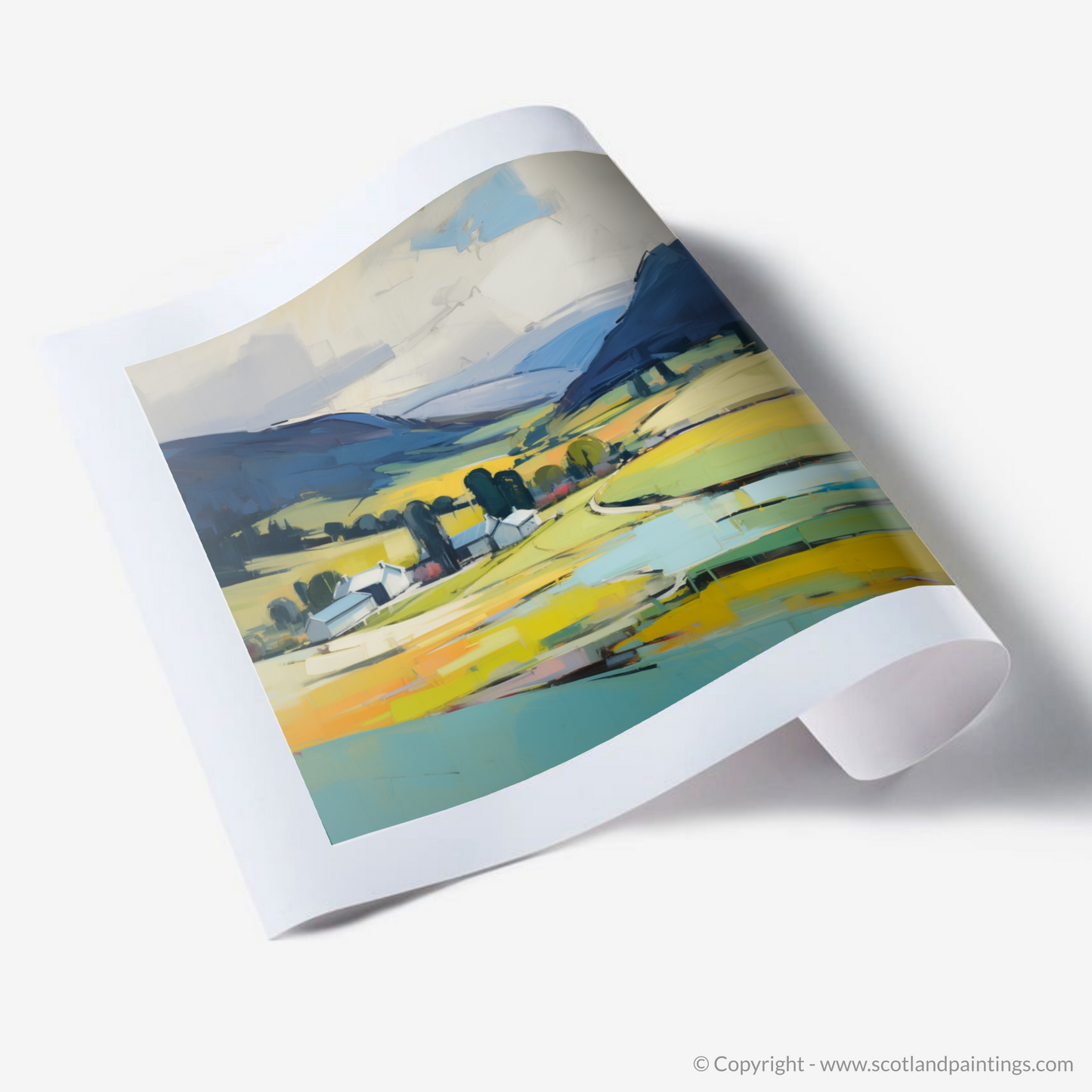 Capturing the serene beauty of Glen Lyon, Perthshire, this evocative contemporary print transports the viewer to the heart of Scotland's breathtaking landscapes. In this piece, a vibrant tapestry of colours dances across the canvas, reflecting the natural radiance and varied hues of the Glen.