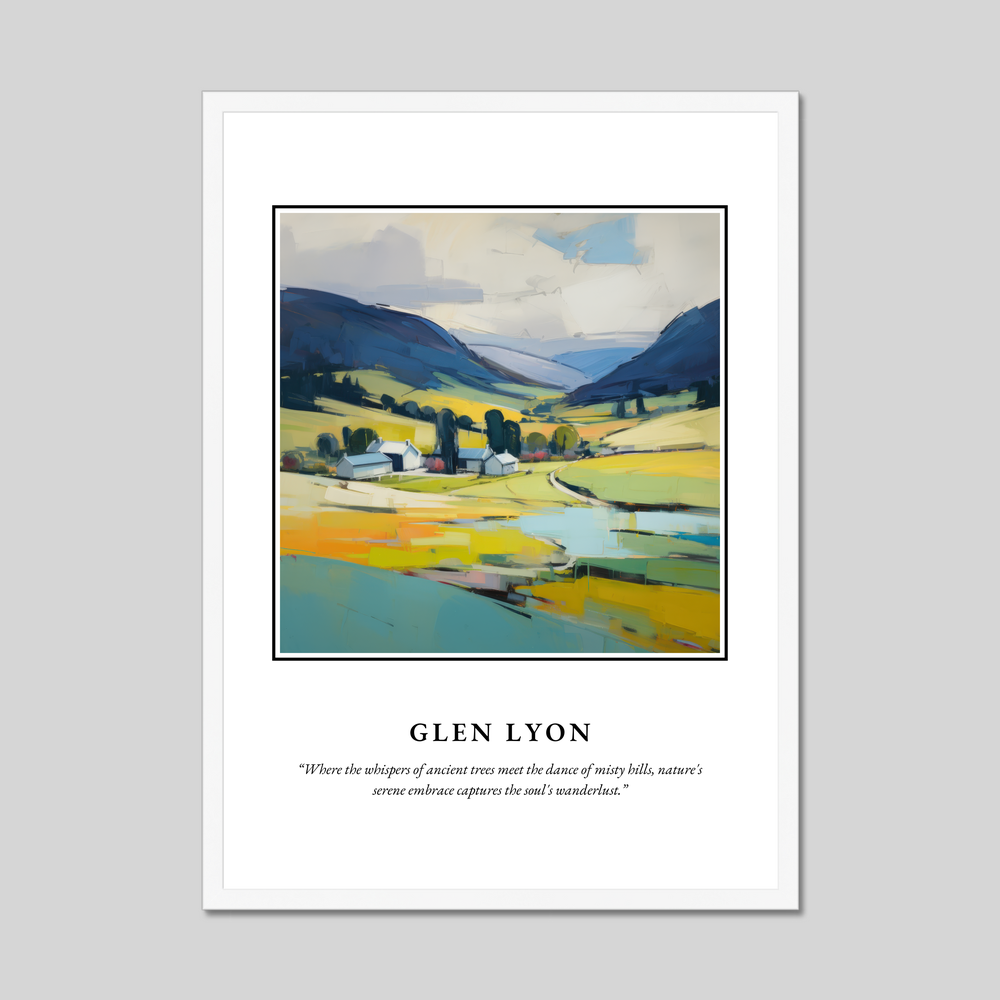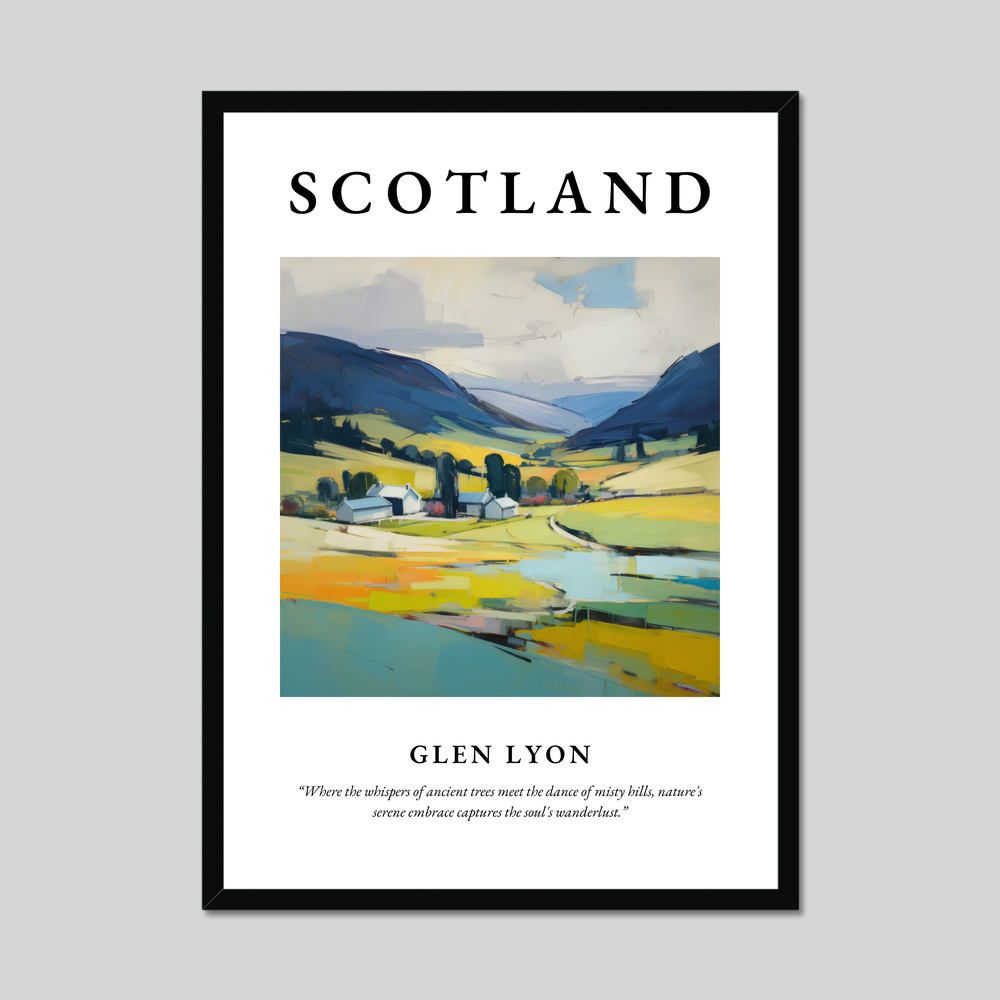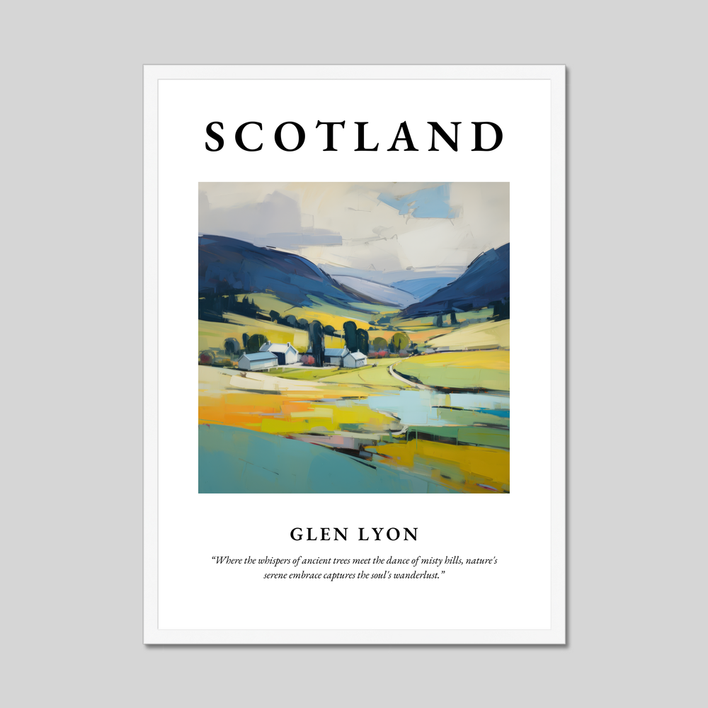 Glen Lyon, often celebrated as one of Scotland’s most picturesque glens, is steeped in history and allure. Stretching through the Highlands, it offers an idyllic setting that has inspired poets, wanderers, and artists alike. Known as the 'longest, loneliest and loveliest glen in Scotland,’ it is a haven for walkers seeking seclusion amidst breathtaking scenery. Our poster captures this enchanting beauty, allowing you to bring a piece of Scotland's majestic landscape into your home.