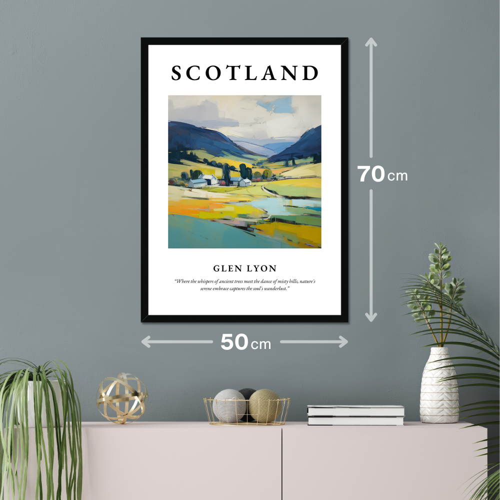 Elevate your living space with our stunning framed poster print, capturing the enchanting beauty of Glen Lyon in Scotland. Measuring an impressive 50cm x 70cm, this statement piece is designed to transform any room without demanding a hefty investment. Available in elegant black, classic white, or a natural wood-effect frame, this versatile artwork seamlessly fits into a variety of decors.