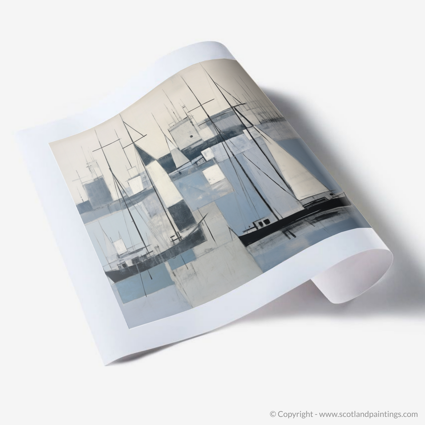 With an evocative essence of tranquility, this minimalist interpretation captures the serene atmosphere of Dunbar Harbour, located on the picturesque coast of East Lothian. The artwork, part of our esteemed 'Scottish Harbours' collection, conveys the maritime simplicity through a harmonious palette of muted blues, greys, and whites.