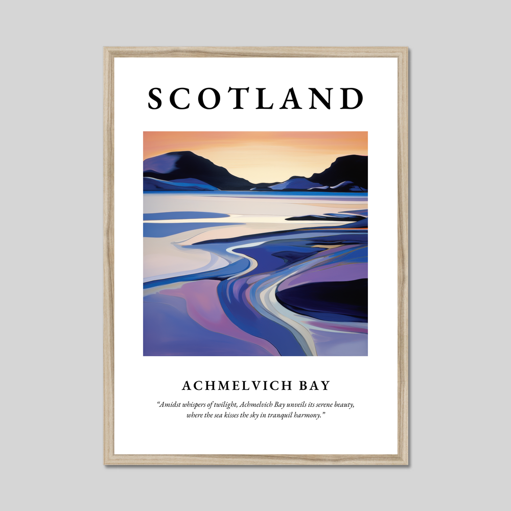 Bring the serene beauty of Scotland into your home with our captivating Achmelvich Bay framed poster print. Measuring an impressive 50cm x 70cm, this piece encompasses the vastness of the Scottish landscape and the tranquillity of its beaches. Choose from black, white, or natural wood-effect frames to perfectly complement your decor.