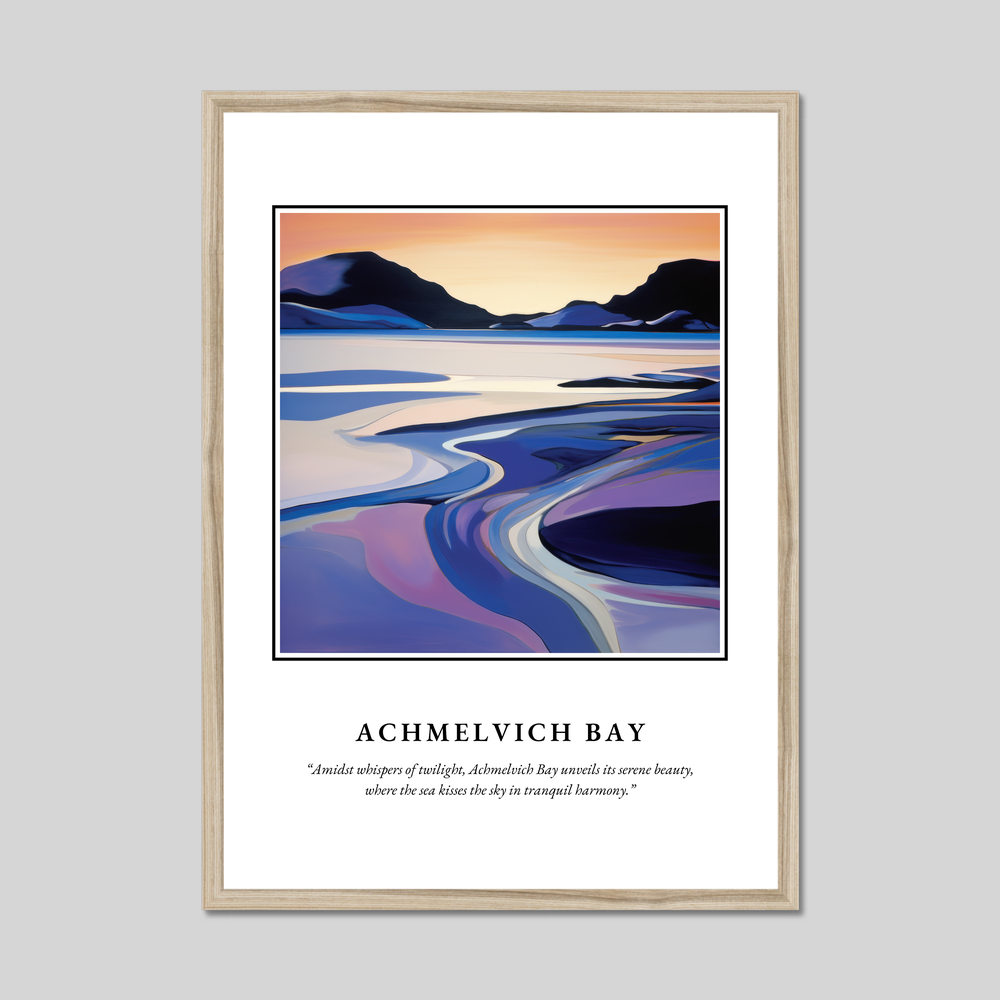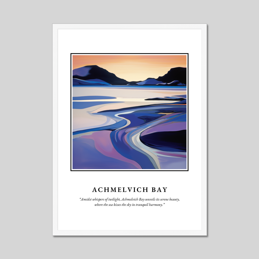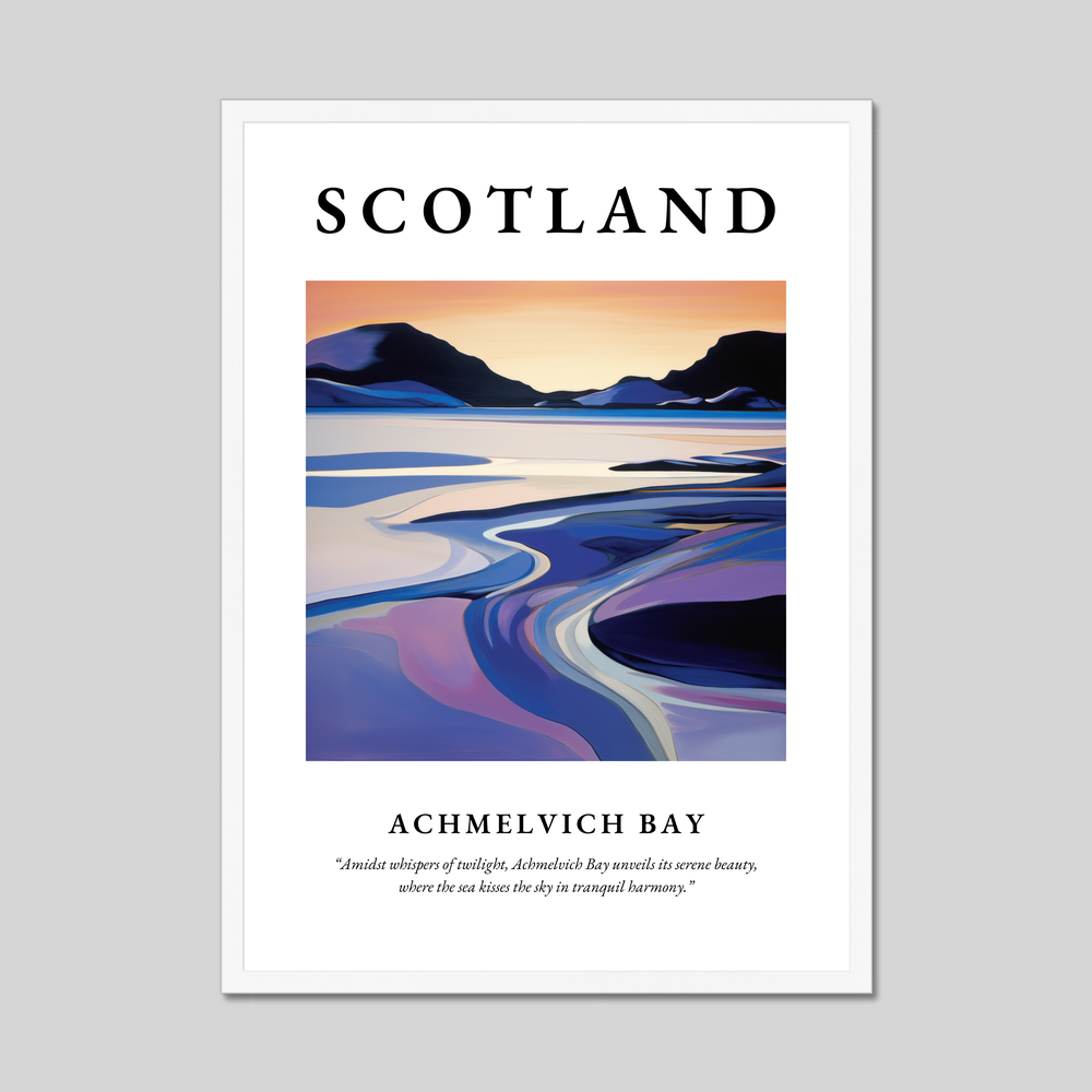 Our framed print magnificently echoes the ethereal beauty of Achmelvich Bay, capturing the essence of the landscape in a modern and artistic way. Whether you've walked its golden sands, admired its stunning sunsets, or simply yearned for a taste of Scotland's unspoiled coastlines, this artwork will transport you there, day after day.