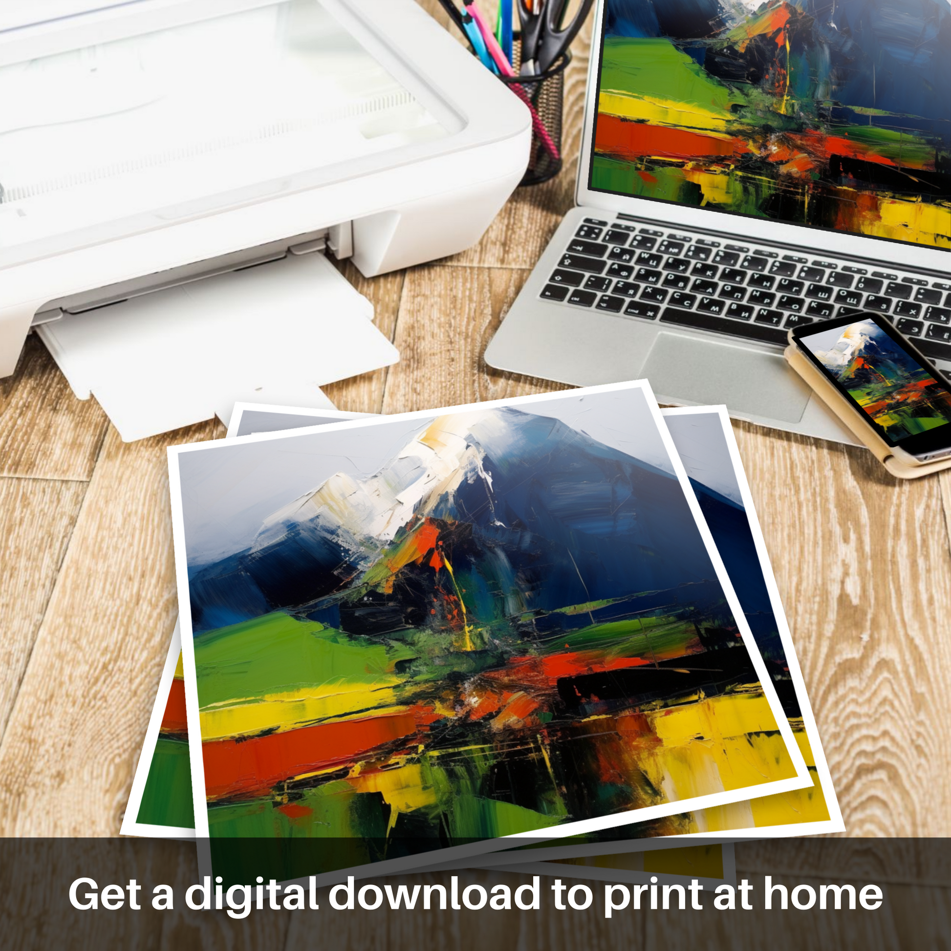 Let the wild and untamed beauty of Scotland's highest peak whisk you away to a world of abstract wonder with this evocative print from our 'Scottish Mountains' collection. A dynamic homage to Ben Nevis, it radiates an essence of the Highlands, distilled through the lens of Abstract Expressionism.