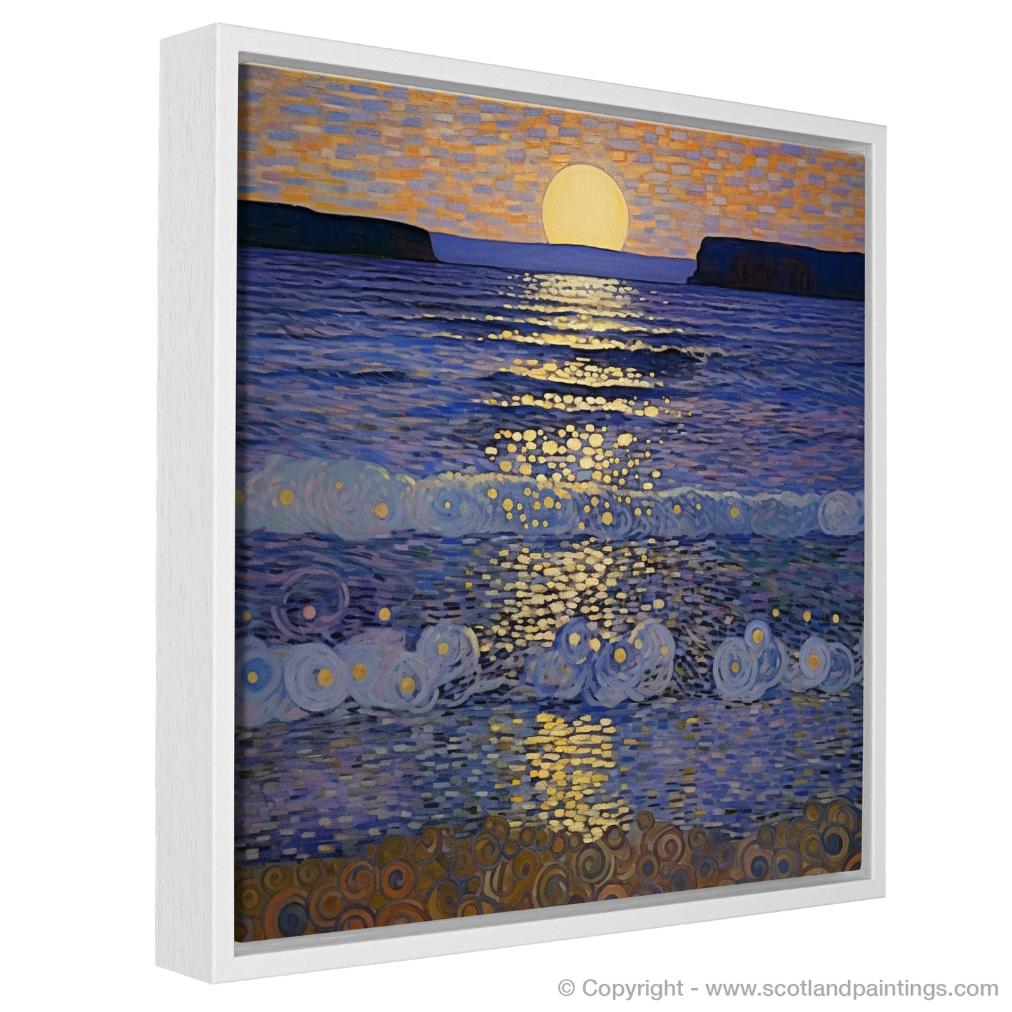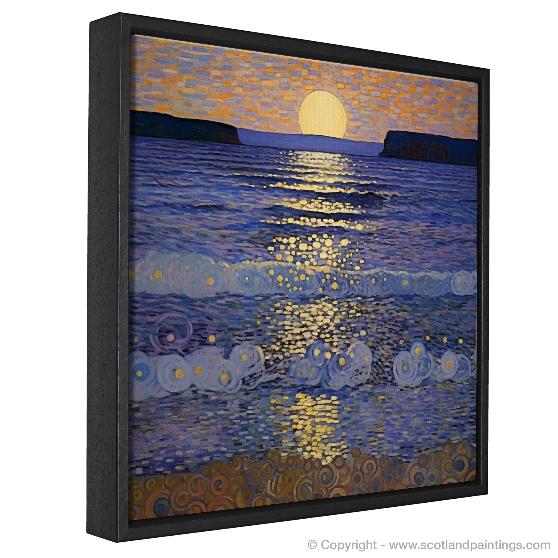 As a homage to the Art Nouveau movement, the print’s undulating lines and decorative motifs border the composition, endowing the scene with an ornamental frame that alludes to the elegance of that era. This print from our 'Scottish Beaches' collection is not only a testament to the splendour of nature but also a reverent nod to the artistic style that finds harmony between the natural and the decorative. Whether to evoke memories of coastal sojourns or simply to bring an element of graceful tranquillity into your space, this piece offers a timeless view that transcends the ordinary, promising to invigorate any wall with its mesmerising beauty.