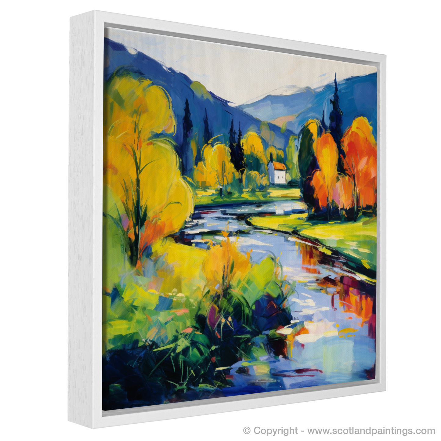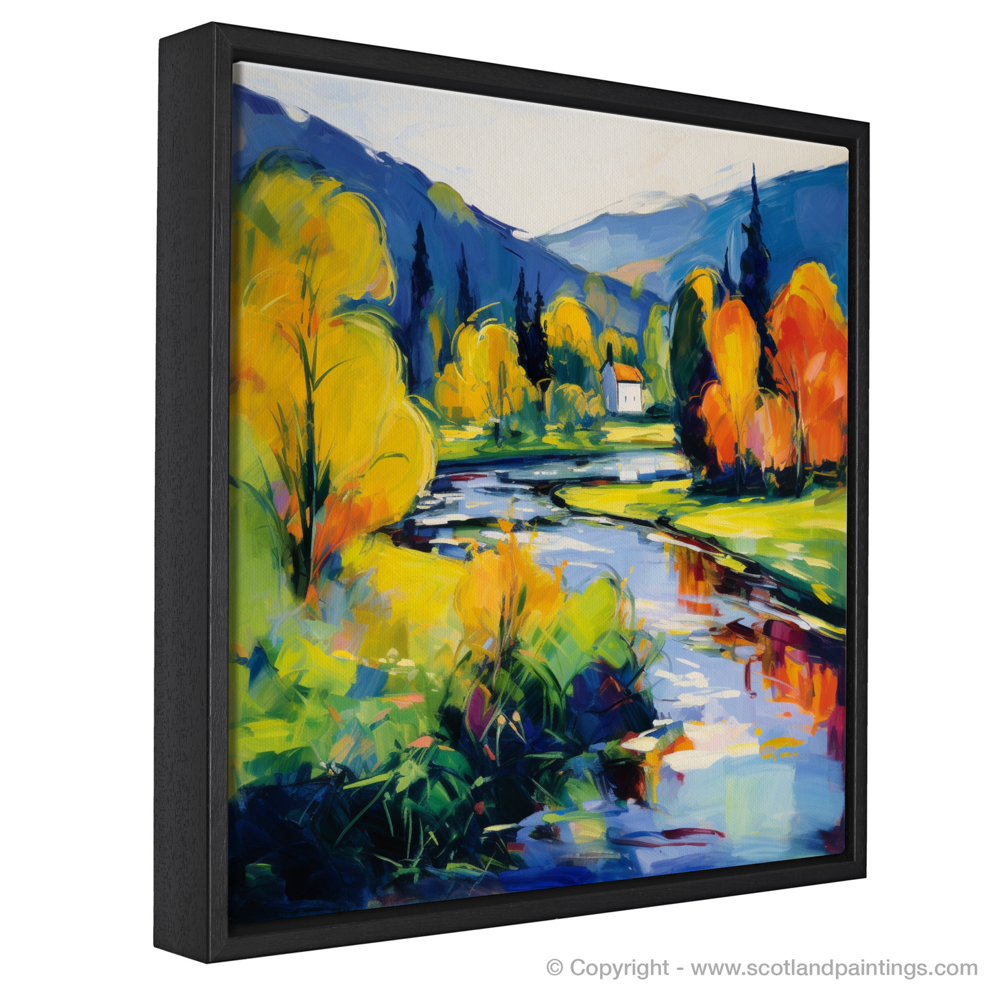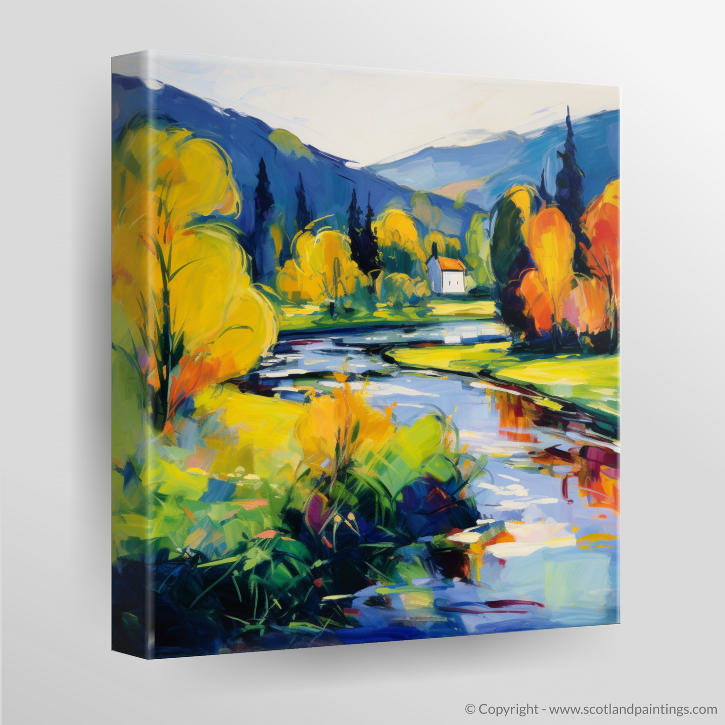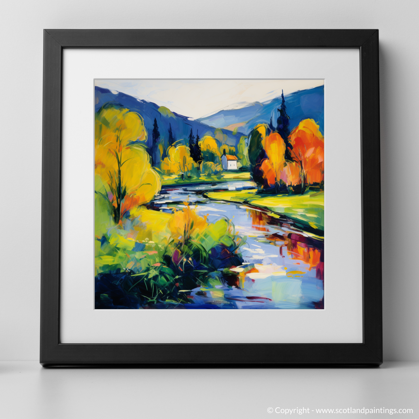 Immerse yourself in the vibrant hues and bold brushstrokes of this Fauvist-inspired print that captures the serene beauty of Dunkeld, Perthshire. A palette of vivid oranges, radiant yellows, and calming blues brings the Scottish countryside to life, evoking the essence of the village's natural charm. The print features an idyllic scene where the colours of the landscape are exaggerated, providing a feast for the senses, and lending a dreamlike quality to the familiar Scottish vista.