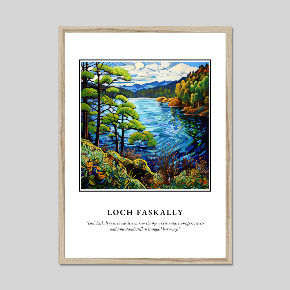 Capture the enchanting allure of Scotland with our exquisite framed poster print, a masterpiece that brings the serene beauty of Loch Faskally to any space. Measuring an impressive 50cm x 70cm, this bold and eye-catching art piece is perfect for those who appreciate the simplicity and charm of Naive Art. Available in a choice of black, white, or natural wood-effect frames, it adds a stunning focal point to your décor without breaking the bank.