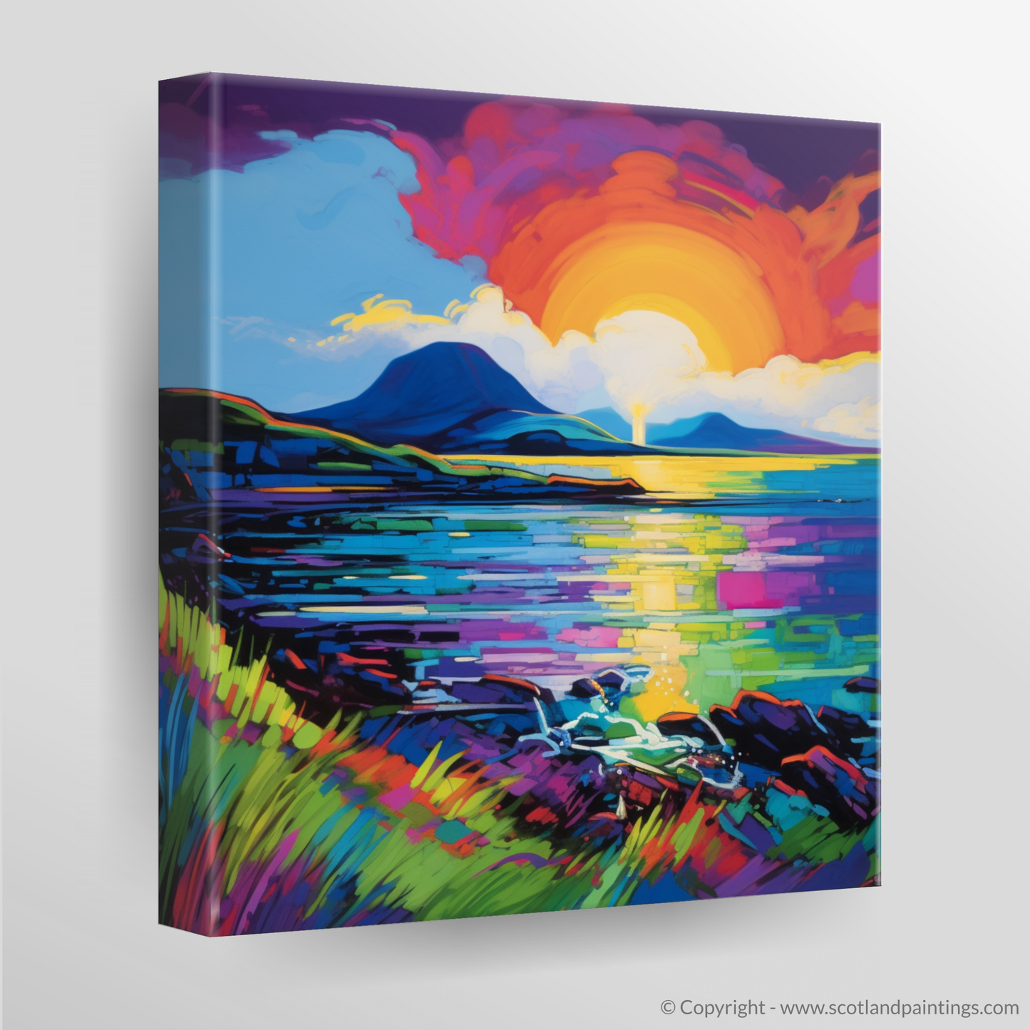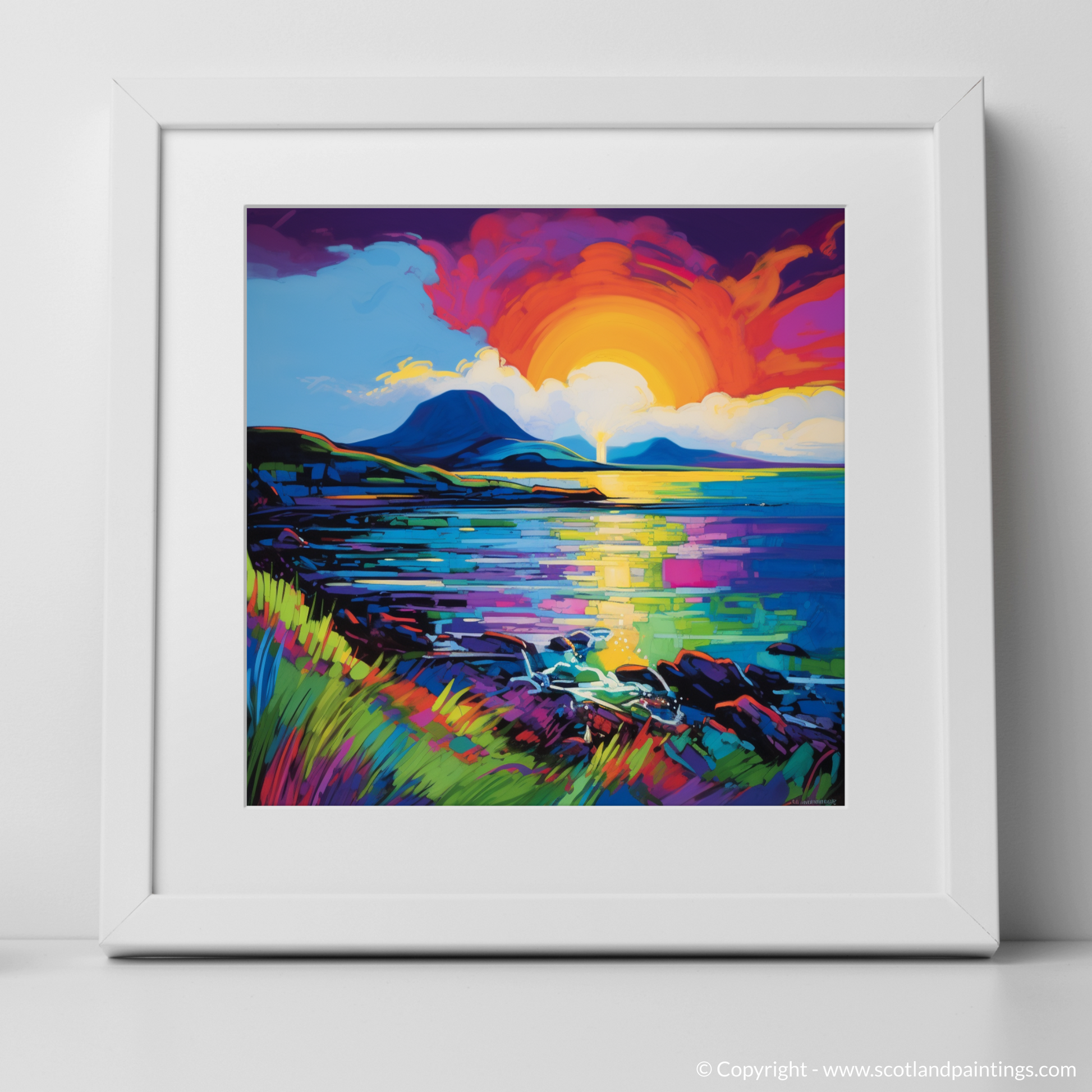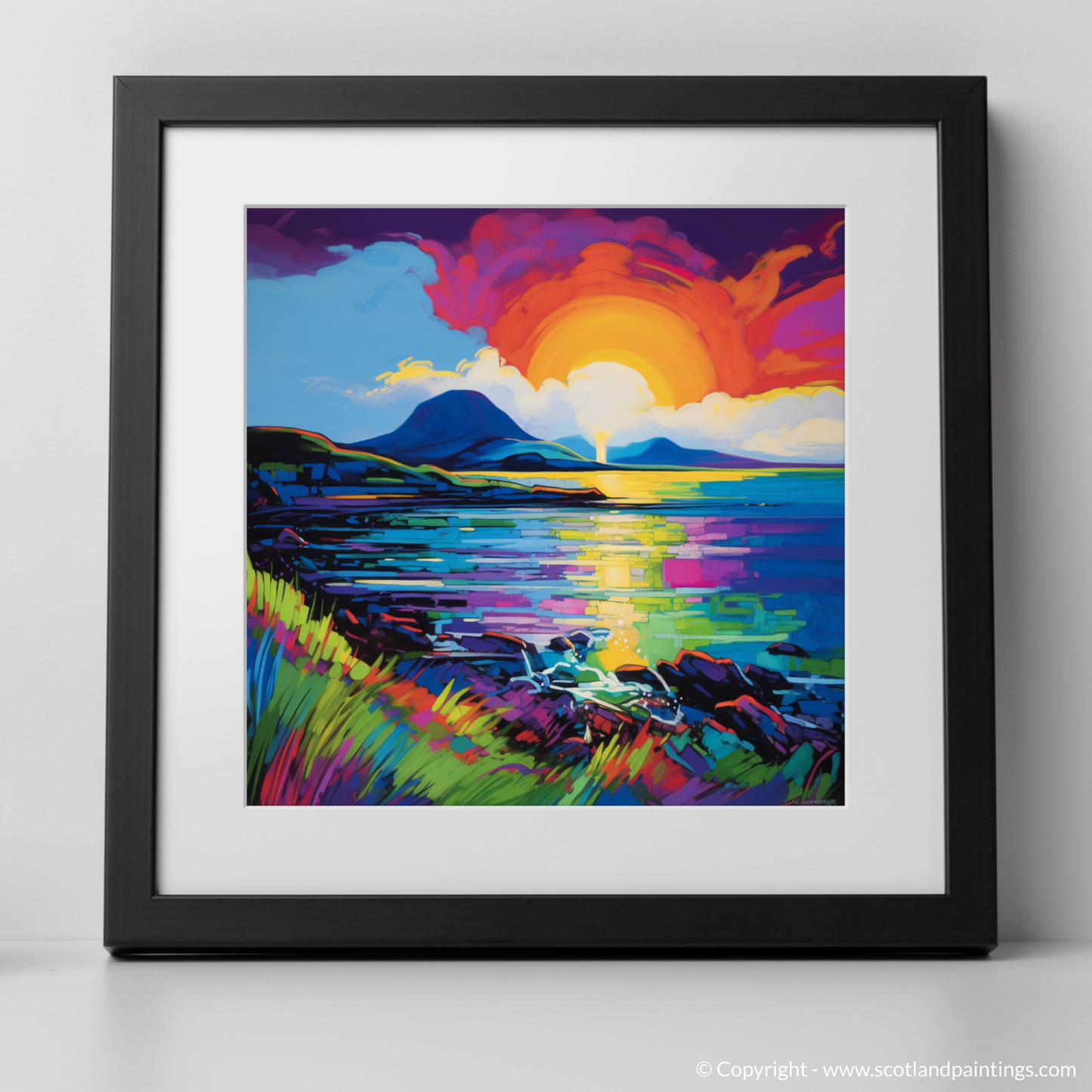 Every element in this arresting print contributes to a sense of exuberance and energy, making it an ideal statement piece for lovers of both modern art and the wild Scottish landscape. Its eye-catching appeal and stunning reinterpretation of a classic island view ensure that this print will become a conversation piece in any setting, imbuing your space with the unique essence of Scotland's enchanting islands.